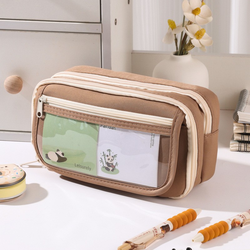 새로운 창조적 인 9 층 팬더 연필 케이스 트렌디 한 투명 연필 케이스 스타일 높은 모양의 투명 중학생 문구 가방