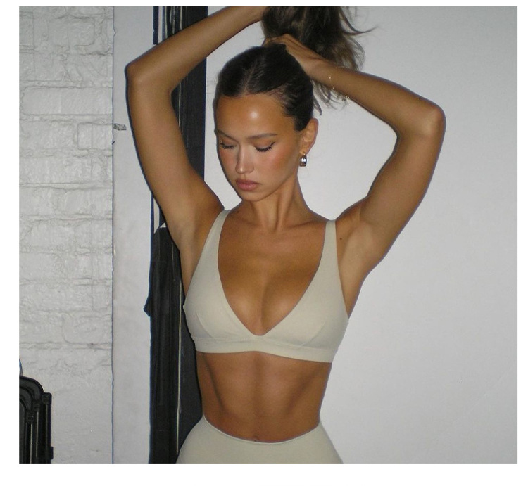 여성을 위한 크로스보더 유럽 및 미국 누드 요가 브라, 여성용 아름다운 등 충격 방지 푸시업 아우터웨어 야외 러닝 피트니스 스포츠 브라