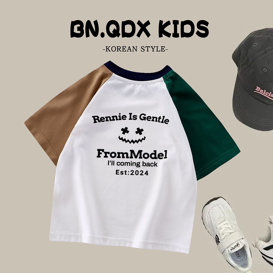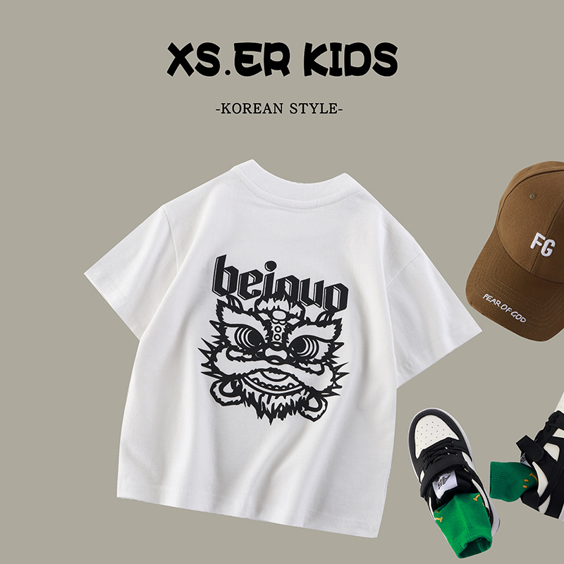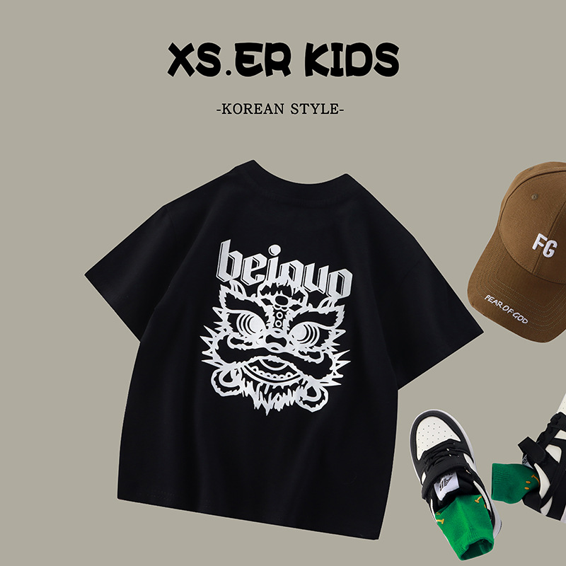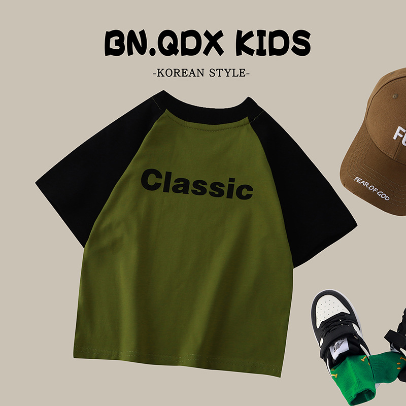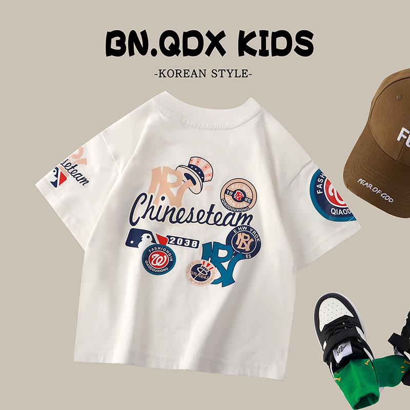 어린이 반소매 티셔츠 여름 새 소년 소녀 만화 한국 스타일 클래스 순면 둥근 목 얇은 반소매 아동복스토어 가기