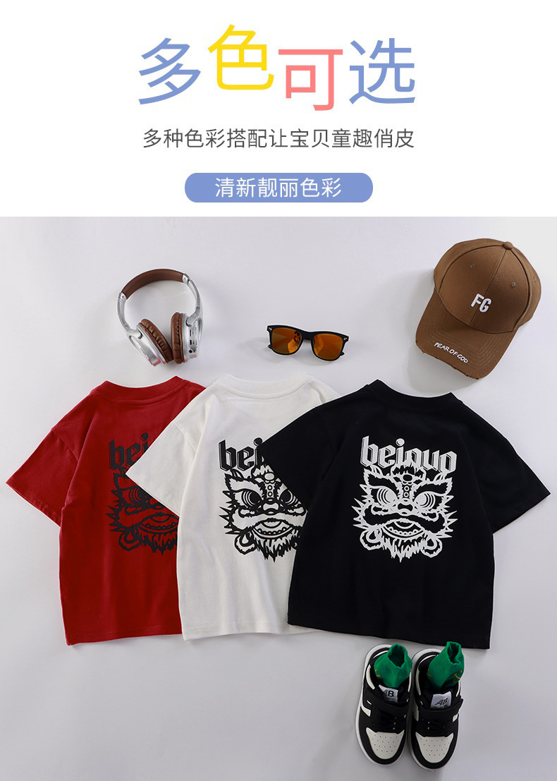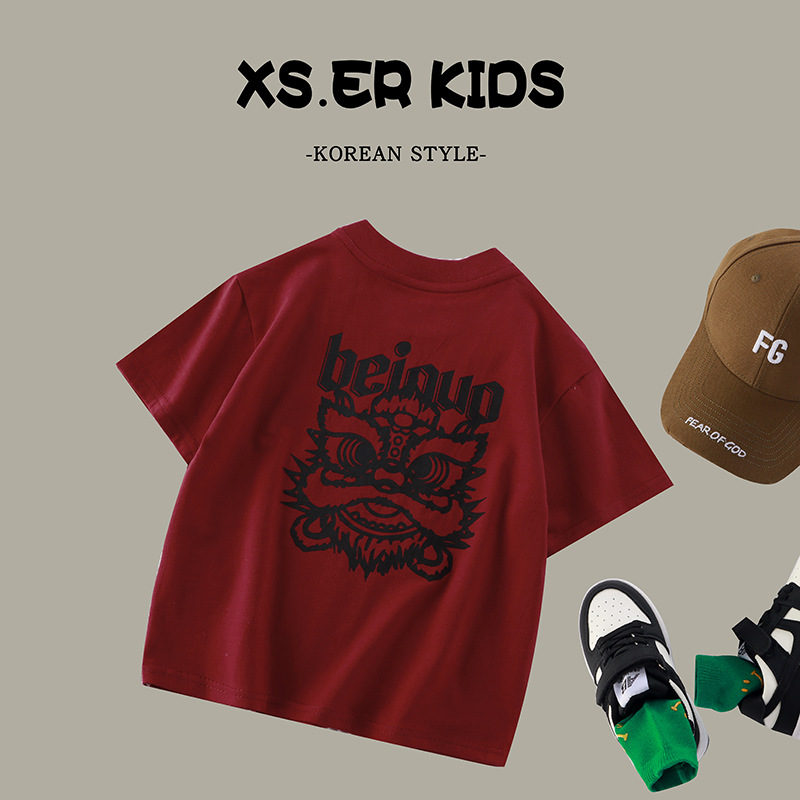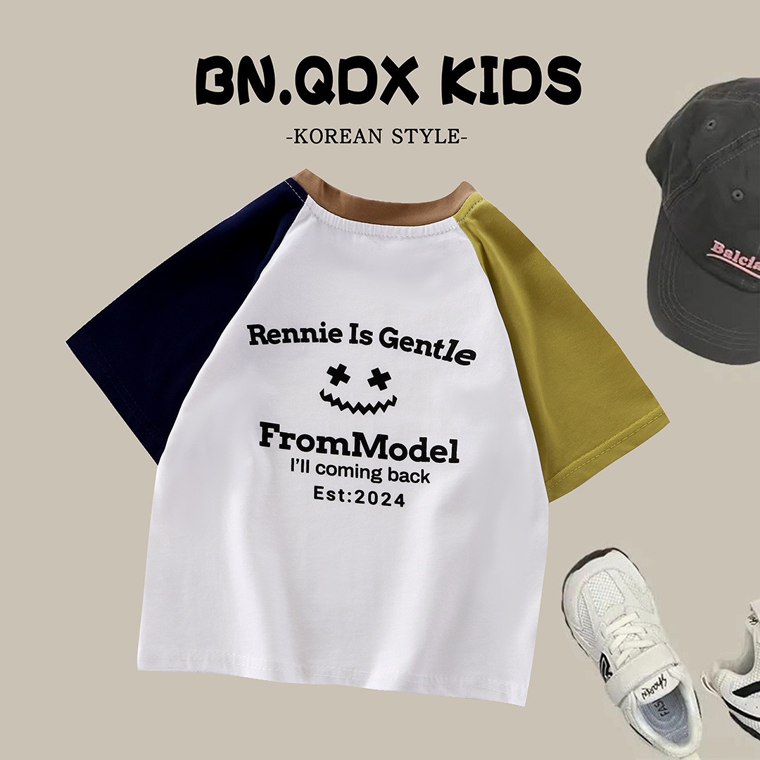 어린이 반소매 티셔츠 여름 새 소년 소녀 만화 한국 스타일 클래스 순면 둥근 목 얇은 반소매 아동복스토어 가기