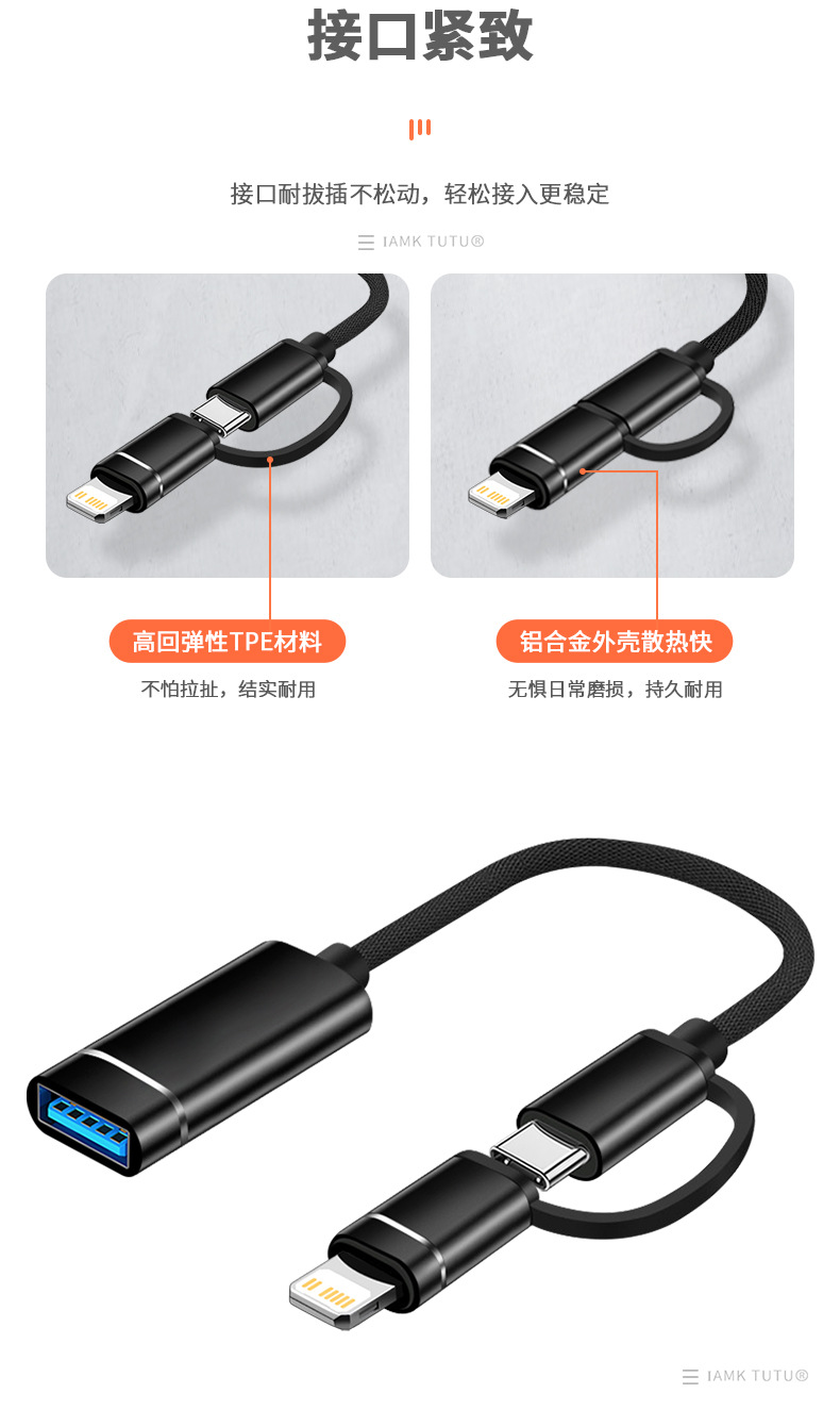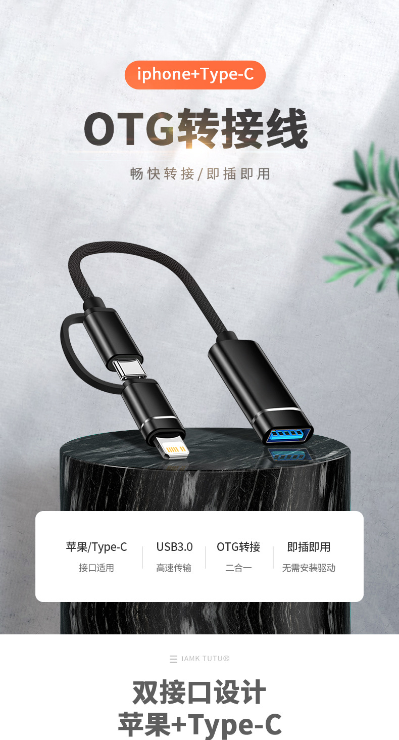 크로스보더 OTG 어댑터 케이블 USB 플래시 드라이브 변환 다기능 변환 케이블 3-in-1 USB 멀티 인터페이스 OTG 어댑터 케이블스토어 가기