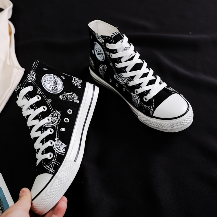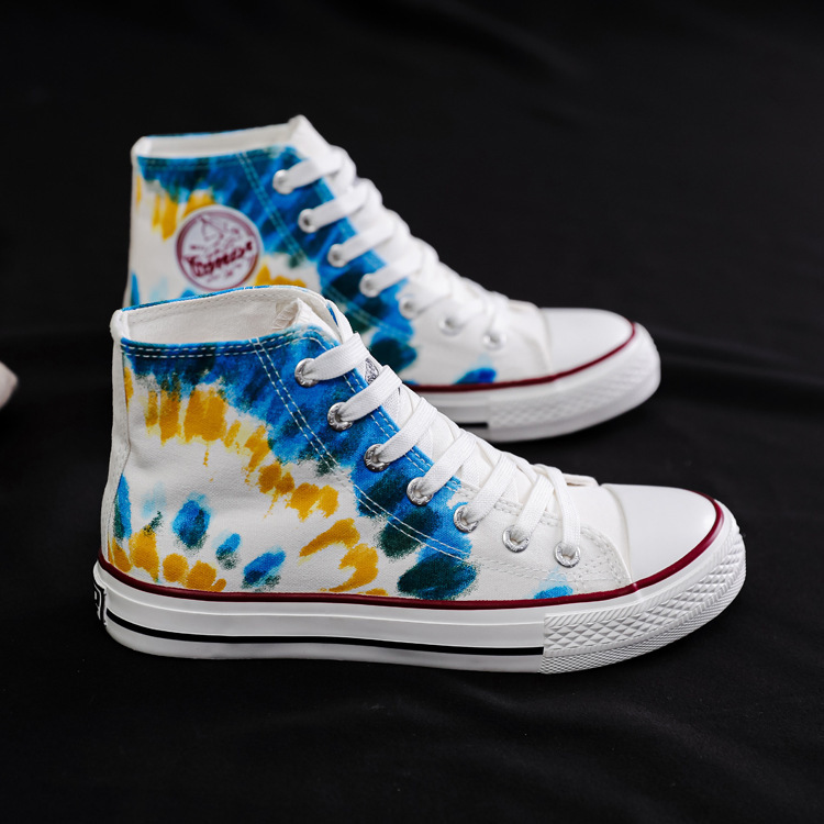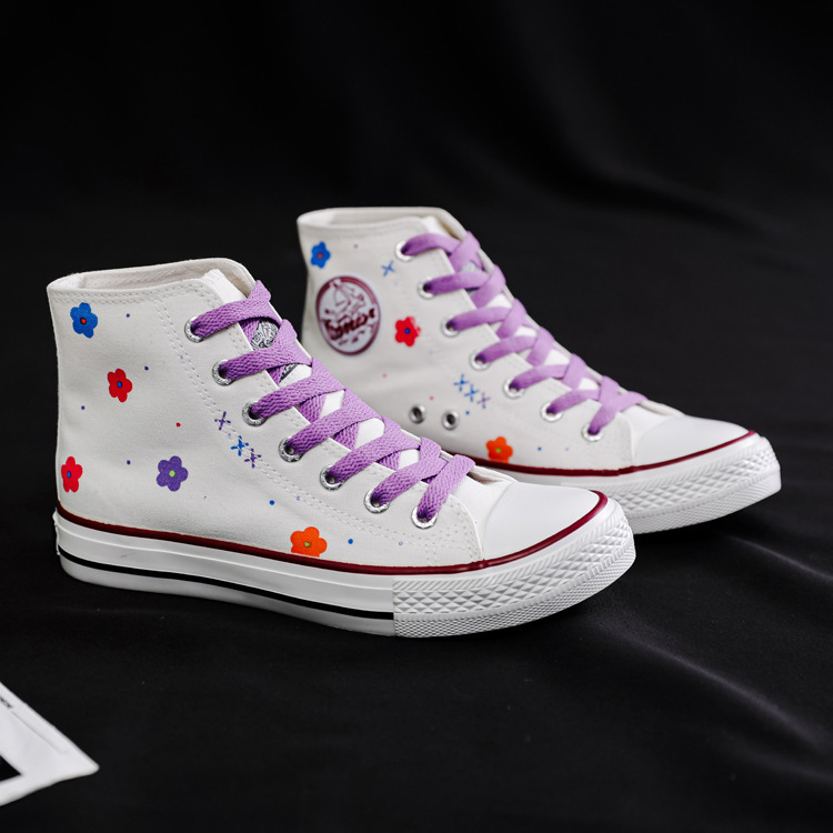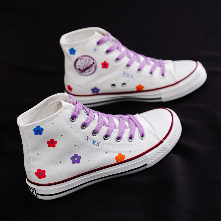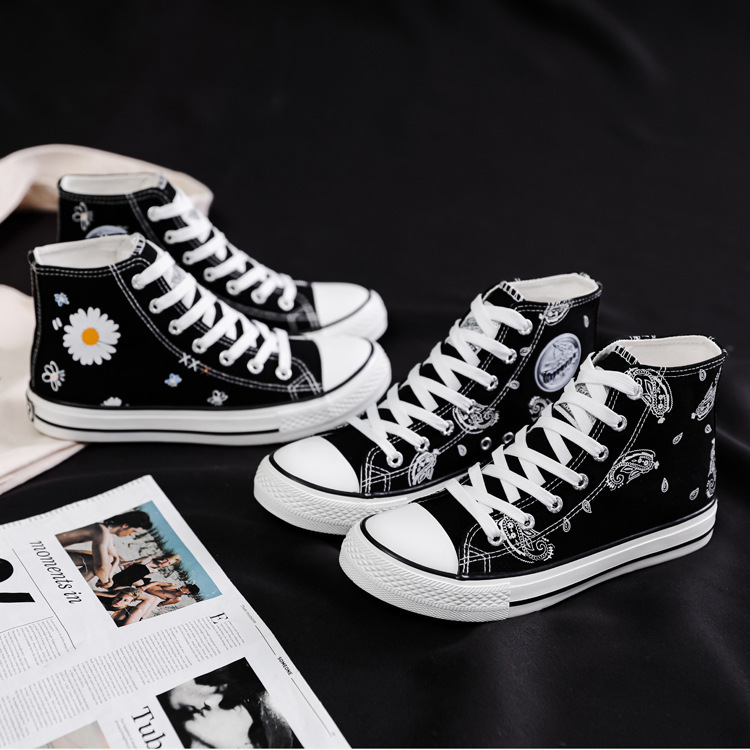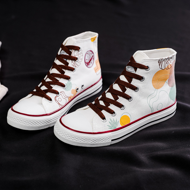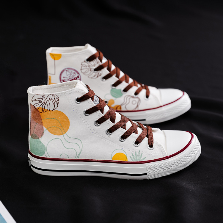 여성용 하이 탑 캔버스 신발 남성과 여성의 새로운 유행 신발 캐주얼 다용도 손으로 그린 전국 세련된 스니커즈 캐주얼 신발스토어 가기