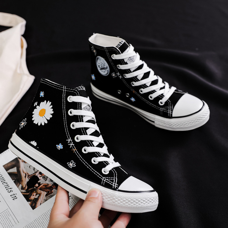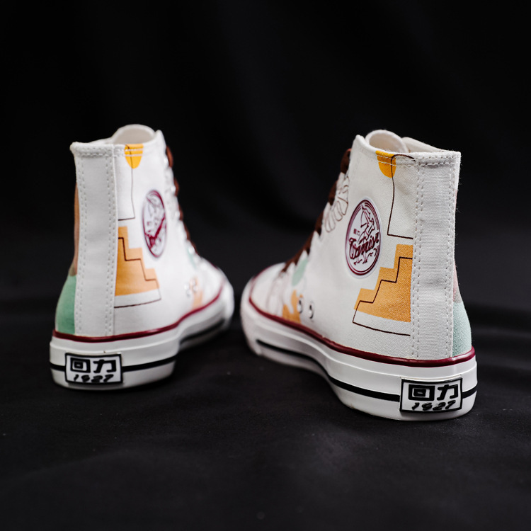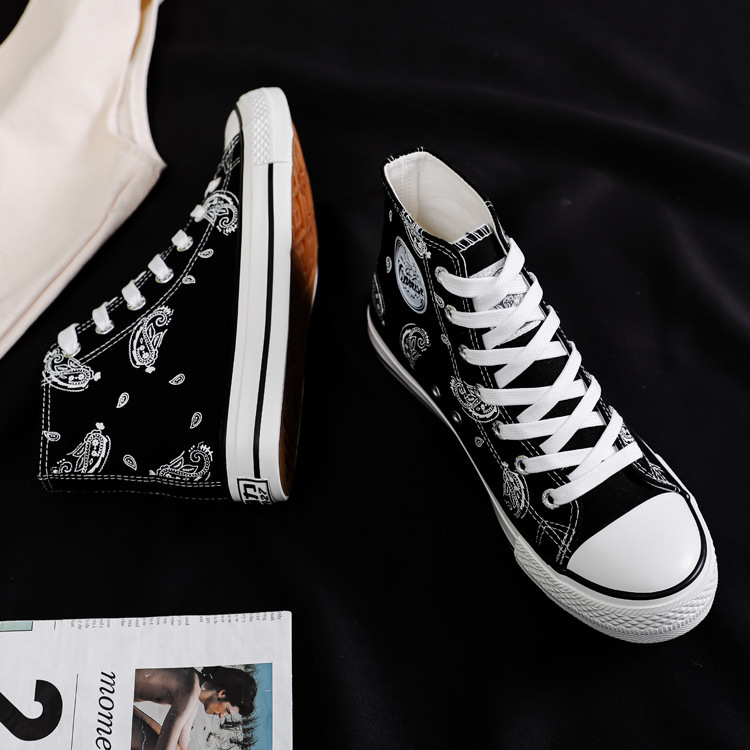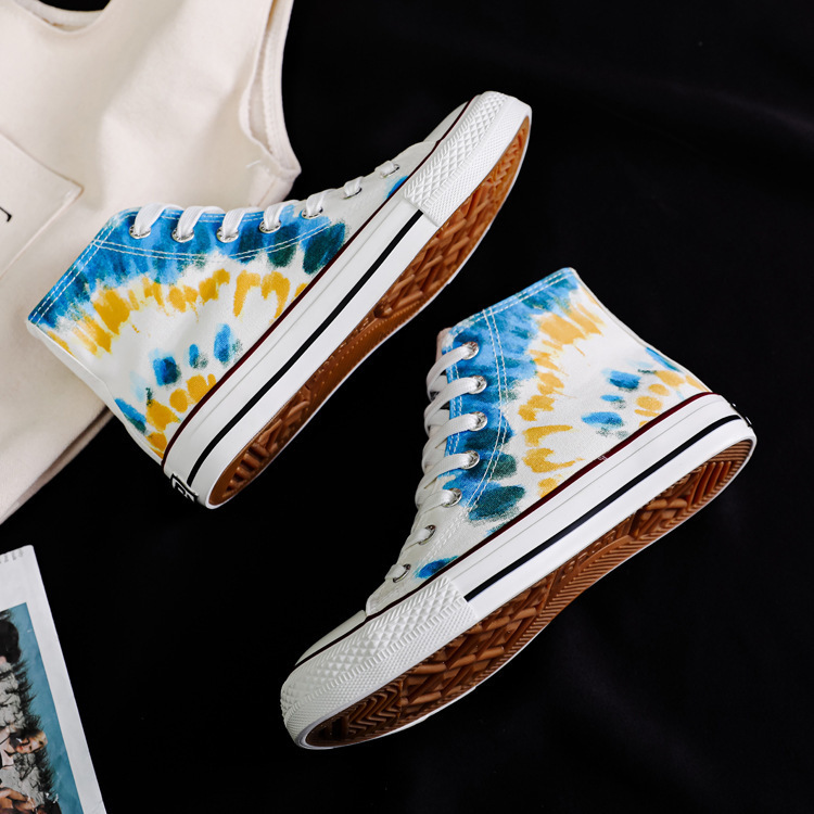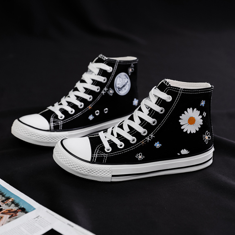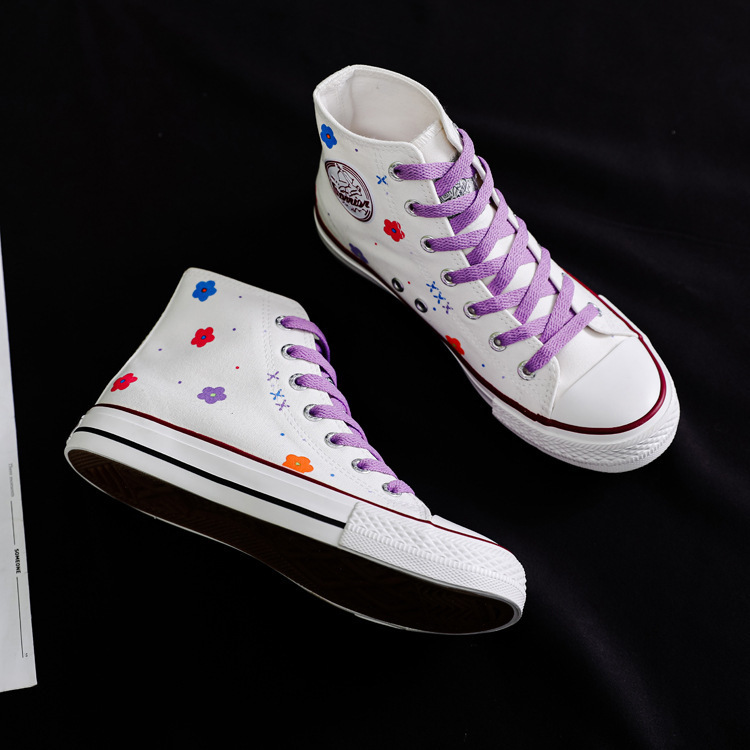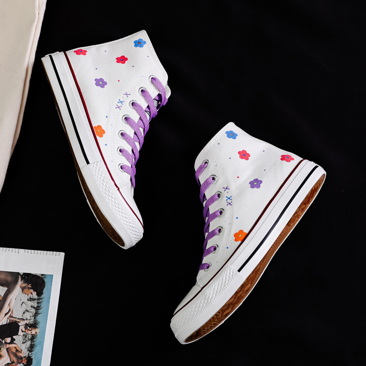 여성용 하이 탑 캔버스 신발 남성과 여성의 새로운 유행 신발 캐주얼 다용도 손으로 그린 전국 세련된 스니커즈 캐주얼 신발스토어 가기