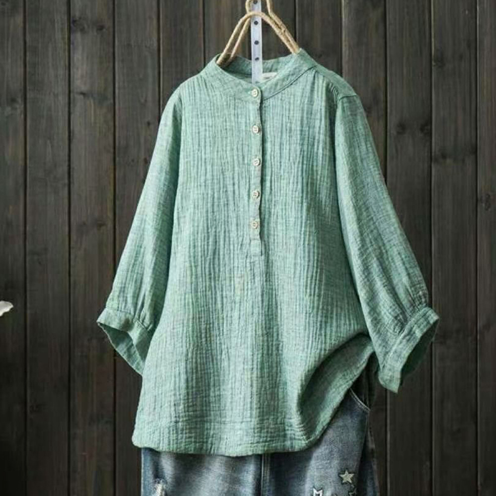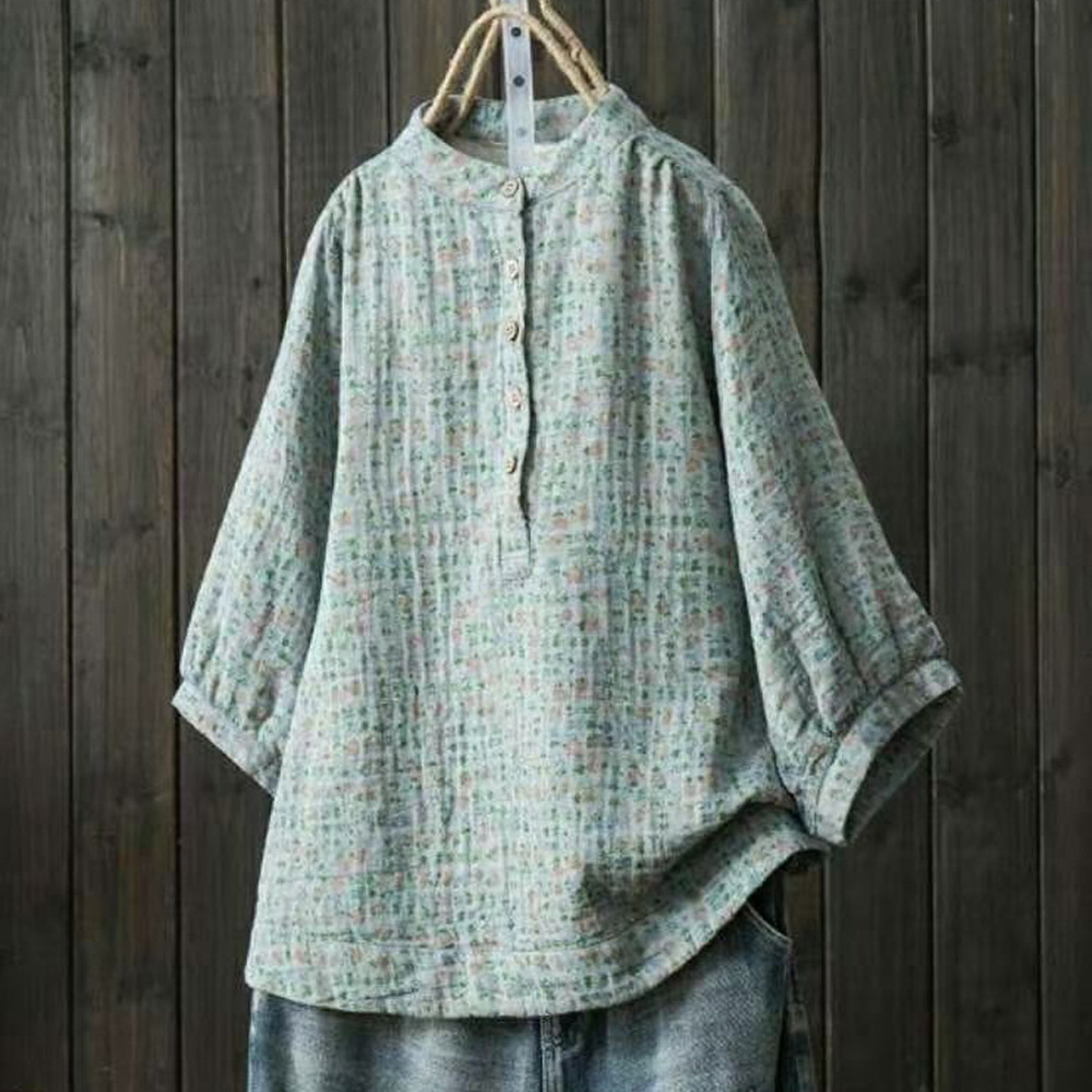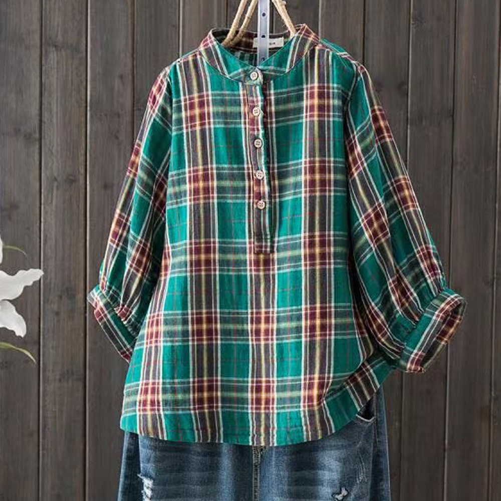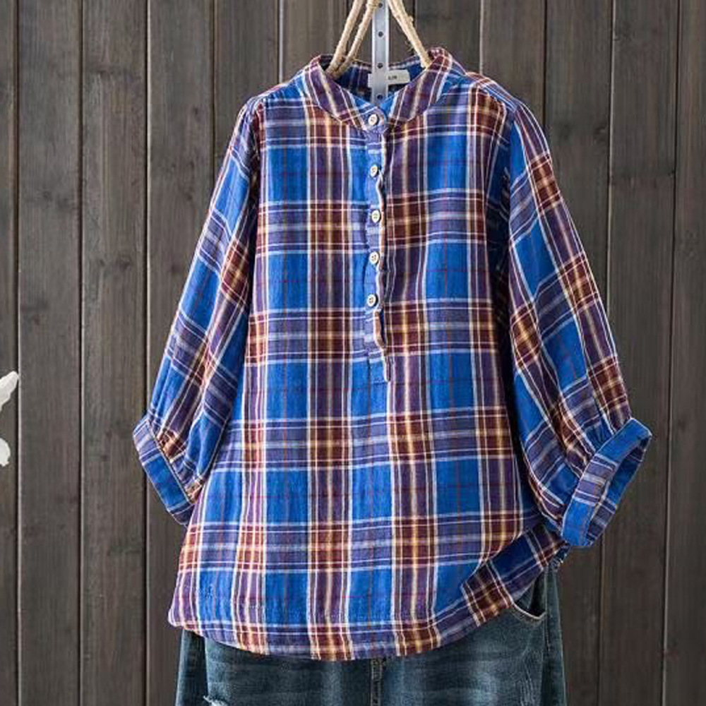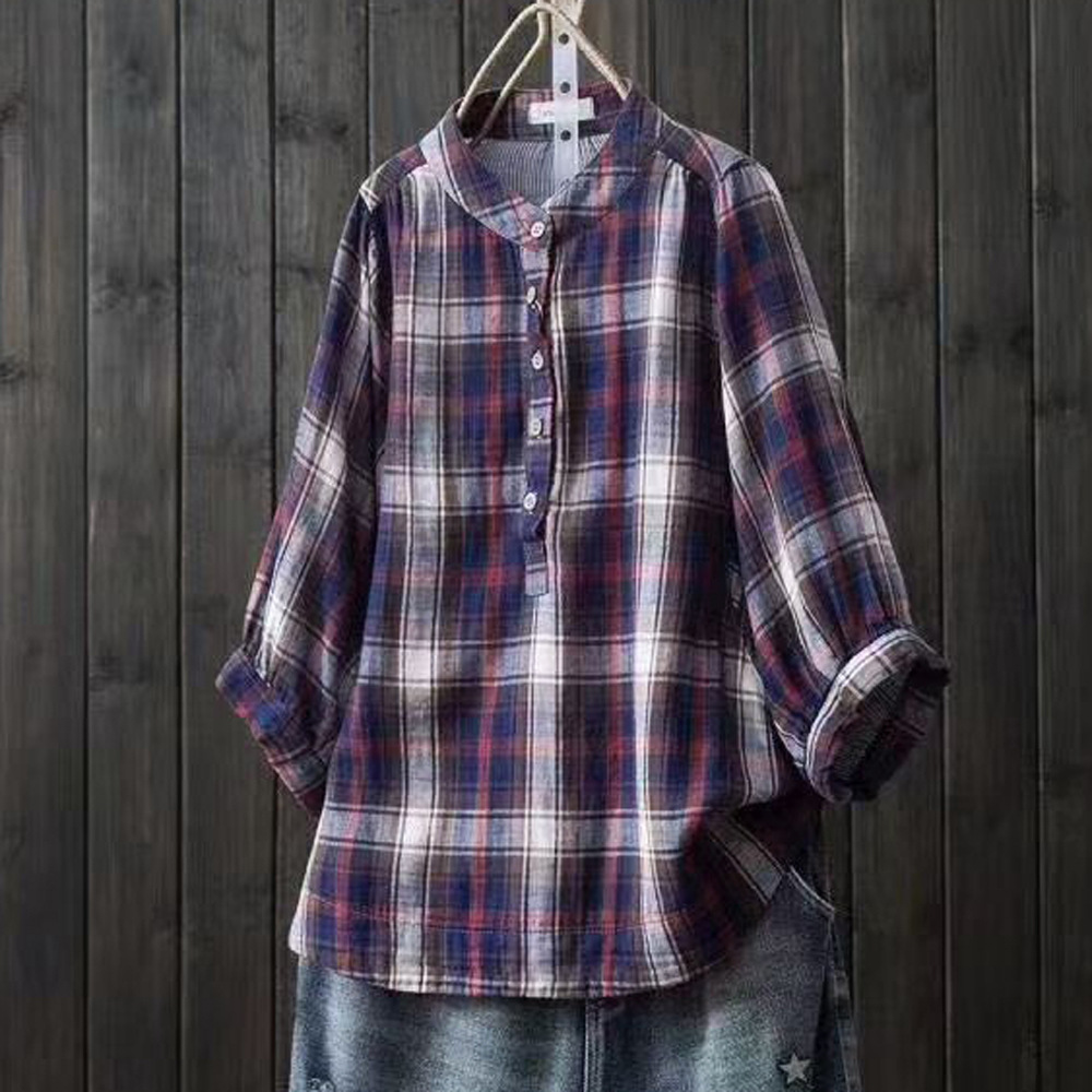 더블 레이어 면사 셔츠 격자 무늬 스탠드 칼라 베이비 코튼 원사 느슨한 플러스 사이즈 일본과 한국 셔츠 공장 도매스토어 가기