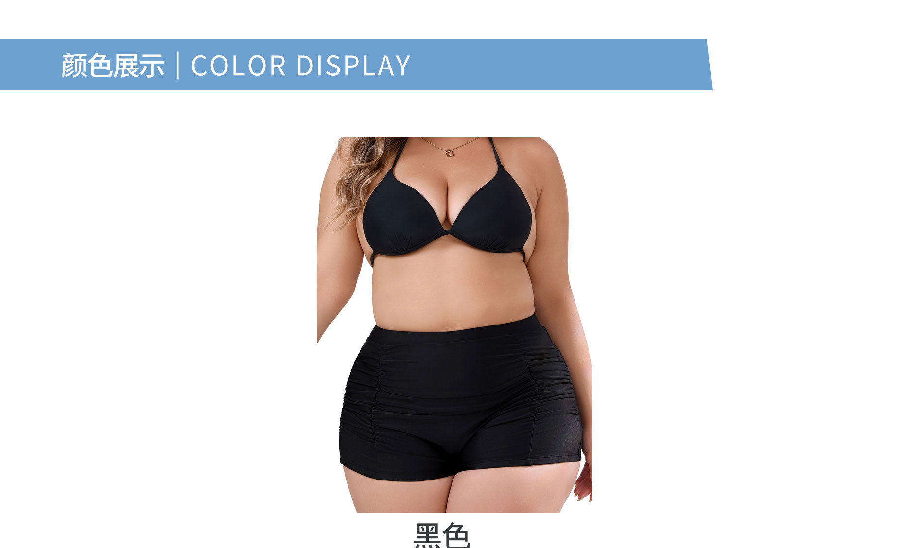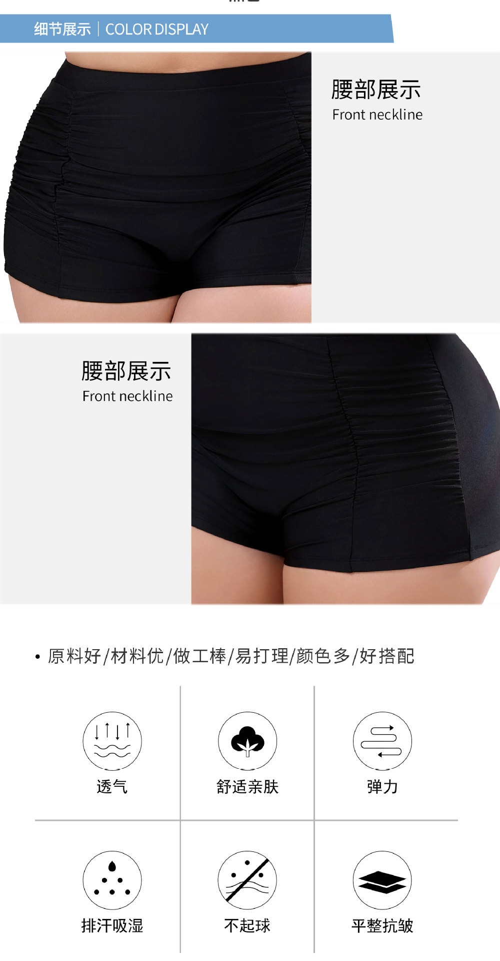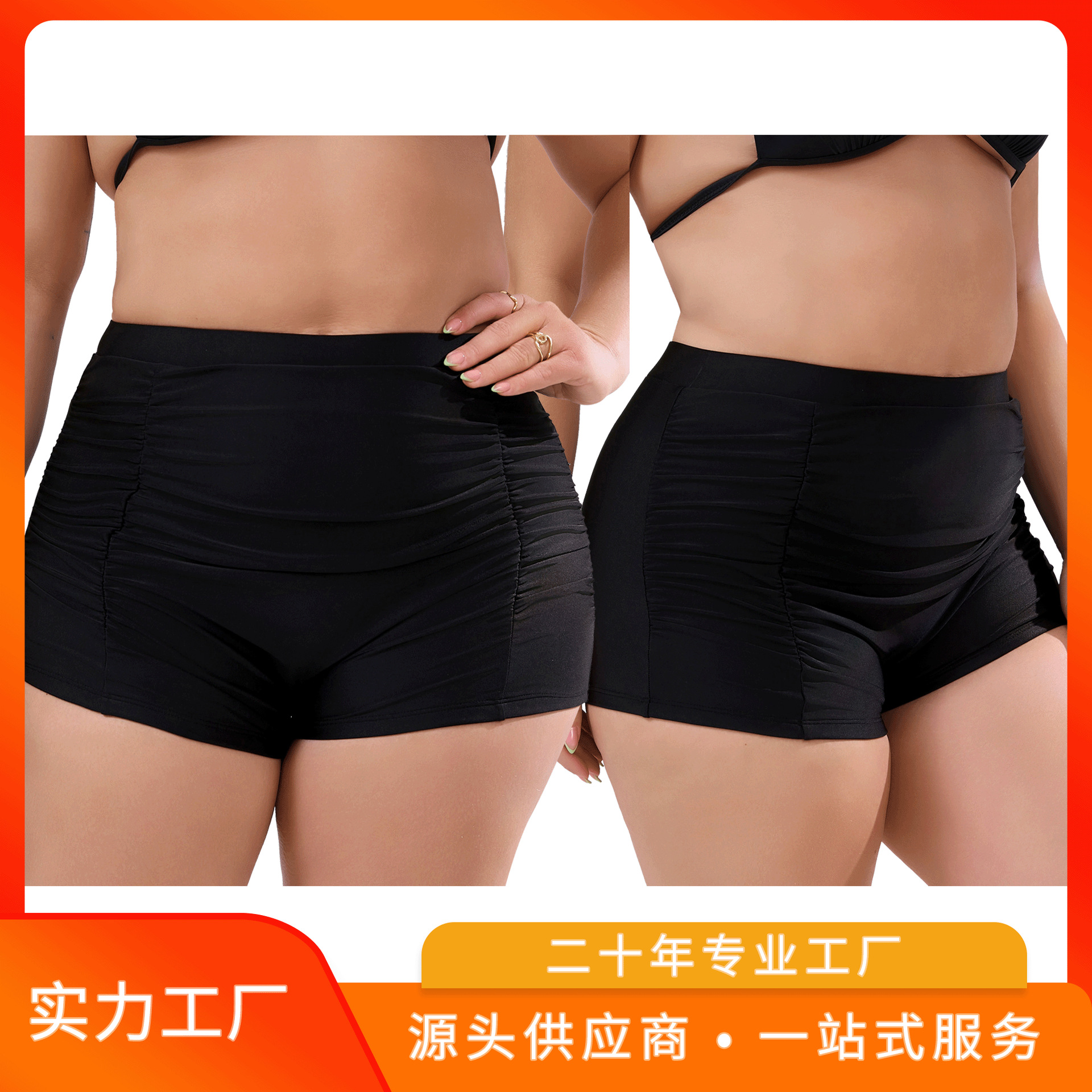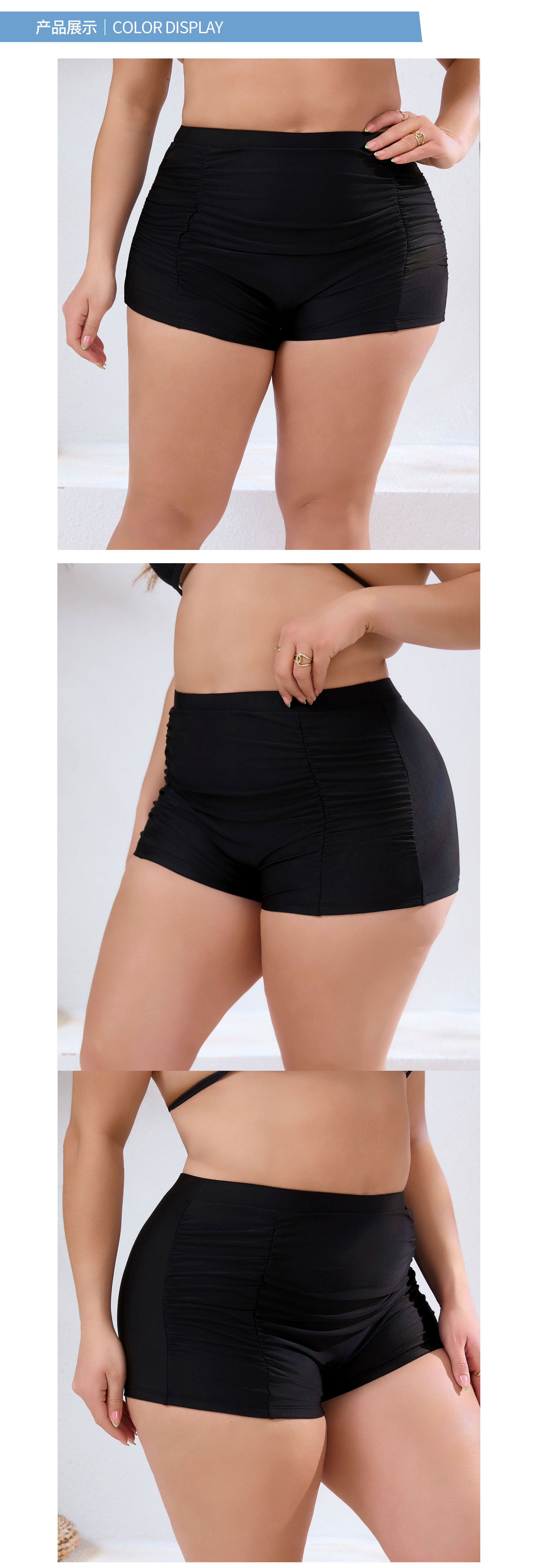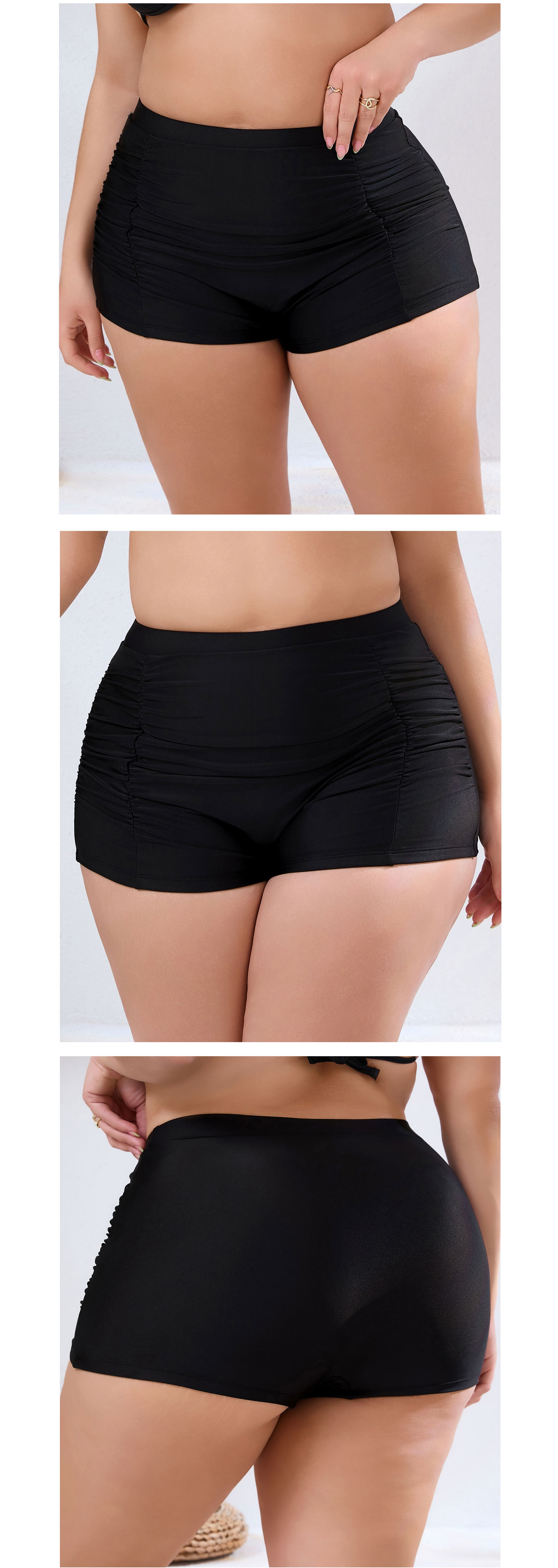 2024 새로운 유럽과 미국의 국경 간 플러스 사이즈 여성 수영 트렁크 주름진 단색 복서 수영 트렁크 높은 허리 보수적 비키니스토어 가기