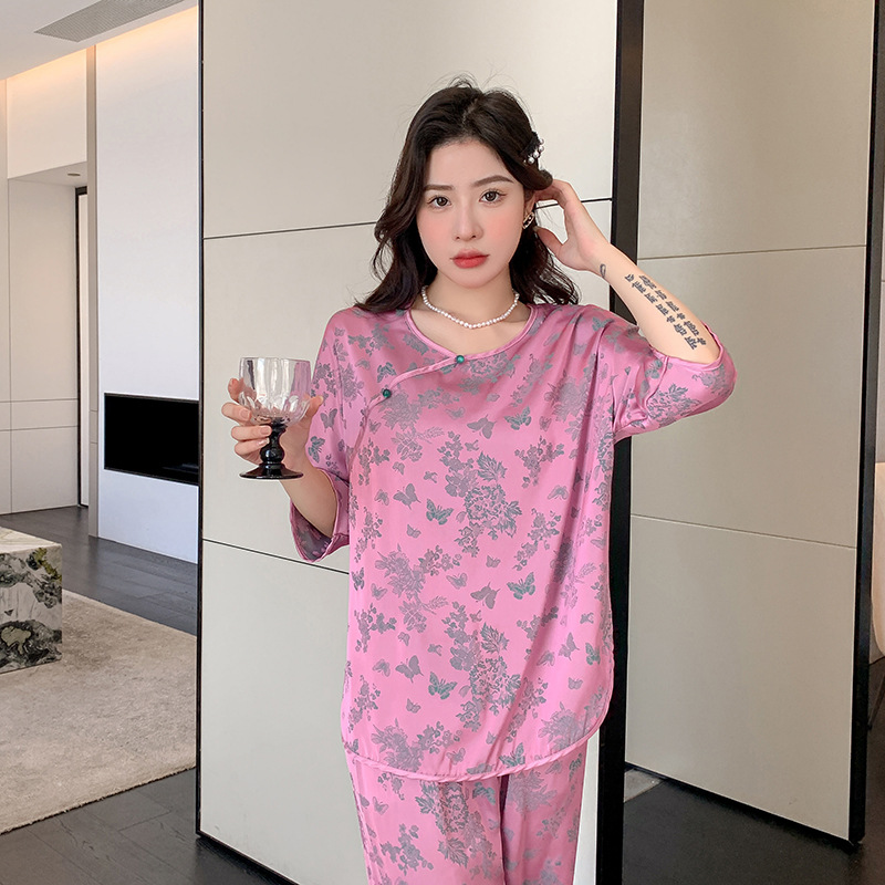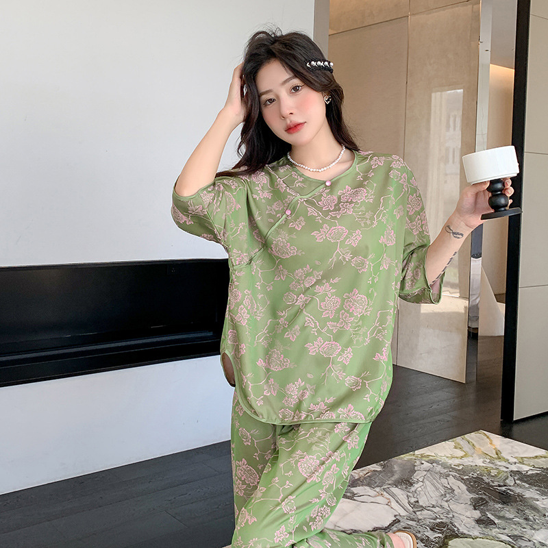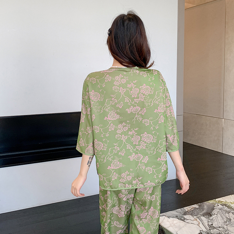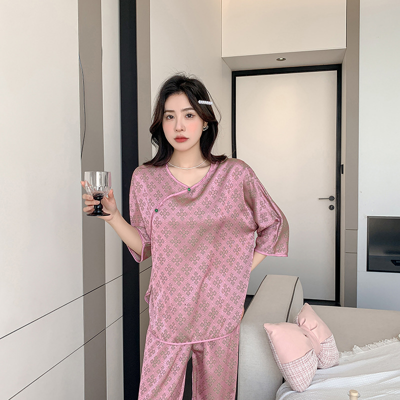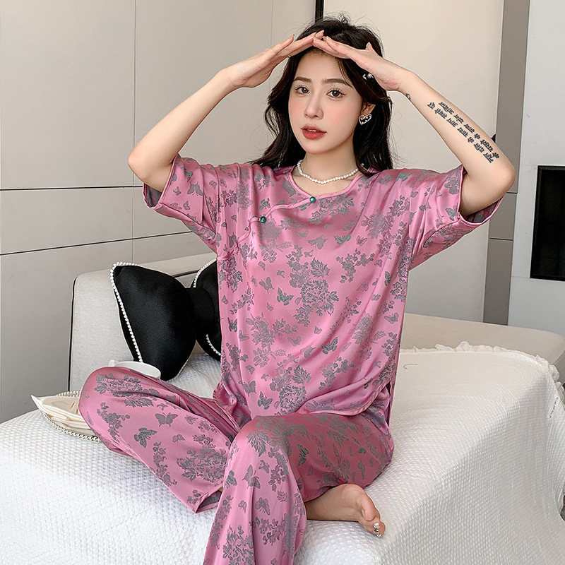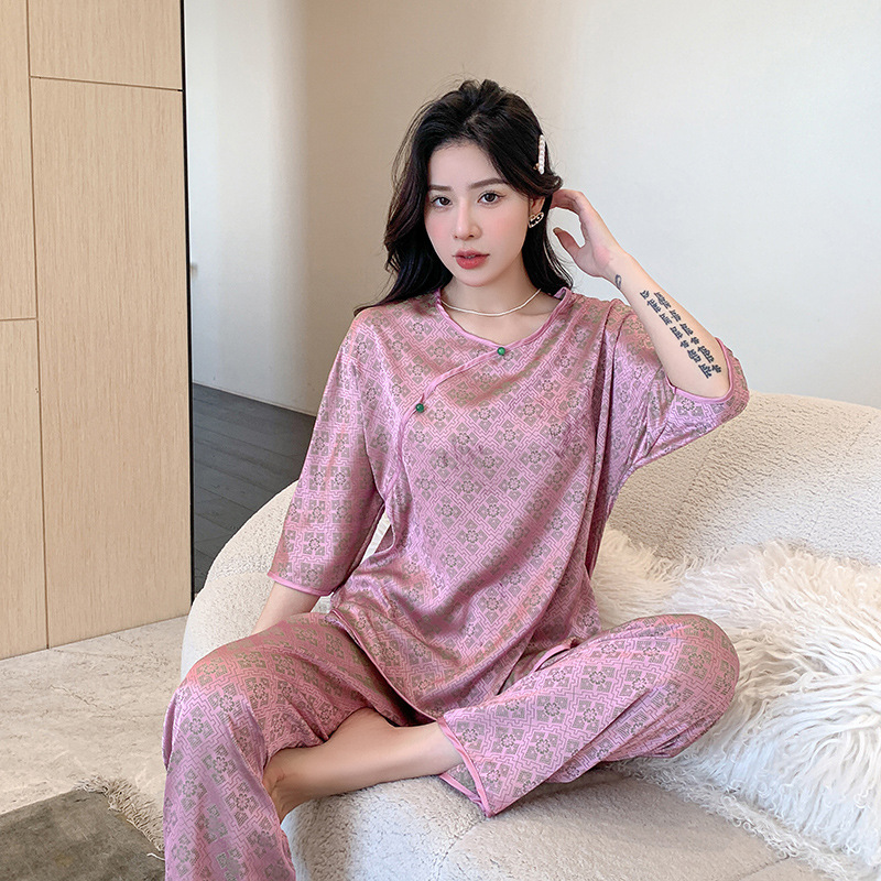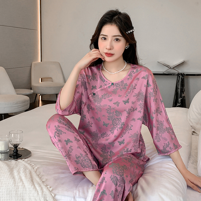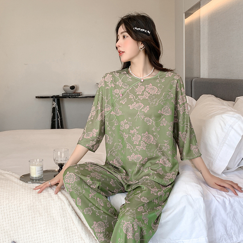 잠옷 여성 아이스 실크 봄과 가을 긴 소매 고급 중국 스타일 캐주얼 패션 실크 여름 가정복 세트