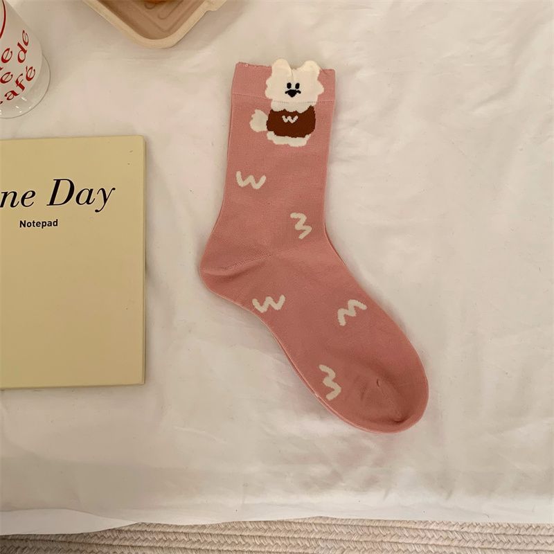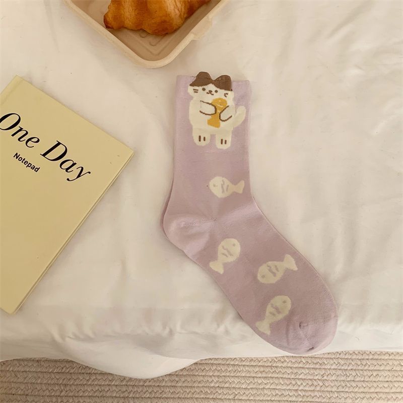 만화 귀여운 양말 여성의 중간 송아지 길이 양말 봄과 가을면 양말 인기 온라인 한국식 일본식 스타킹 여름스토어 가기