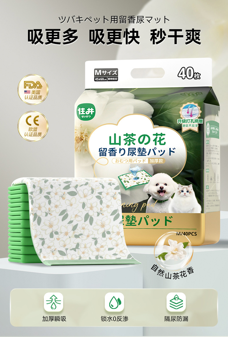 Manjing Camellia 향기로운 소변 패드 일회용 대형 흡수성 탈취제 소변 종이 고양이 애완 동물 용품 개 기저귀스토어 가기