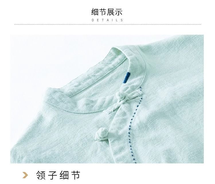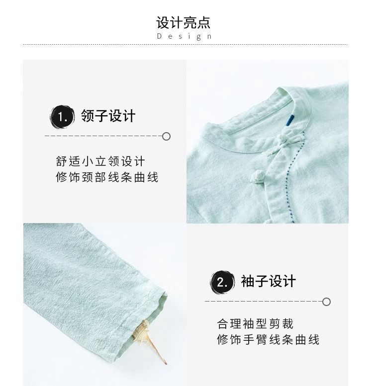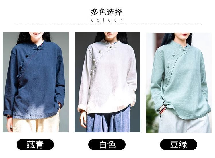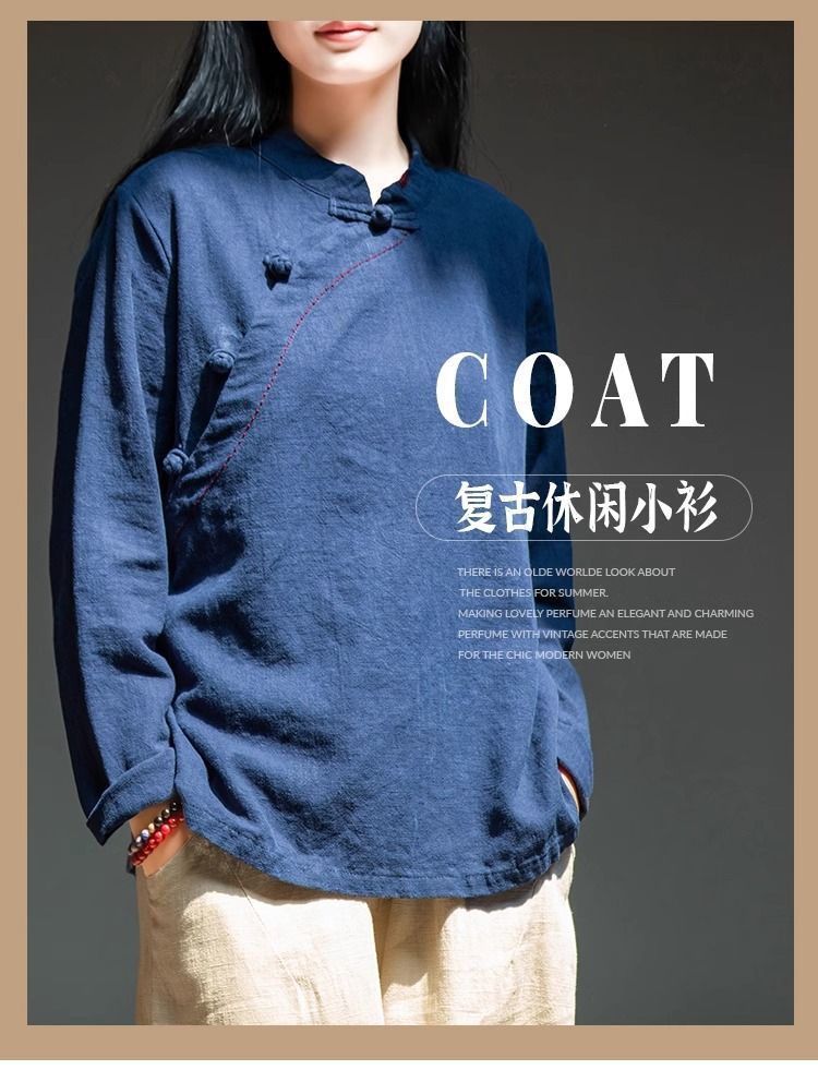 여성 대외 무역 예술적 복고풍 봄/여름 가을면과 린넨 긴 소매 느슨한 슬리밍 탑 스탠드 칼라 대각선 버튼 셔츠스토어 가기