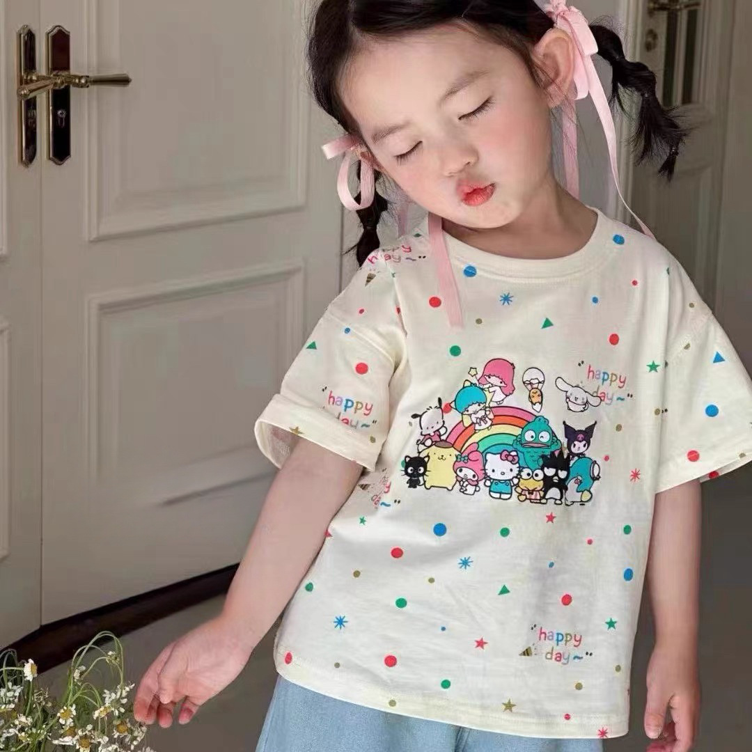 2024 한국식 만화 코튼 반팔 여름 어린이 의류 만화 서양식 둥근 목 어린이 반팔 셔츠 귀여운 티셔츠 패션스토어 가기