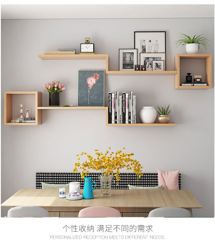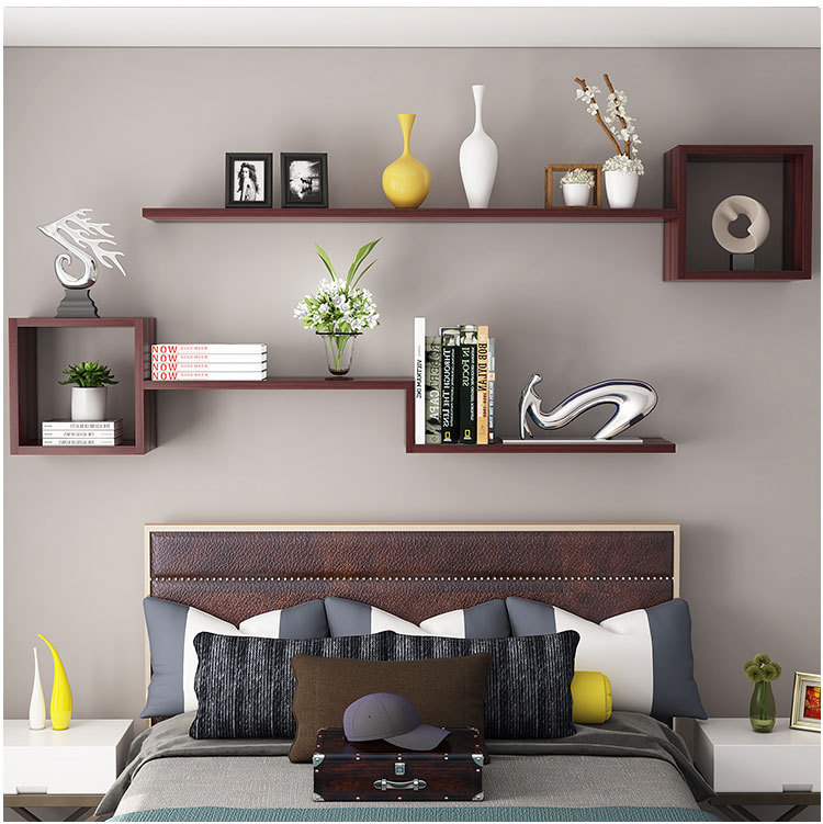 벽 선반 나무 창조적 인 장식 선반 격자 무늬 거실 식당 침실 배경 벽걸이 책장 벽스토어 가기