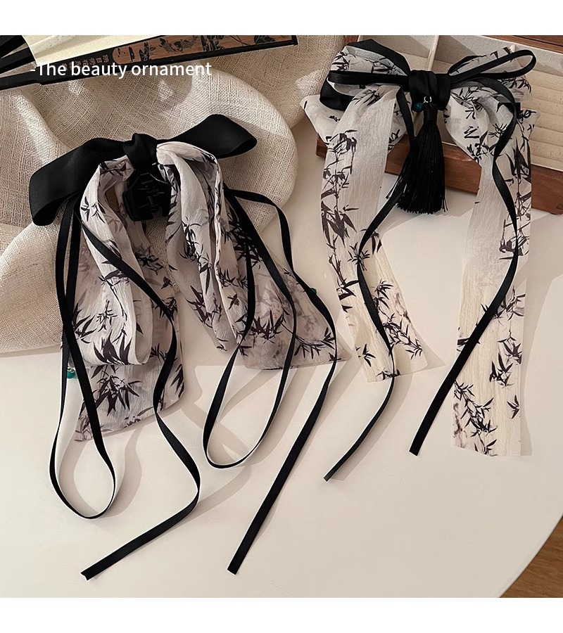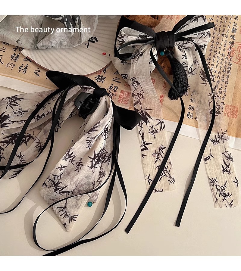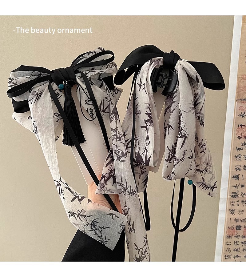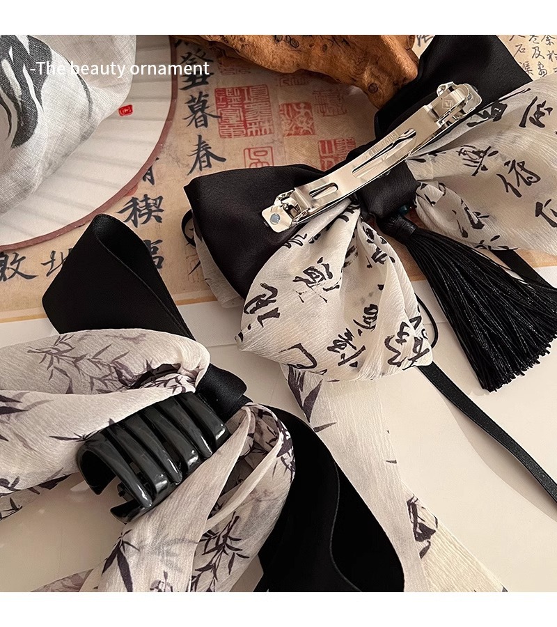 여성을위한 새로운 Guofeng 잉크 꽃 그랩 클립 활 헤드 헤드웨어 라이트 고급 고급 스프링 클립 헤어 액세서리