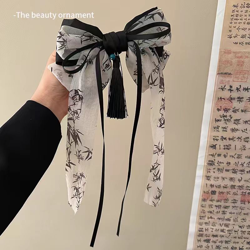 여성을위한 새로운 Guofeng 잉크 꽃 그랩 클립 활 헤드 헤드웨어 라이트 고급 고급 스프링 클립 헤어 액세서리스토어 가기
