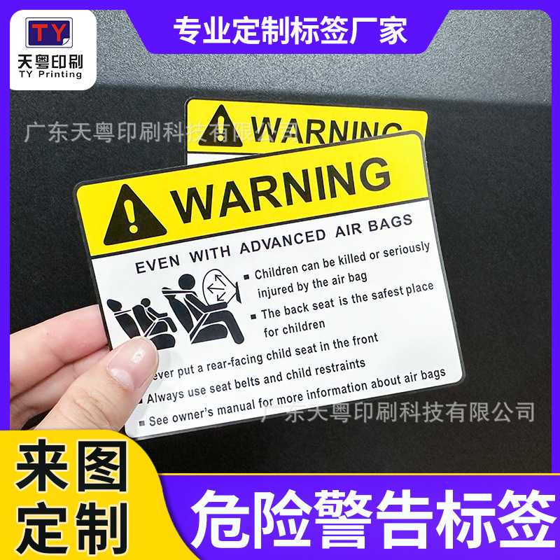 警告标签 WARNING提醒标识 pp合成纸防水汽车安全气囊警告标贴纸