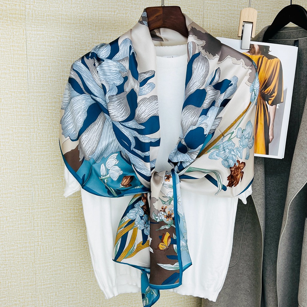 항주 실크 봄 새로운 어머니의 날 실크 스카프 여성 기질 꽃 뽕나무 실크 스카프 다기능 목도리