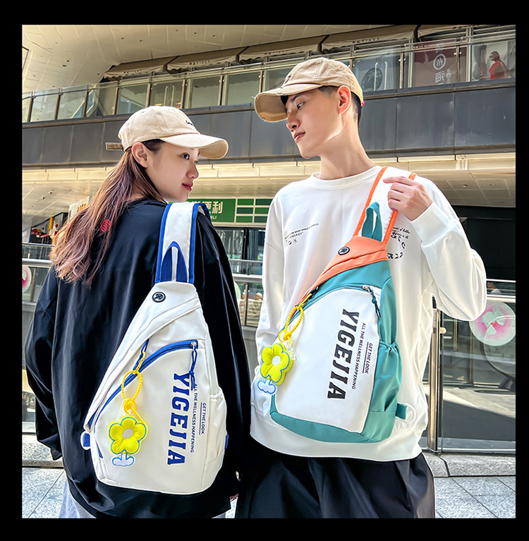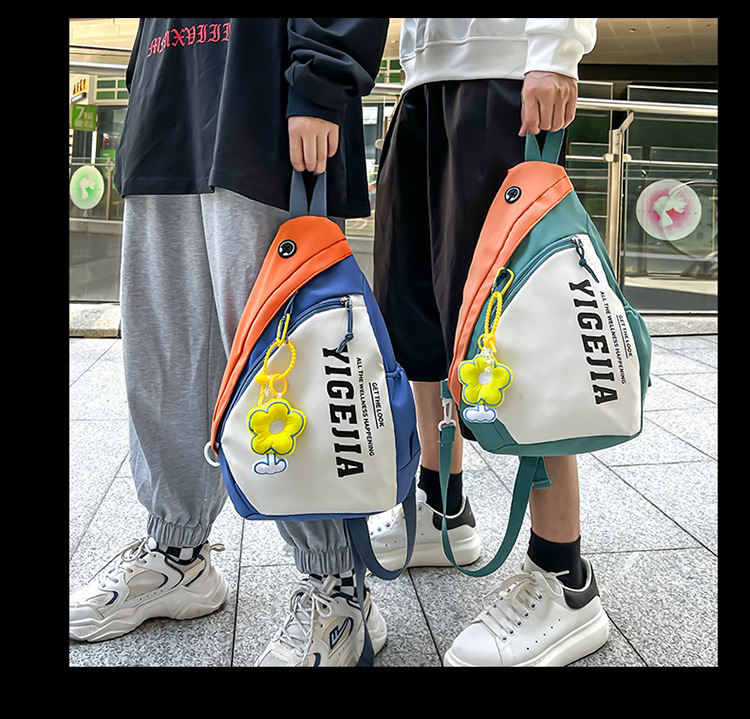 가슴 가방 남성 스포츠 스타일 크로스 바디 가방 캐주얼 일본 경량 대비 컬러 대용량 학생 배낭 여성 숄더백 패션 브랜드스토어 가기