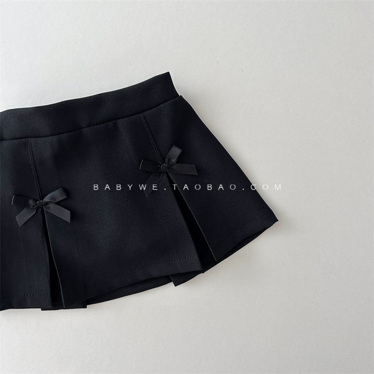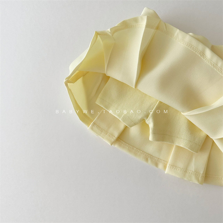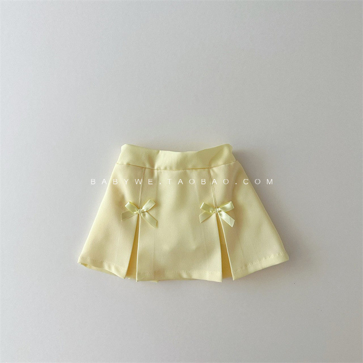 한국식 소녀 봄과 여름 단색 서양식 주름 치마 프레피 스타일 시크한 접시 매듭 노출 방지 원피스 바지 스커트스토어 가기