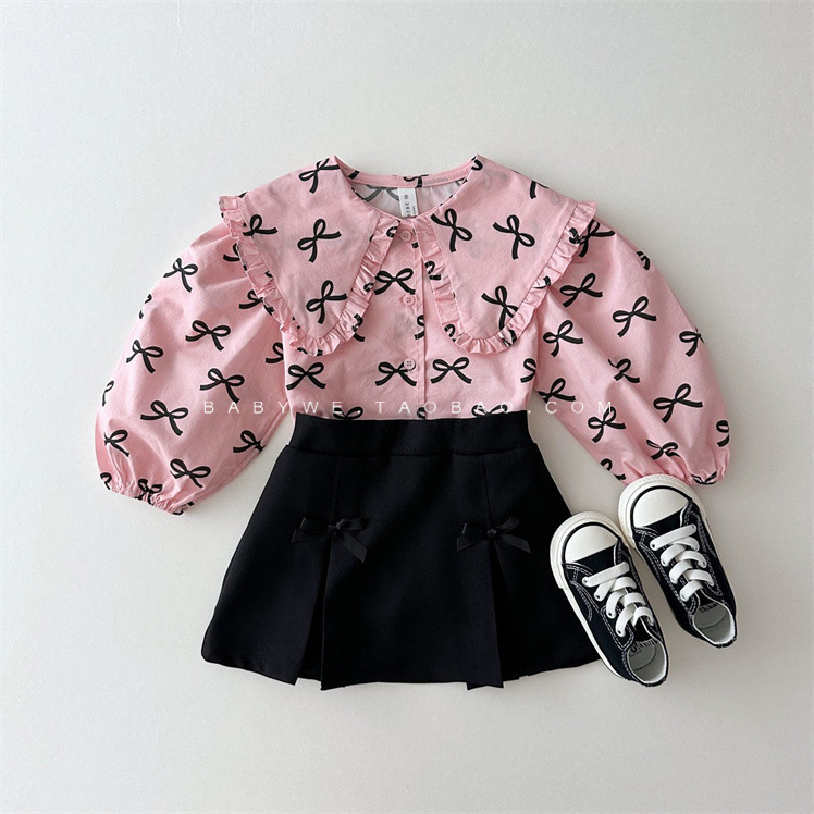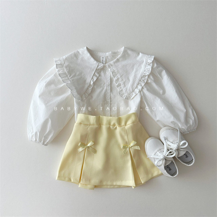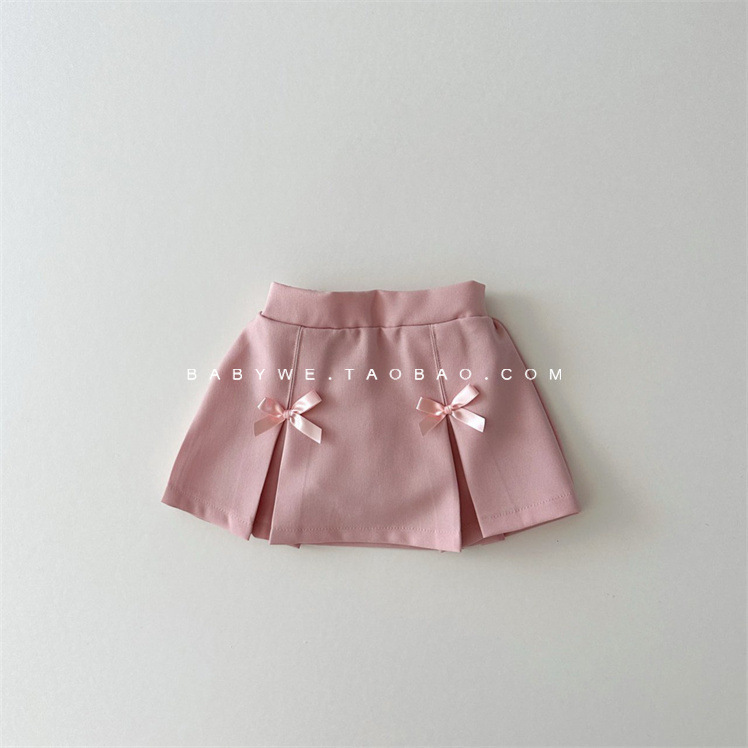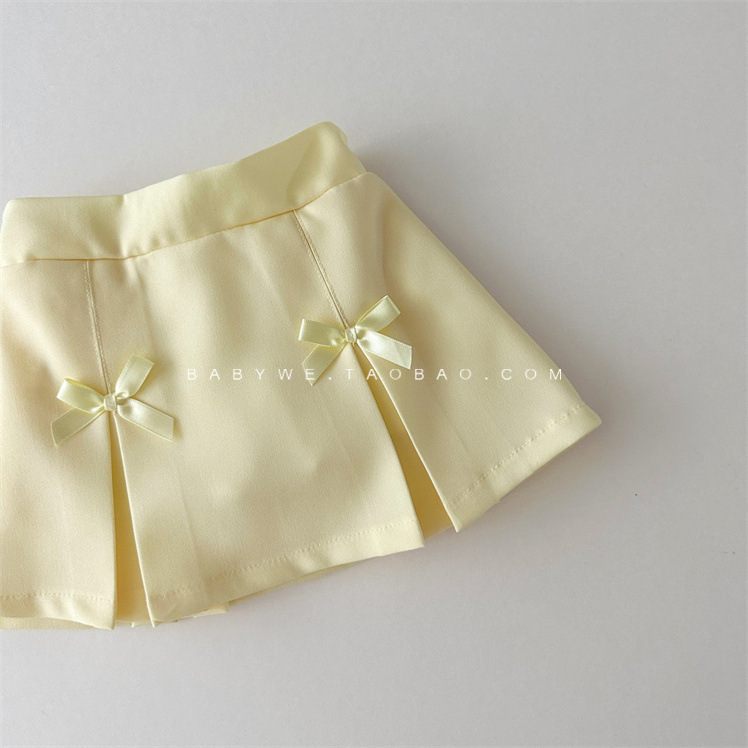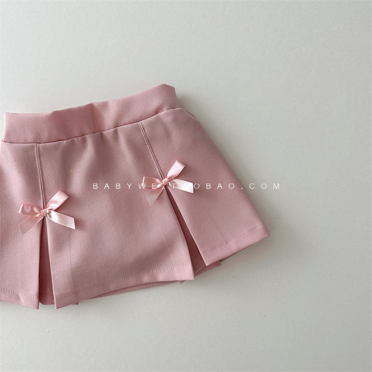 한국식 소녀 봄과 여름 단색 서양식 주름 치마 프레피 스타일 시크한 접시 매듭 노출 방지 원피스 바지 스커트