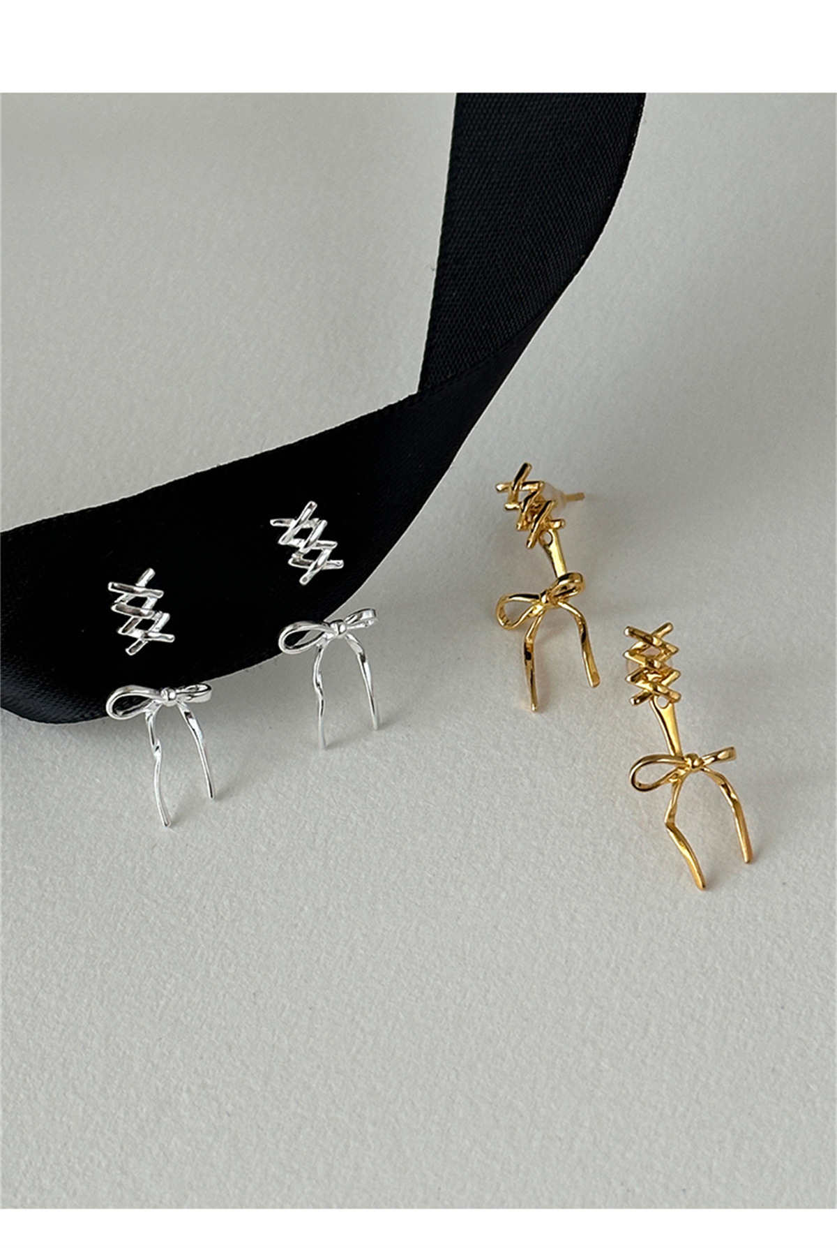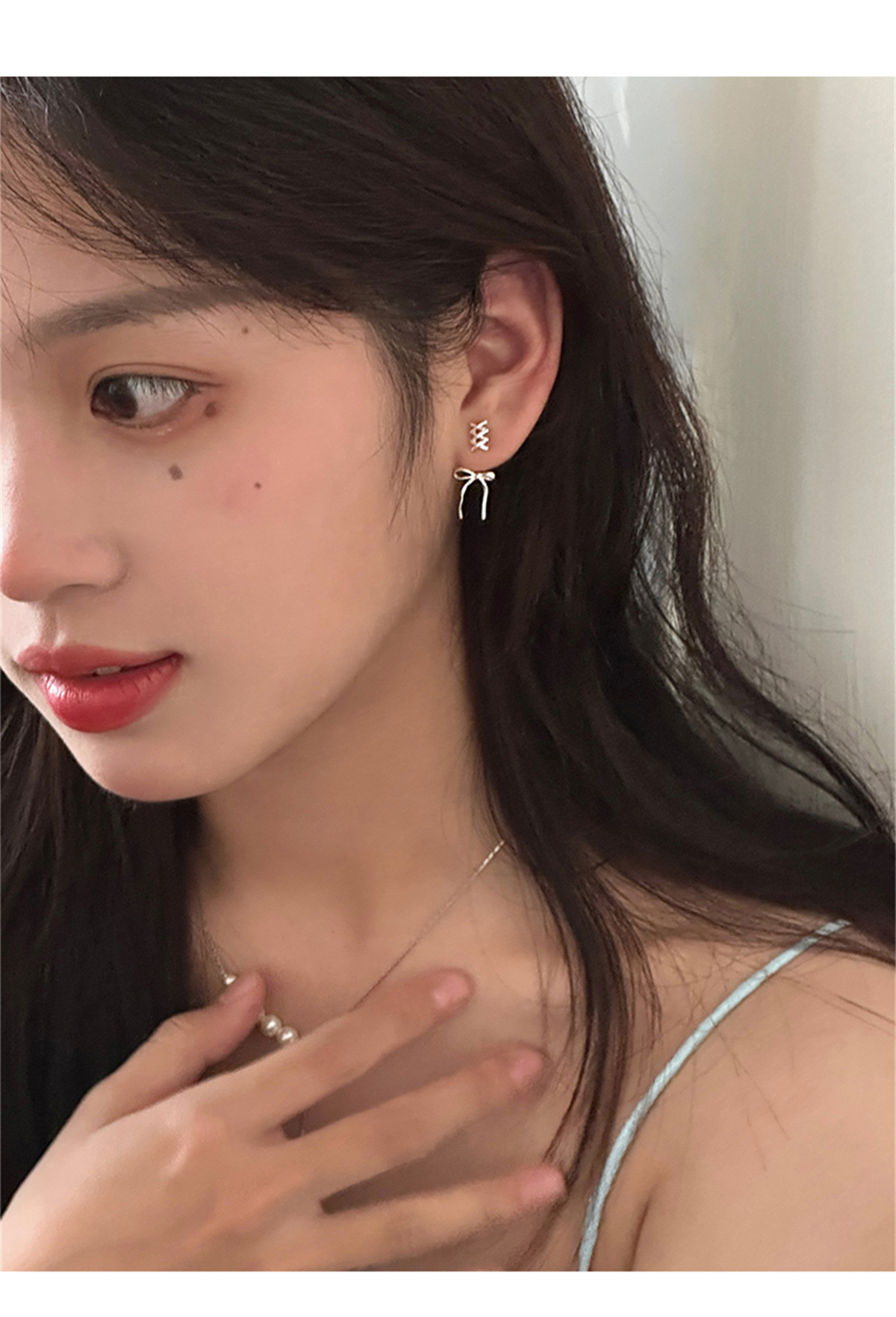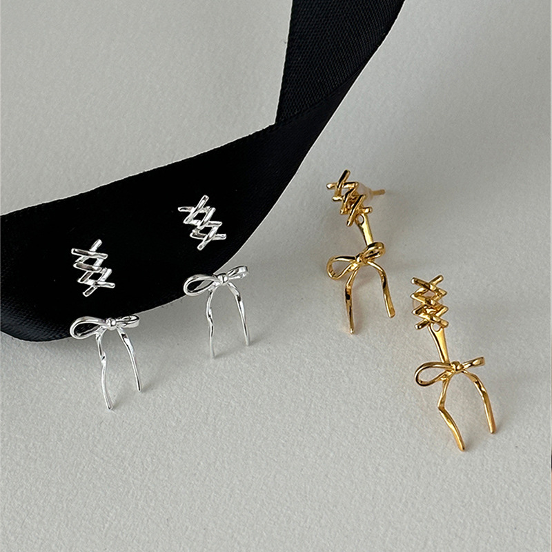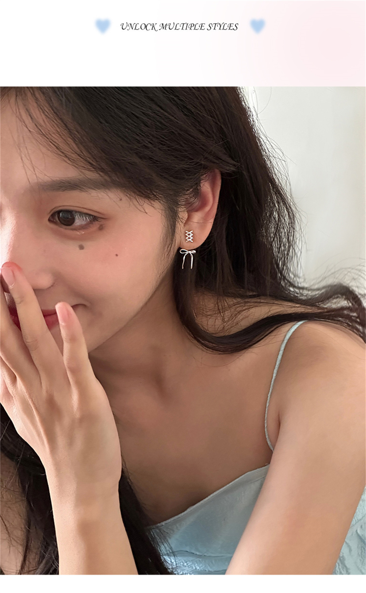 S925 실버 바늘 간단한 틈새에 달콤한 소녀 활 리본 다시 매달려 귀 스터드 귀걸이 여성용 2024 새로운스토어 가기