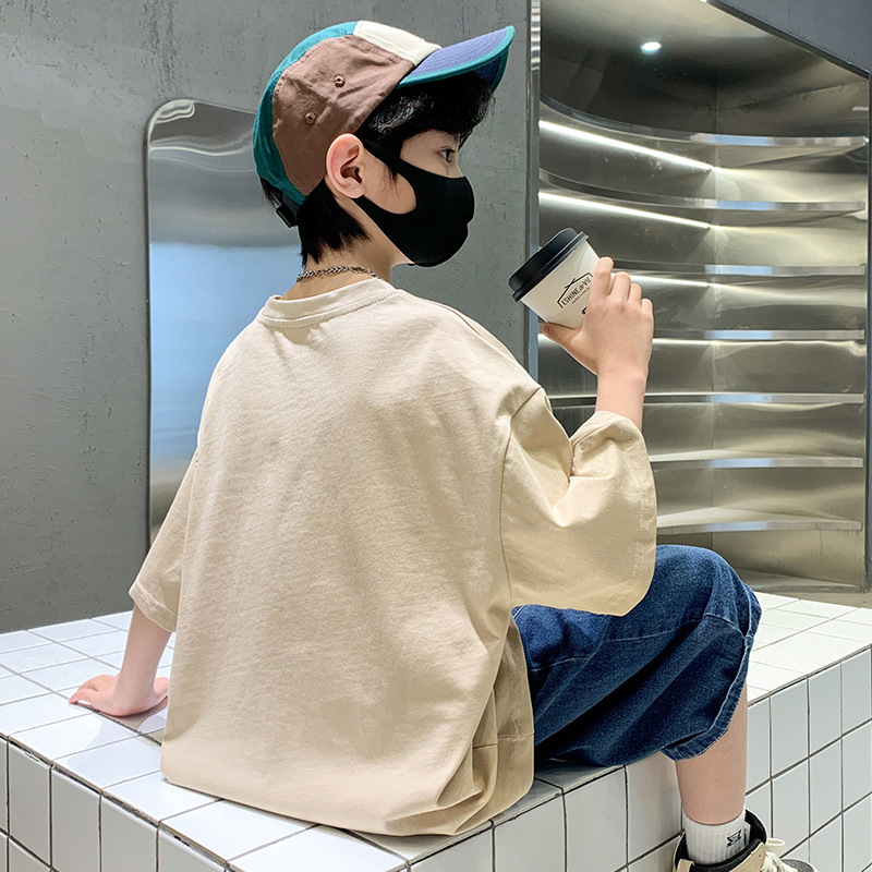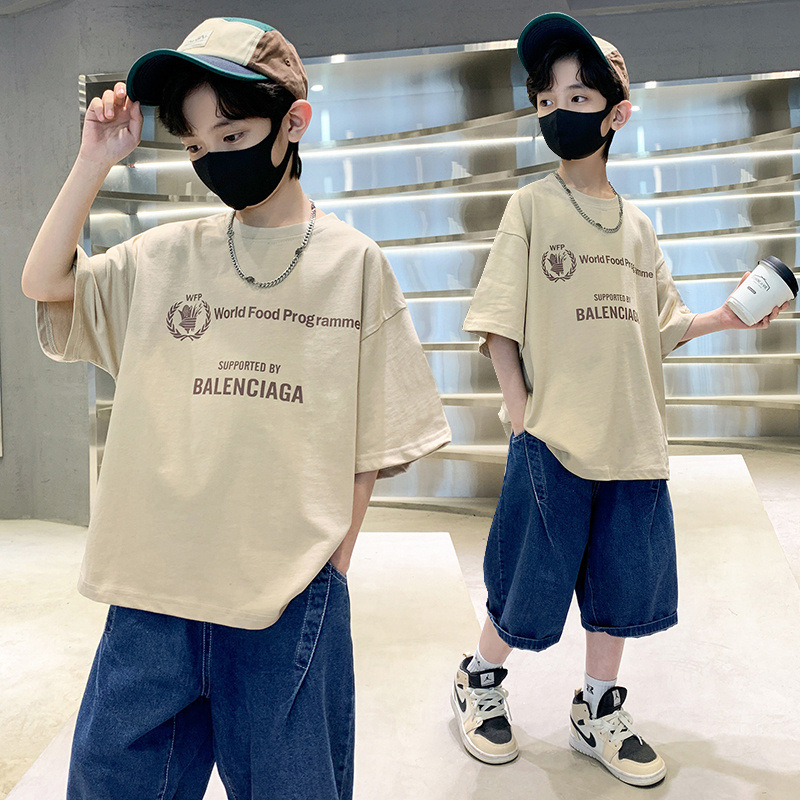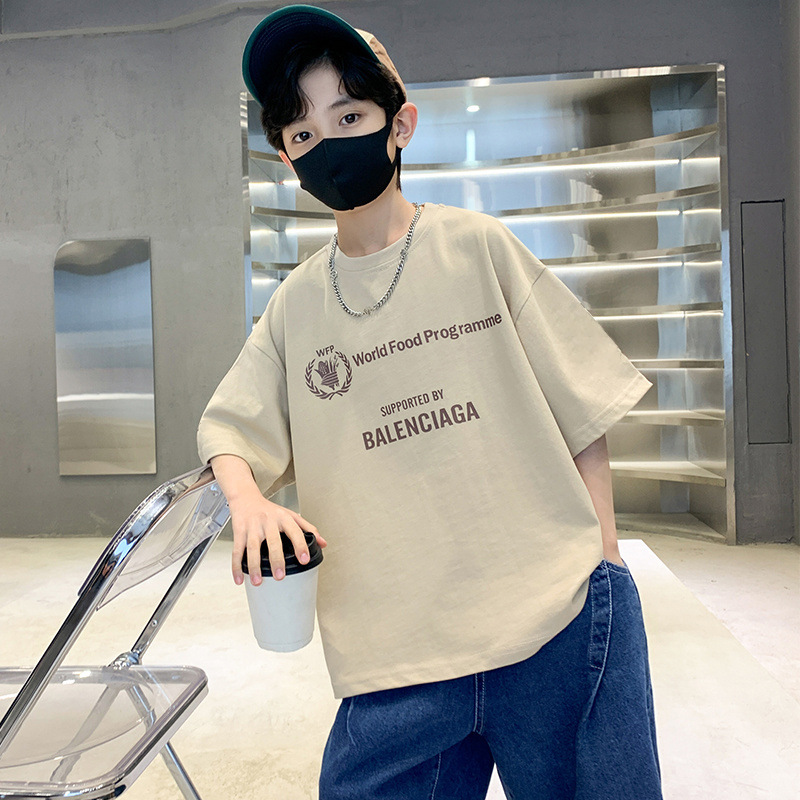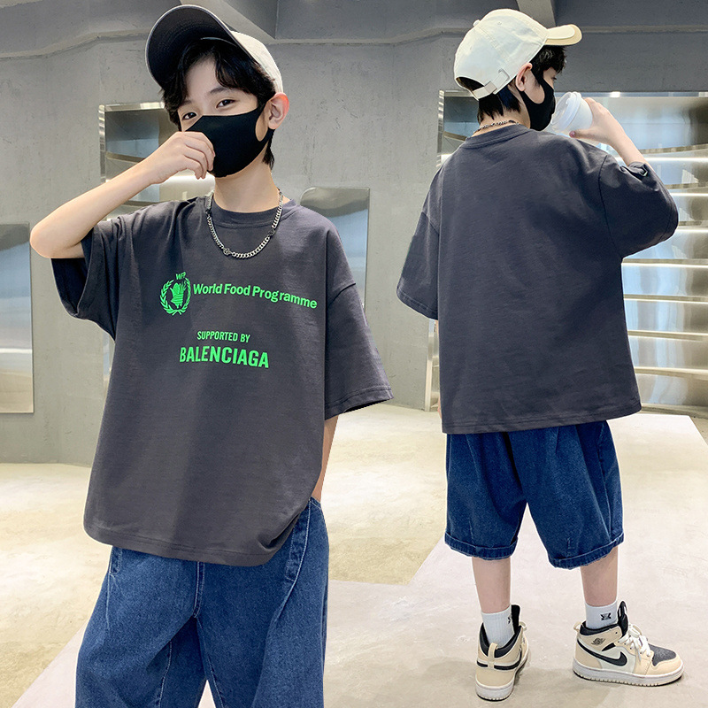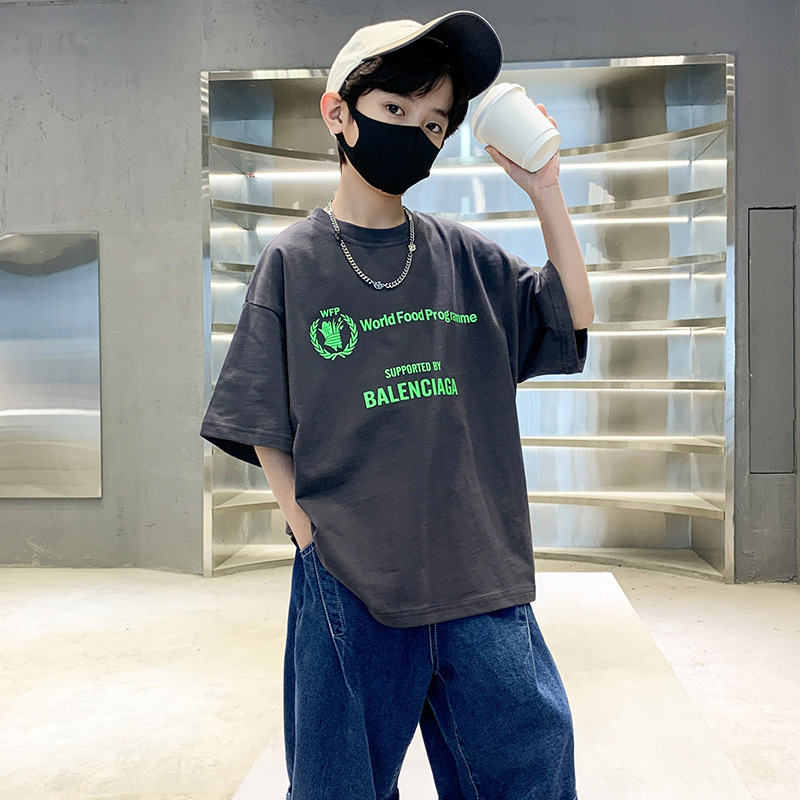 [100% 순면] 200g 소년 여름 새 편지 인쇄 티셔츠 어린이 반팔 패션