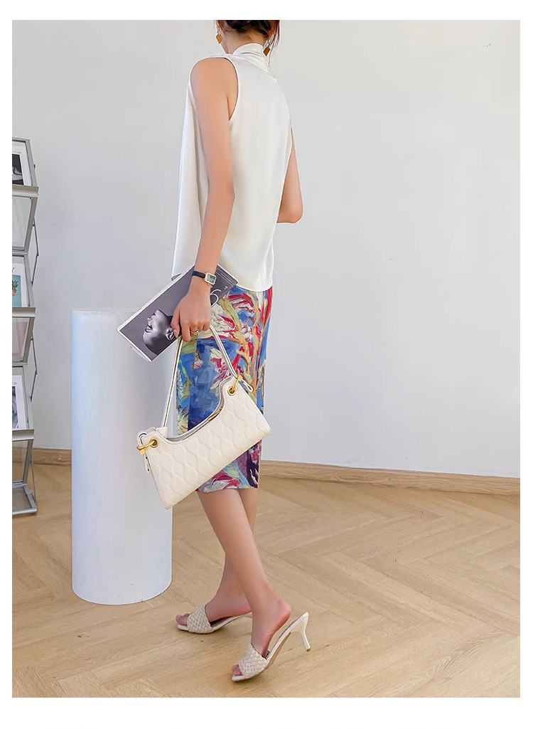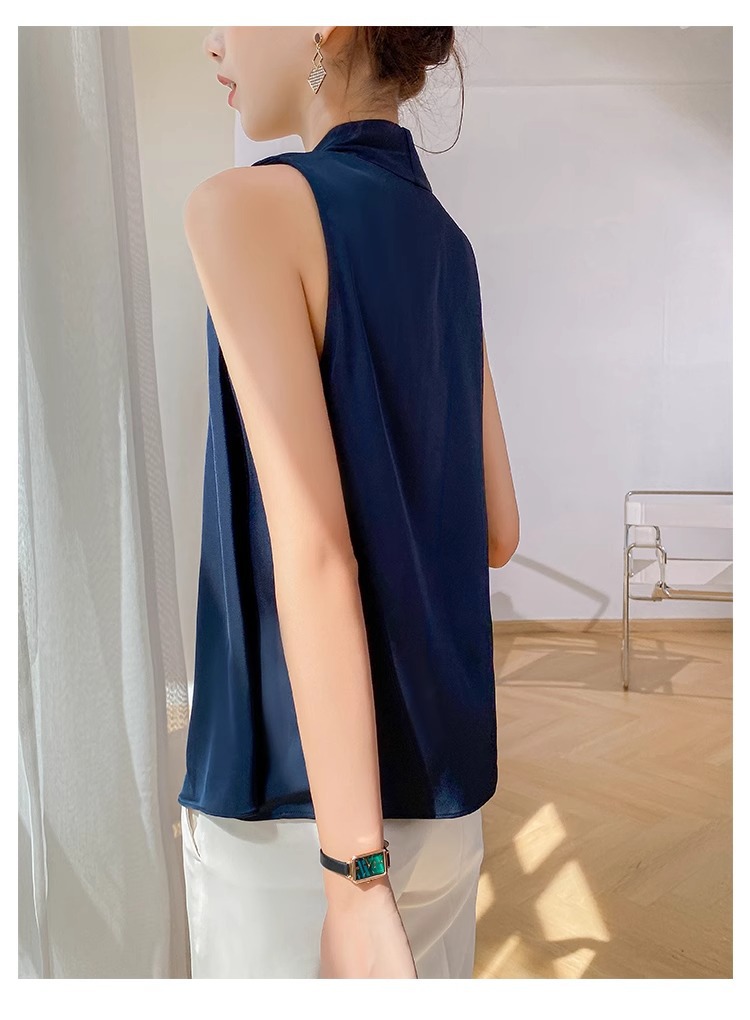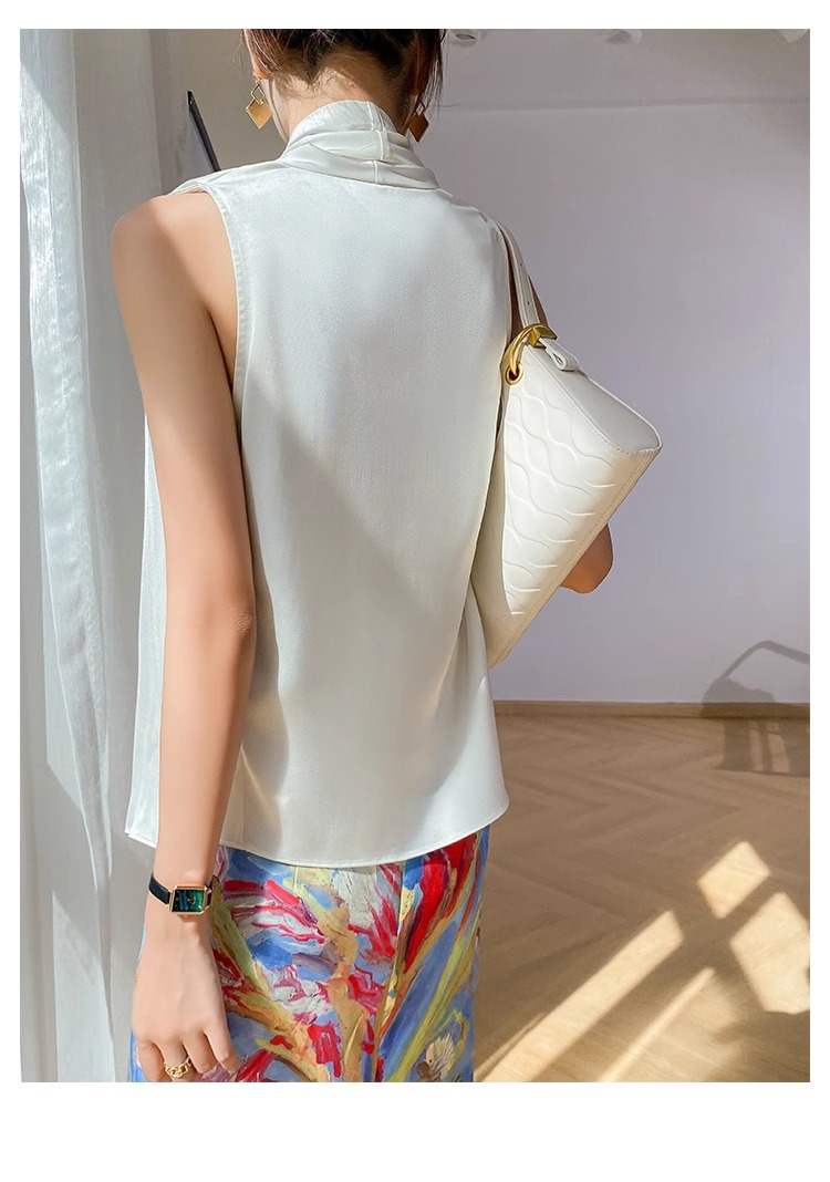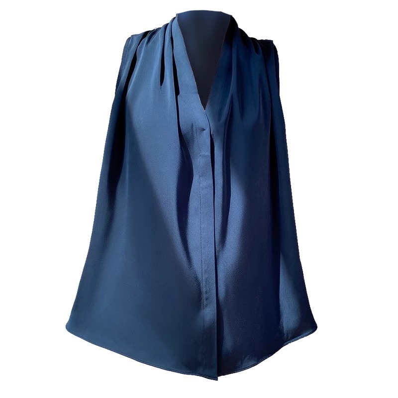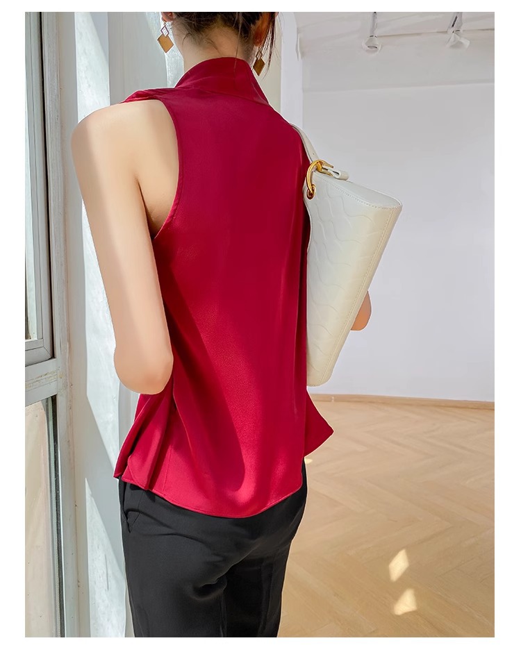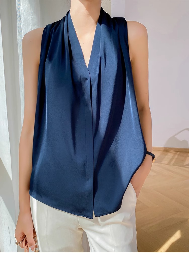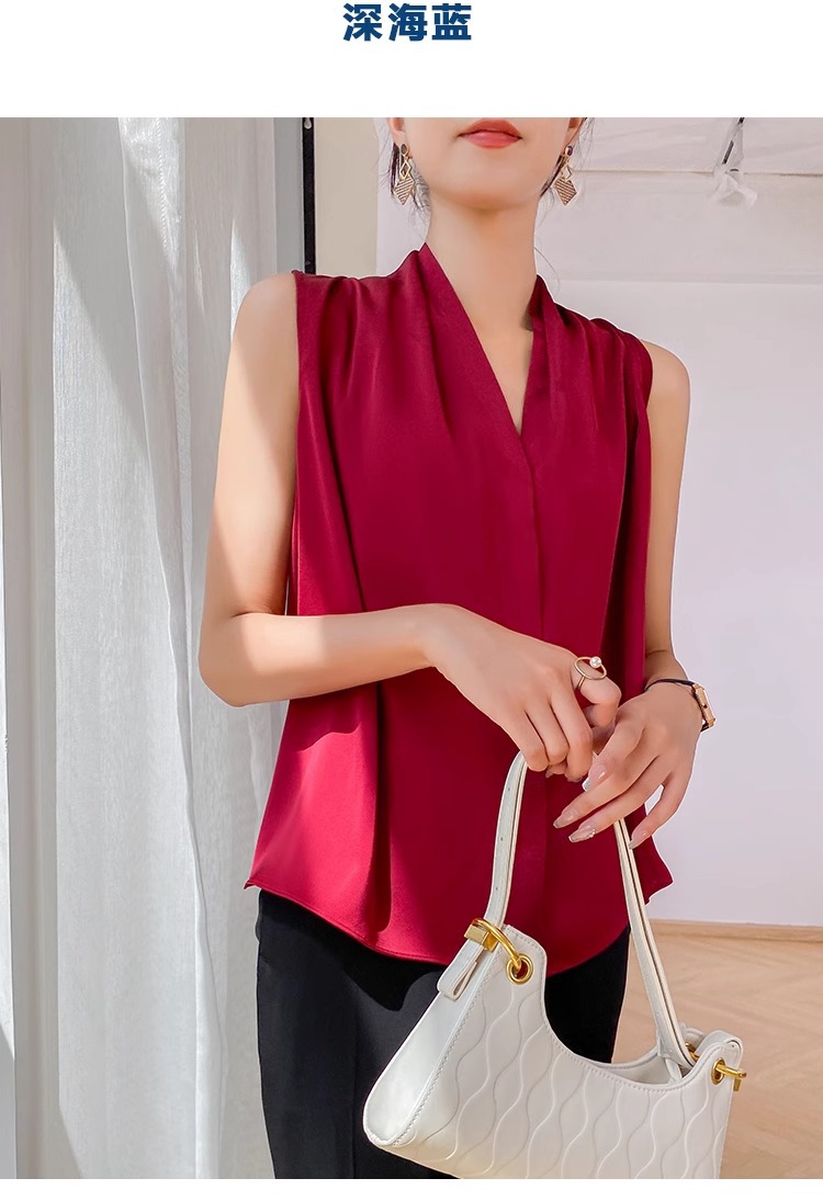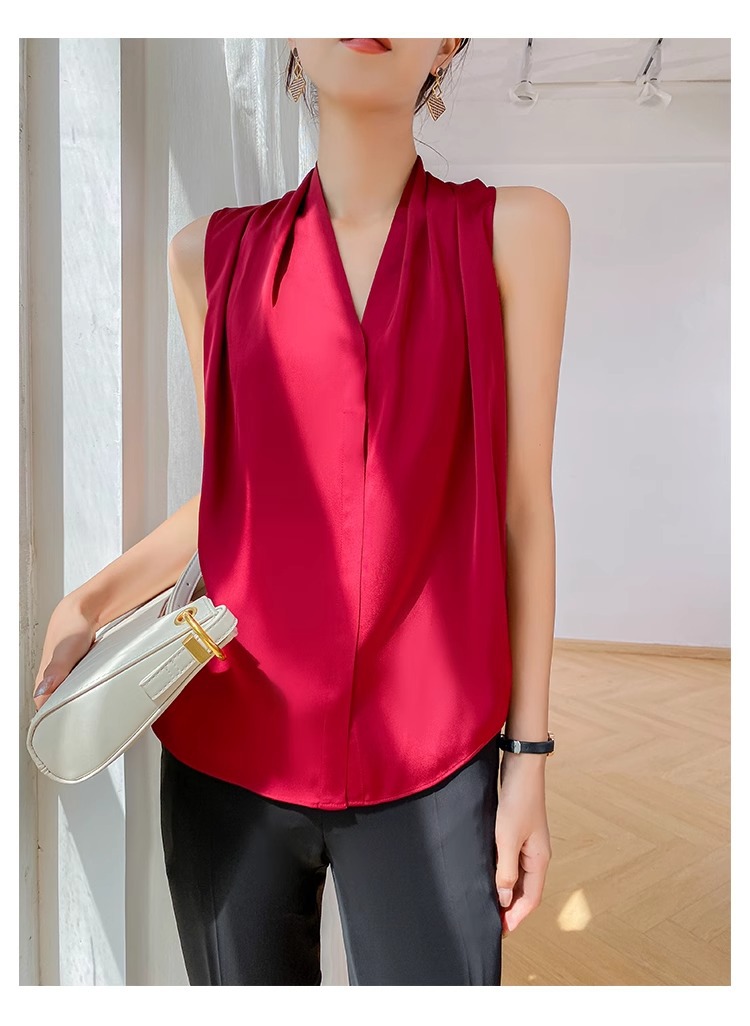 재고 프렌치 스타일 딥 V 민소매 목 탑 여성 여름 하이 엔드 아세테이트 조끼 새틴 칙 쉬폰 어깨 셔츠