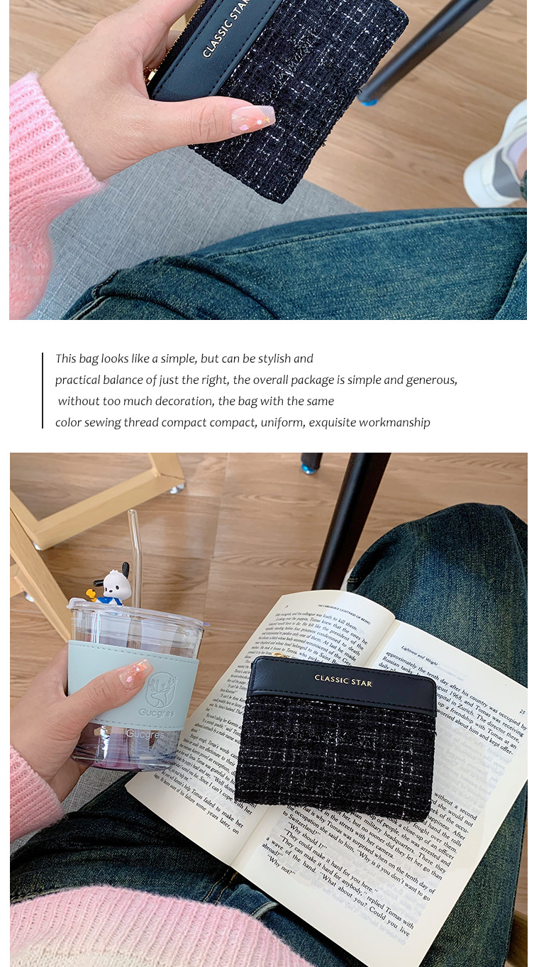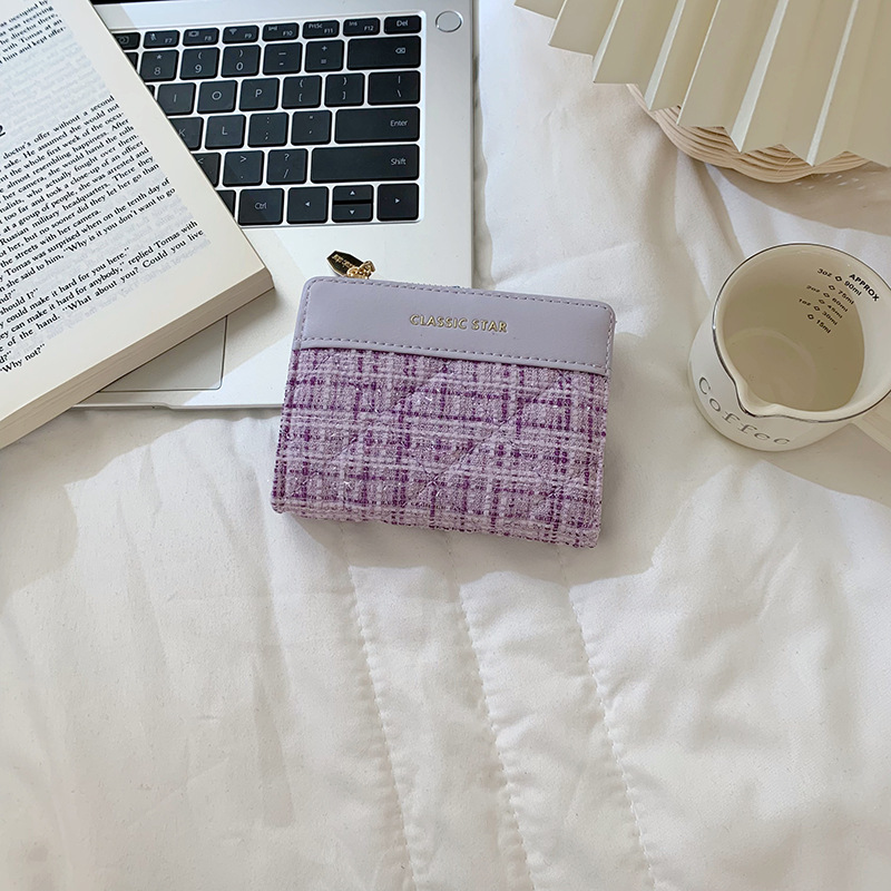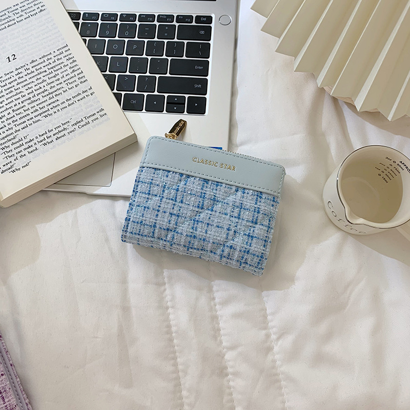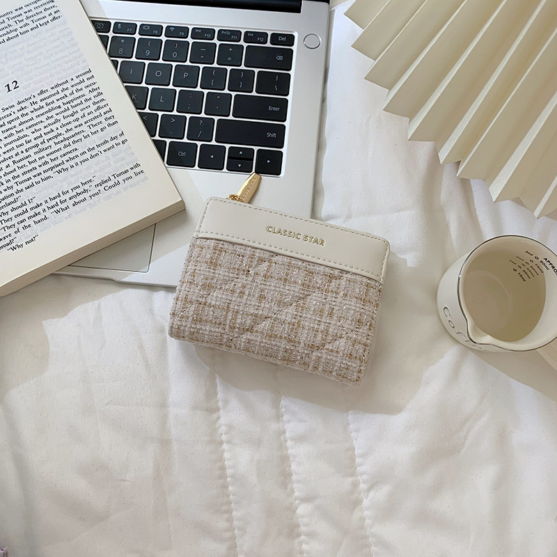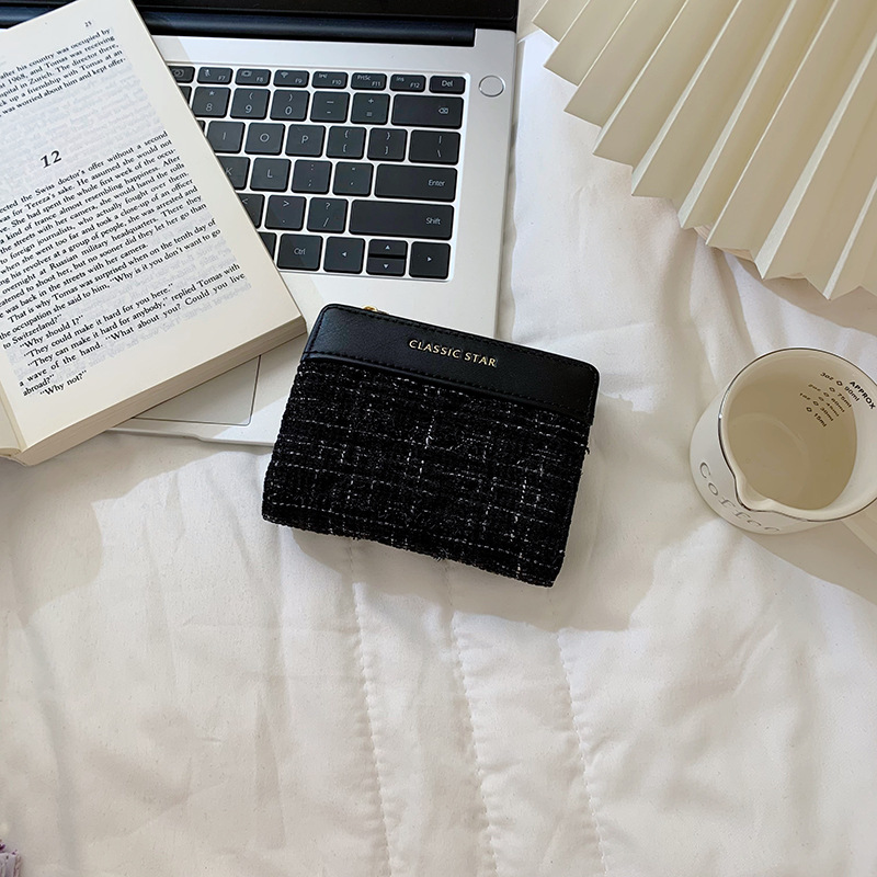 여성 지갑, 여성 한국식 짧은 샤넬 스타일 대용량 여성 학생 단색 간단한 국경 지갑