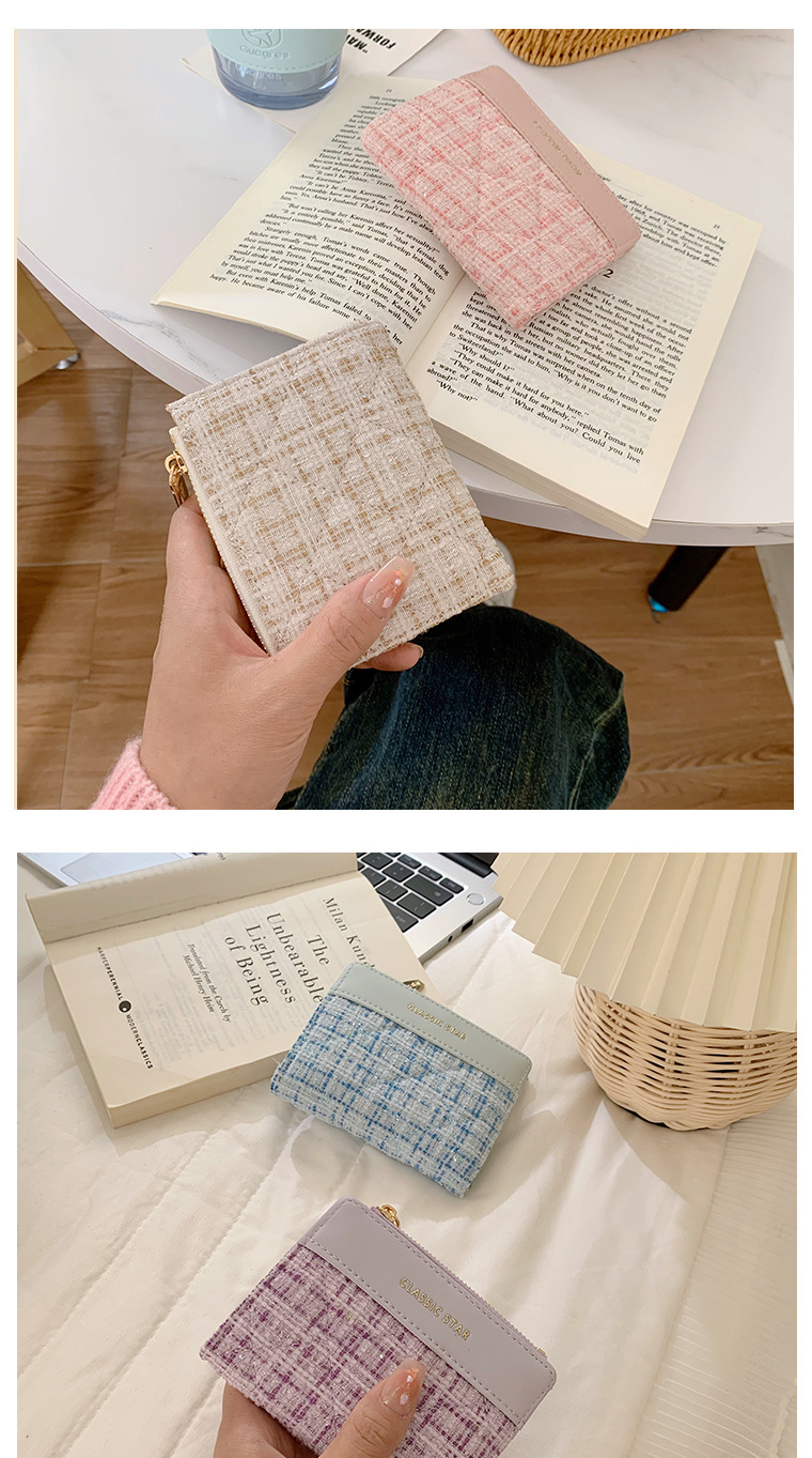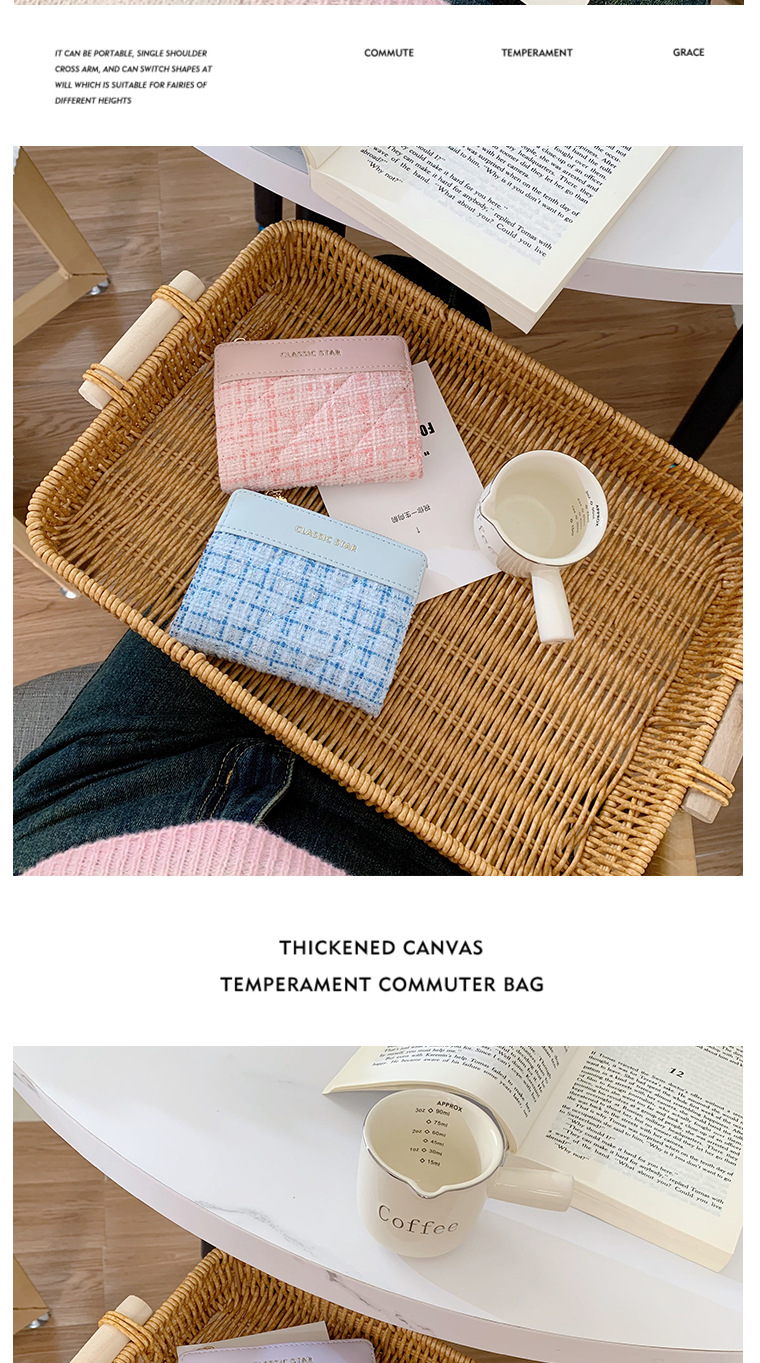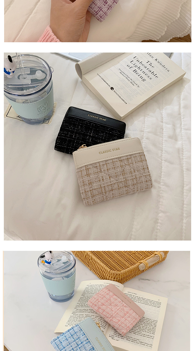 여성 지갑, 여성 한국식 짧은 샤넬 스타일 대용량 여성 학생 단색 간단한 국경 지갑