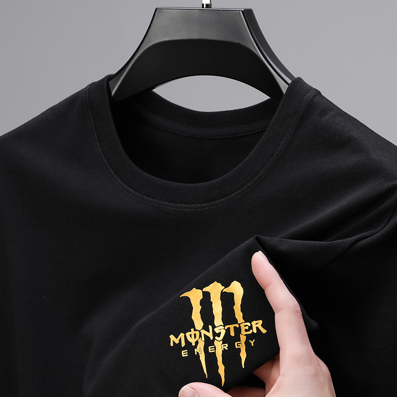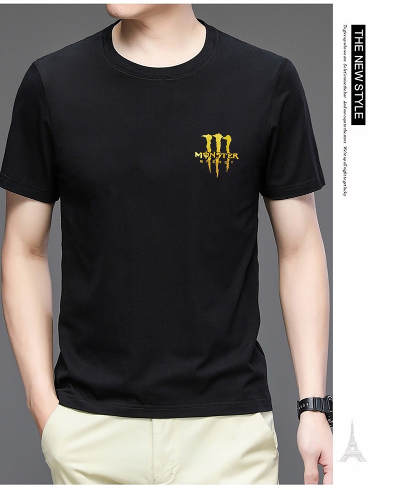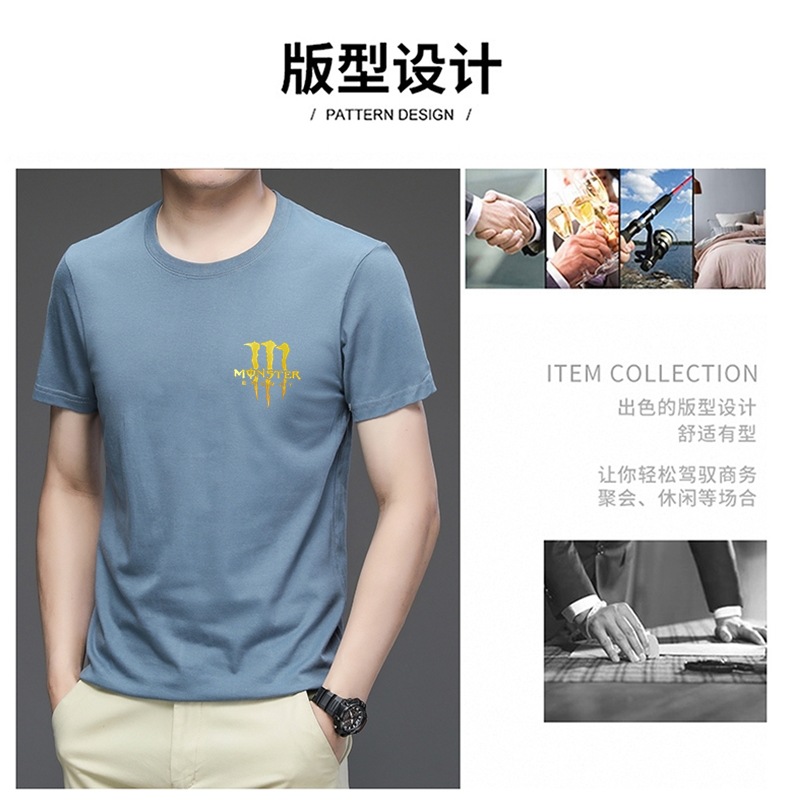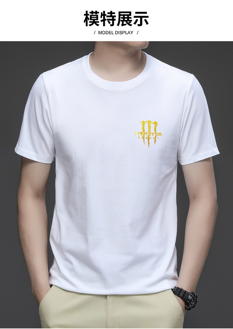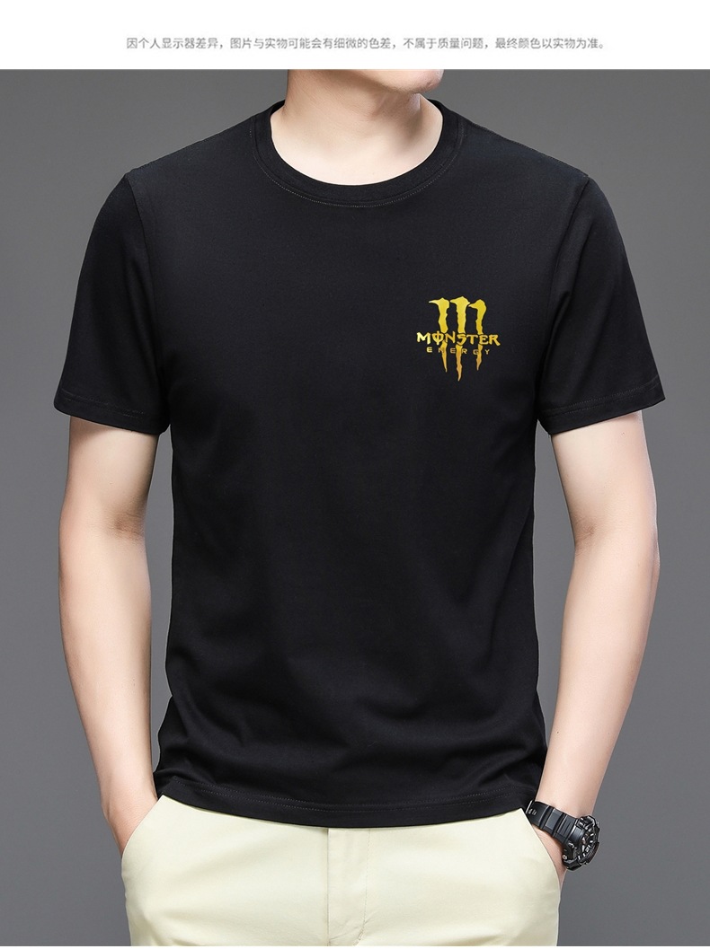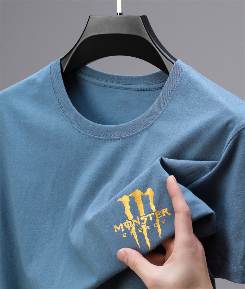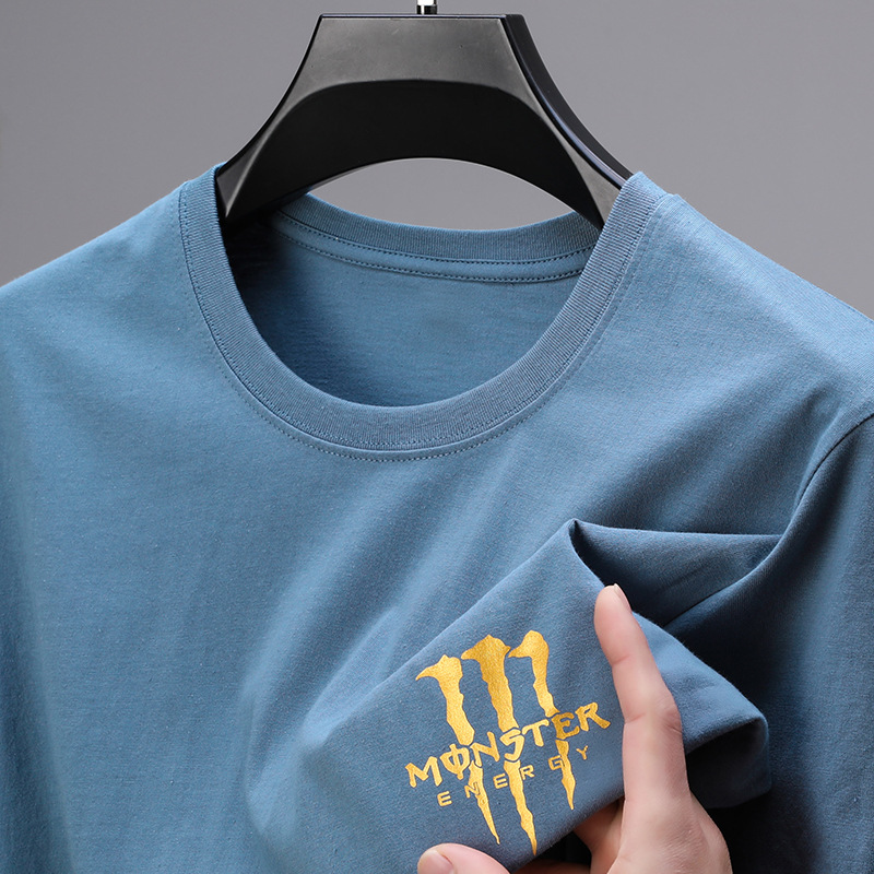여름 신입 남성 프린트 코튼 반팔 티셔츠 둥근 목 젊고 중년 캐주얼 느슨한 단색 트렌디 한 최고 트렌디 한 남성스토어 가기