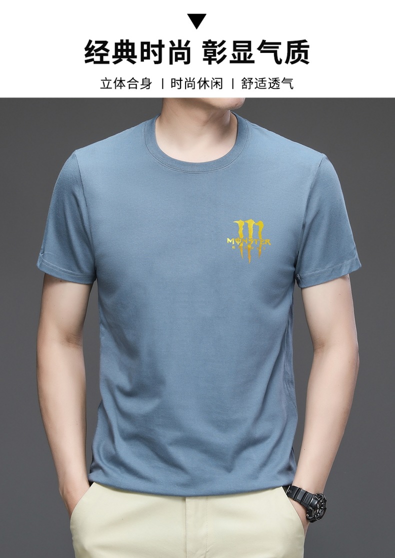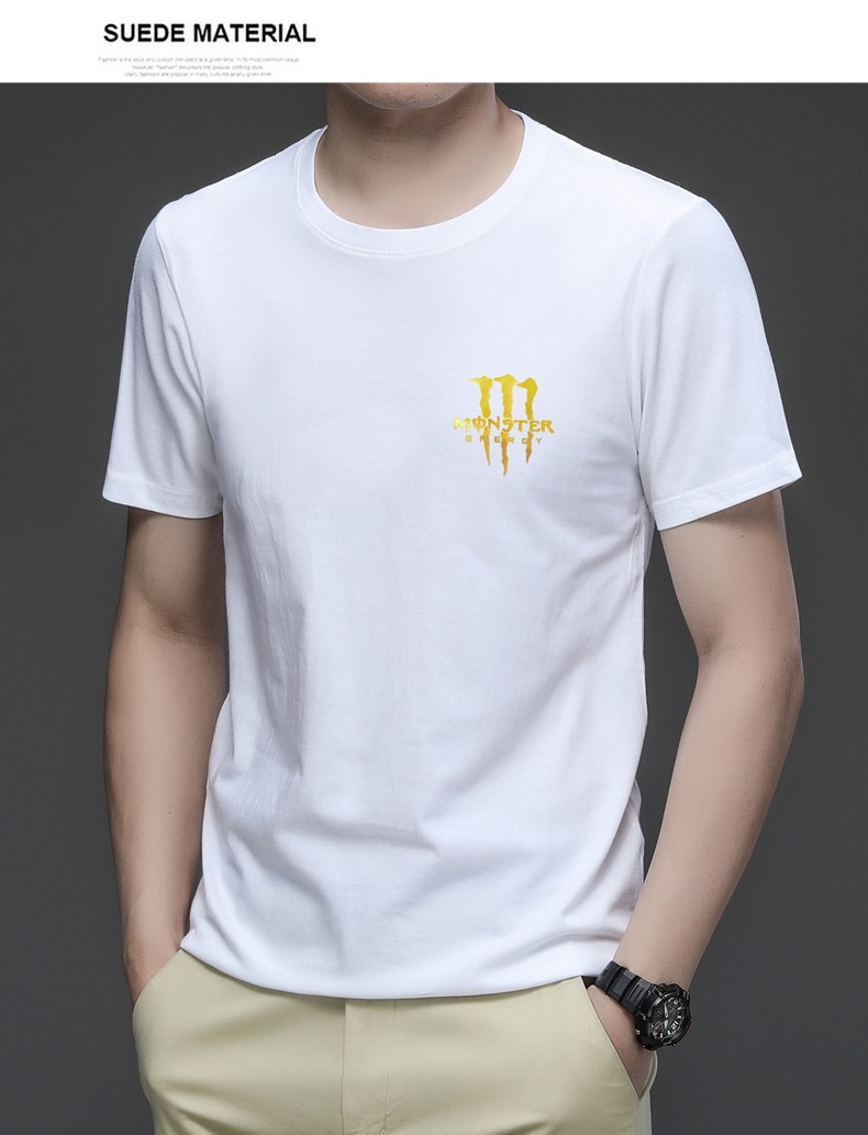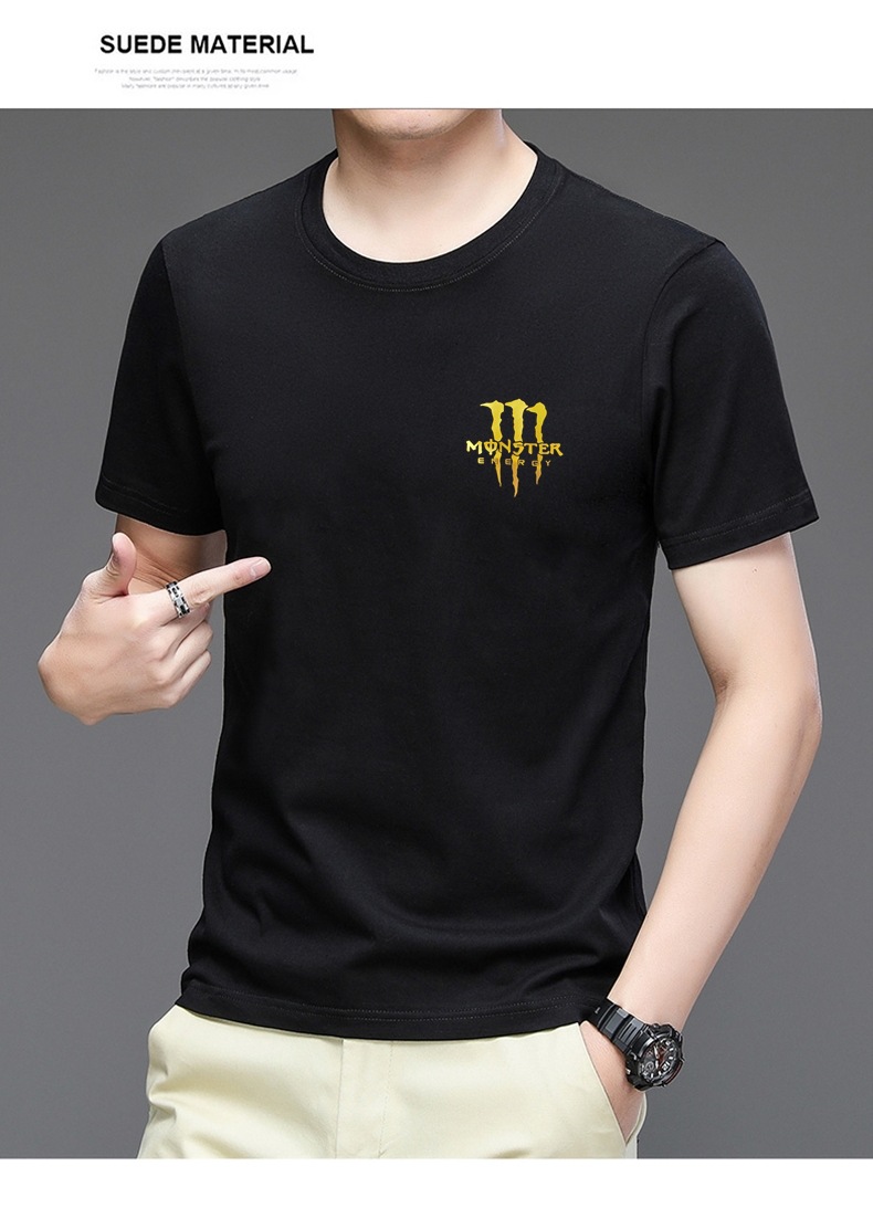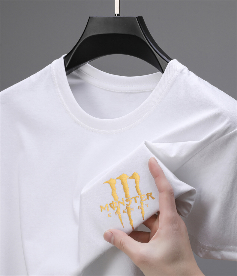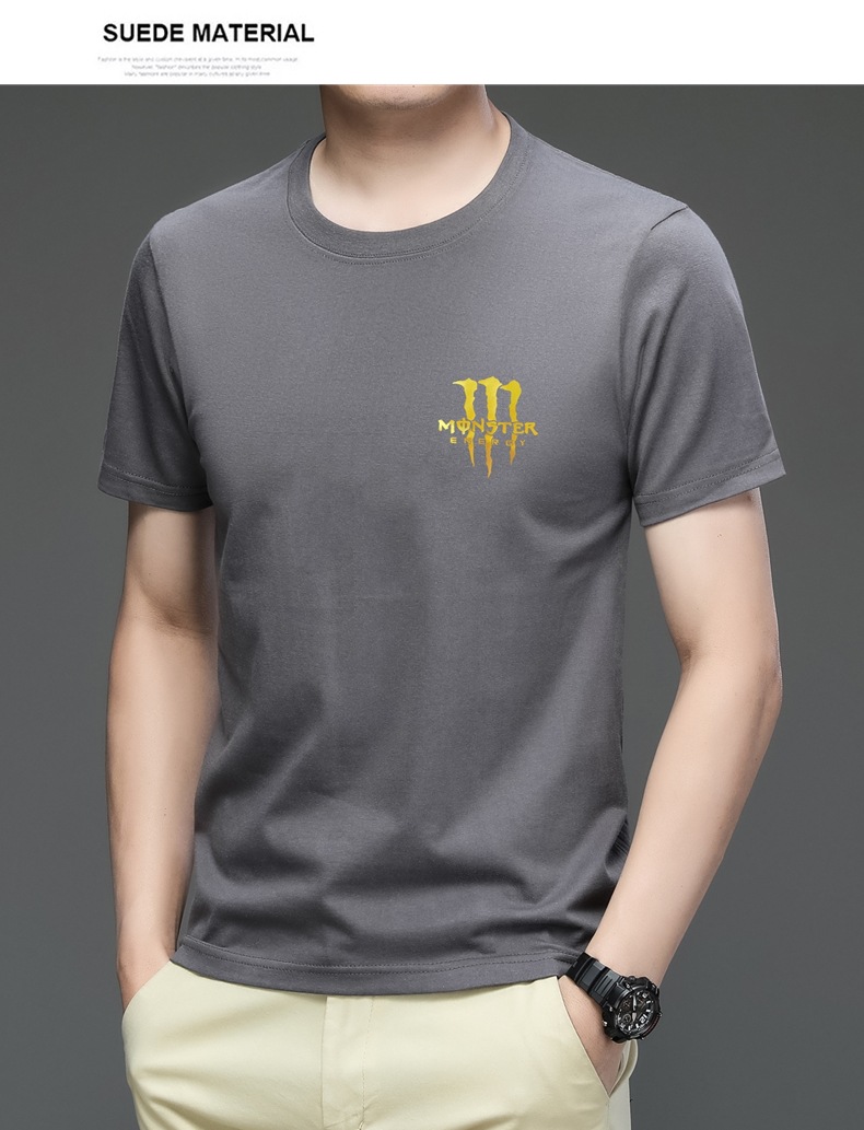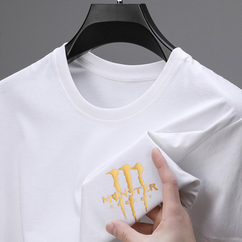 여름 신입 남성 프린트 코튼 반팔 티셔츠 둥근 목 젊고 중년 캐주얼 느슨한 단색 트렌디 한 최고 트렌디 한 남성스토어 가기