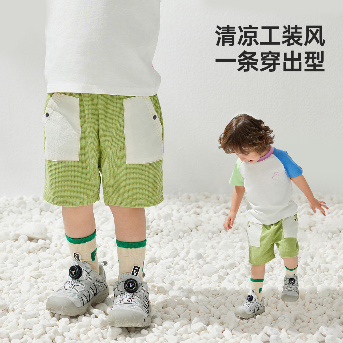 • 아보카도 그린 [니트 배색반바지] - 여름 스타일