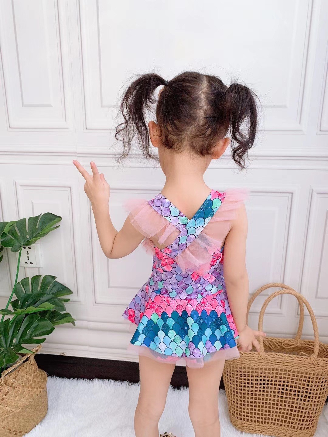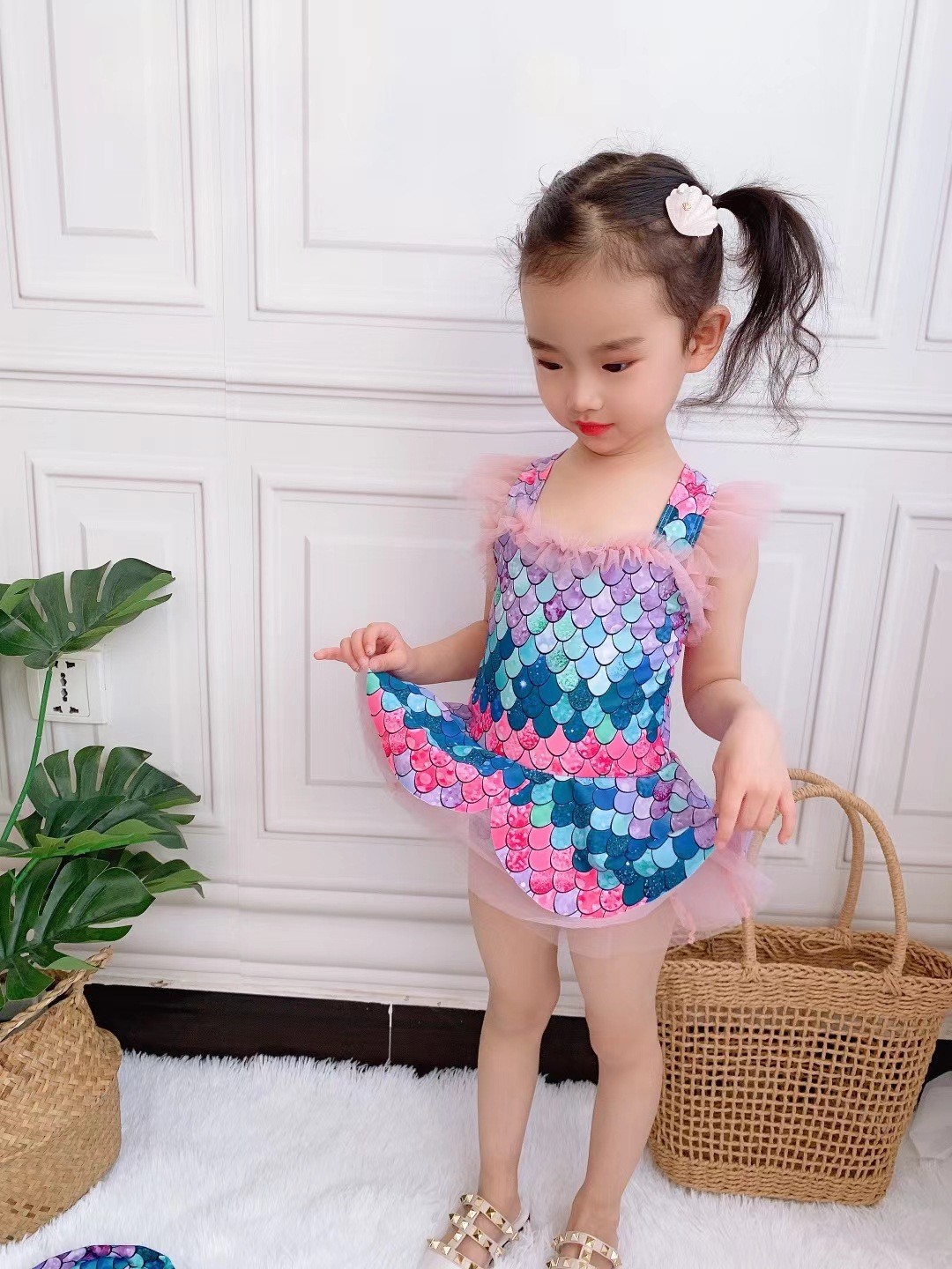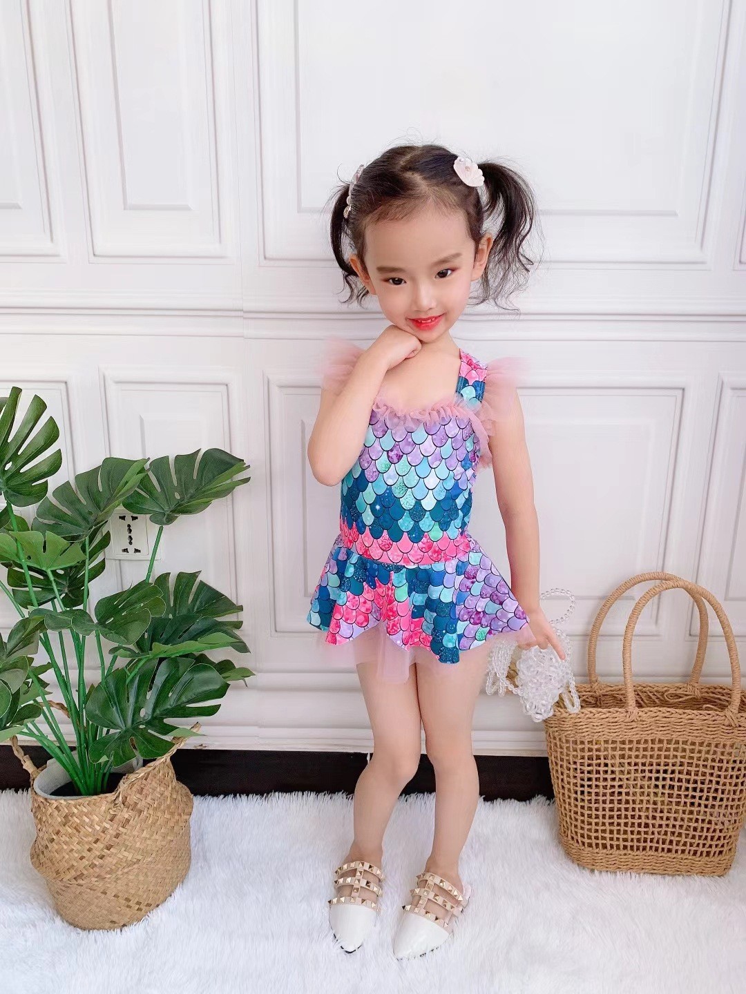 여자 수영복 원피스 원피스 공주 물고기 비늘 새 비키니 귀여운 빠른 건조 아기 소녀 중 큰 어린이 수영복스토어 가기