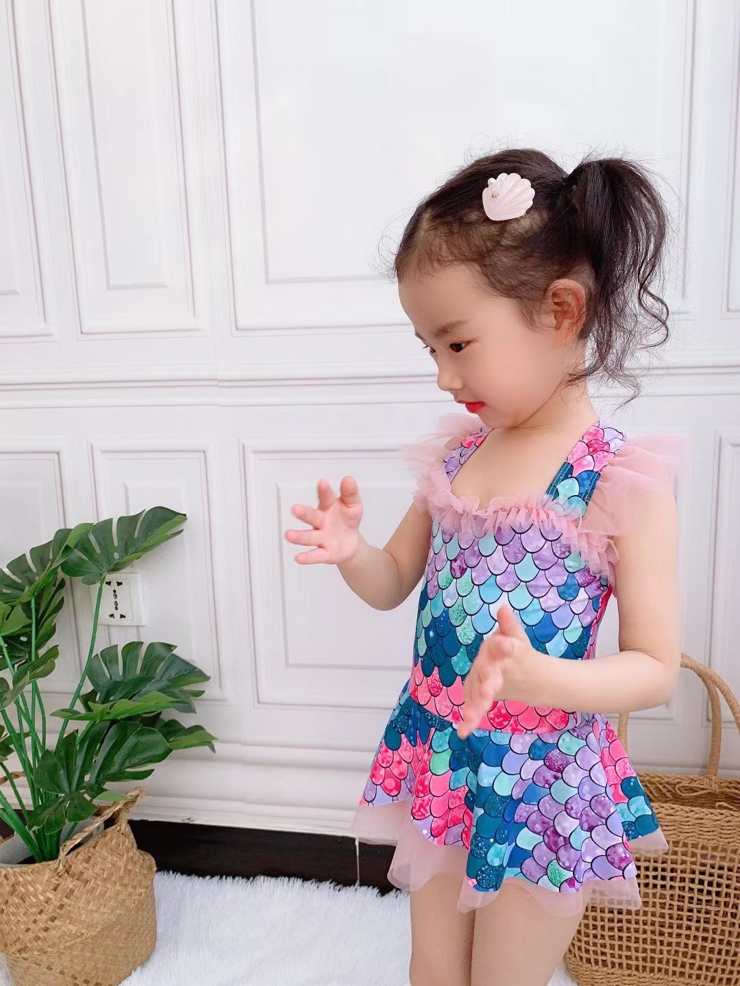 여자 수영복 원피스 원피스 공주 물고기 비늘 새 비키니 귀여운 빠른 건조 아기 소녀 중 큰 어린이 수영복