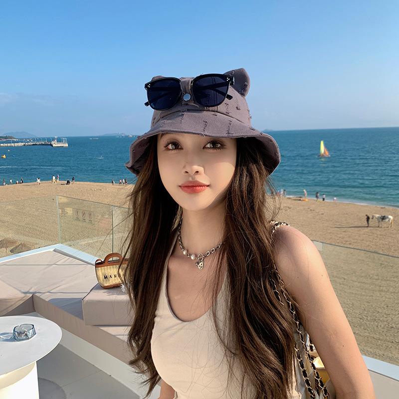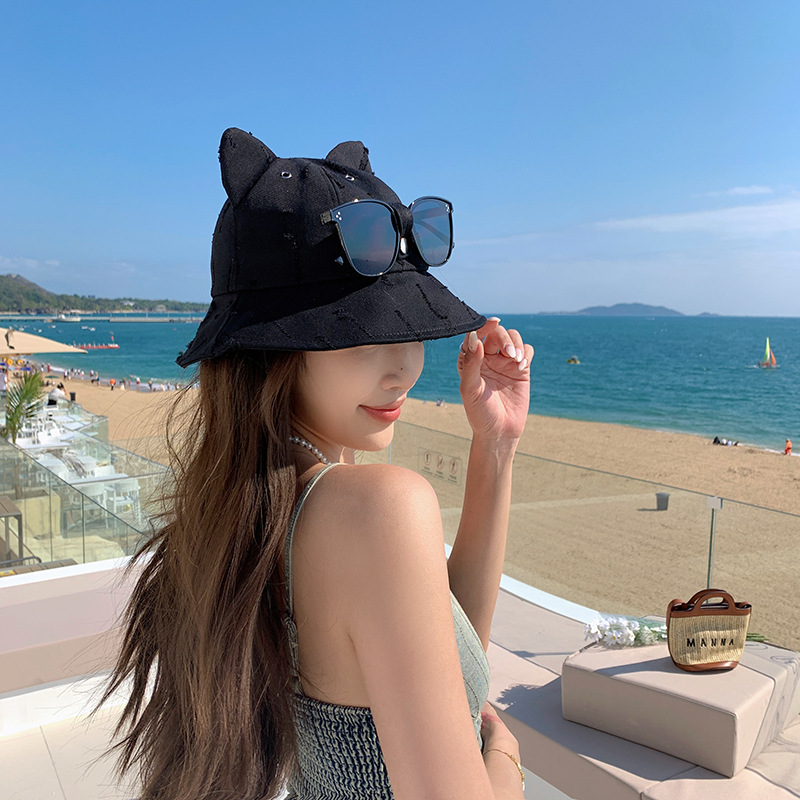 새로운 고양이 귀 조종사 어부 모자 여성 봄 패션 올 매치 플레이트 모자 야외 태양 보호 버킷 모자