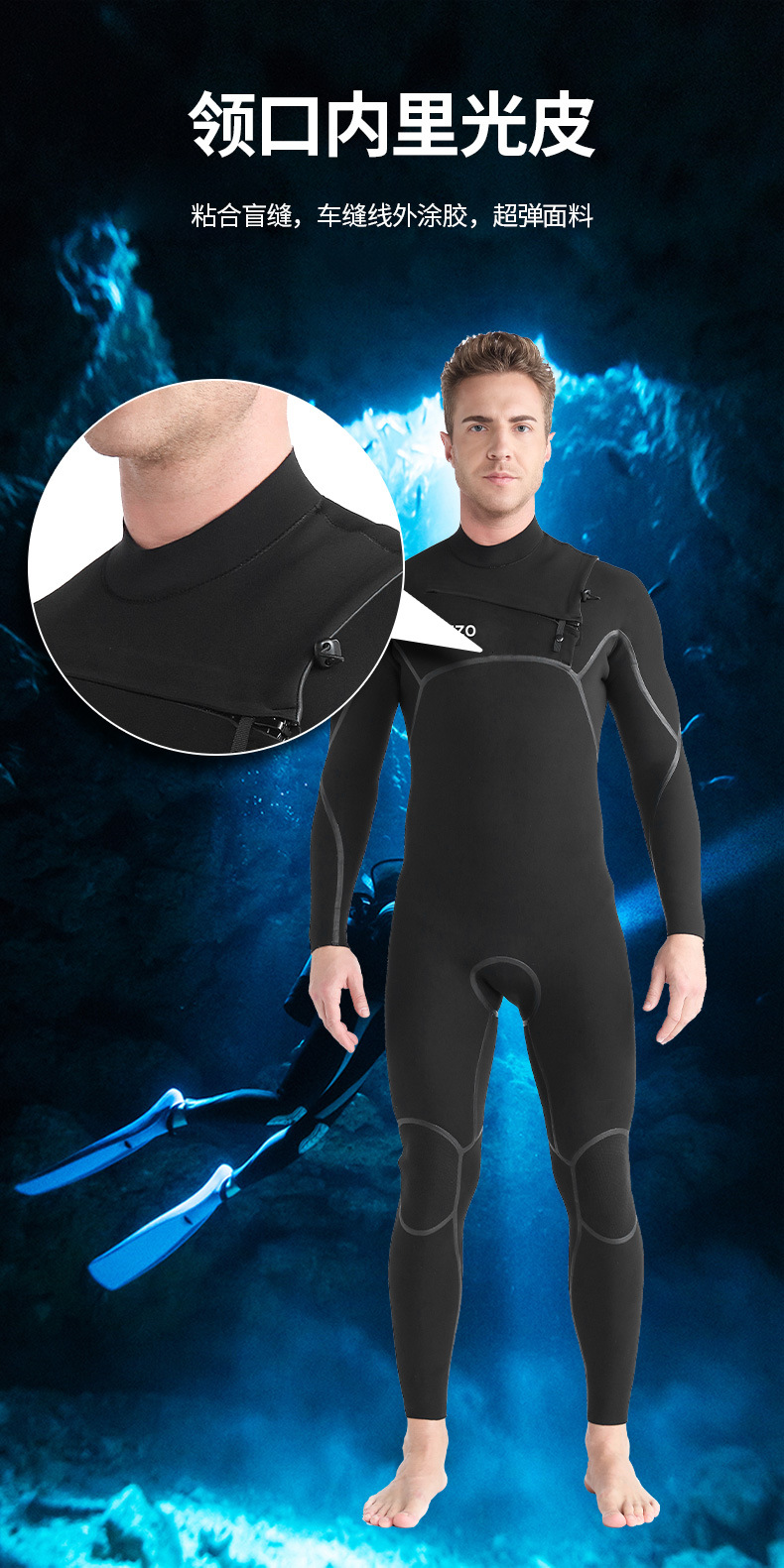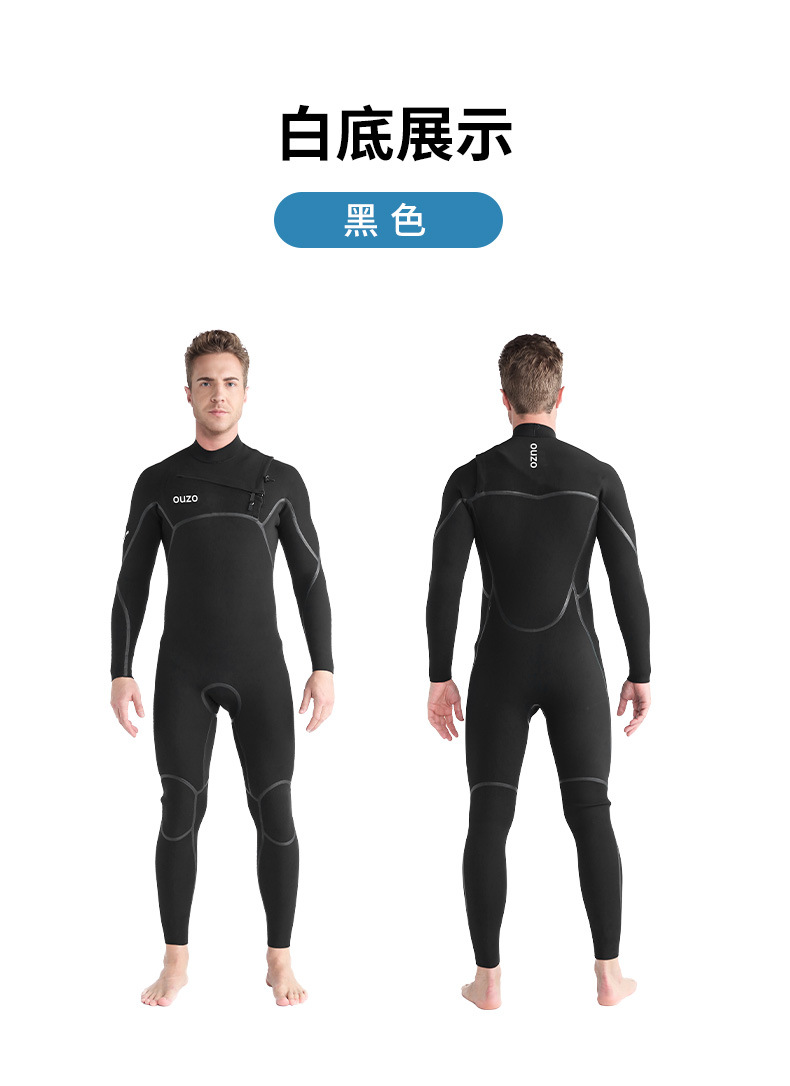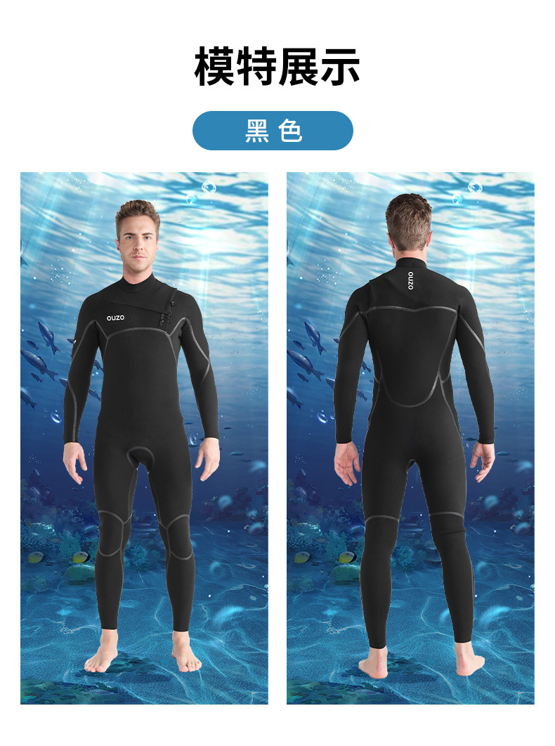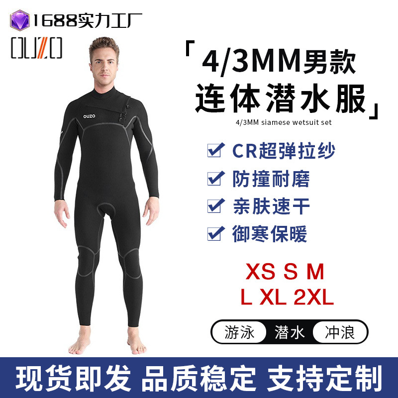 定制4/3潜水服男长袖长裤连体防晒防寒保暖加绒浮潜加厚冲浪服