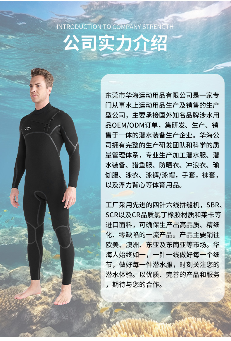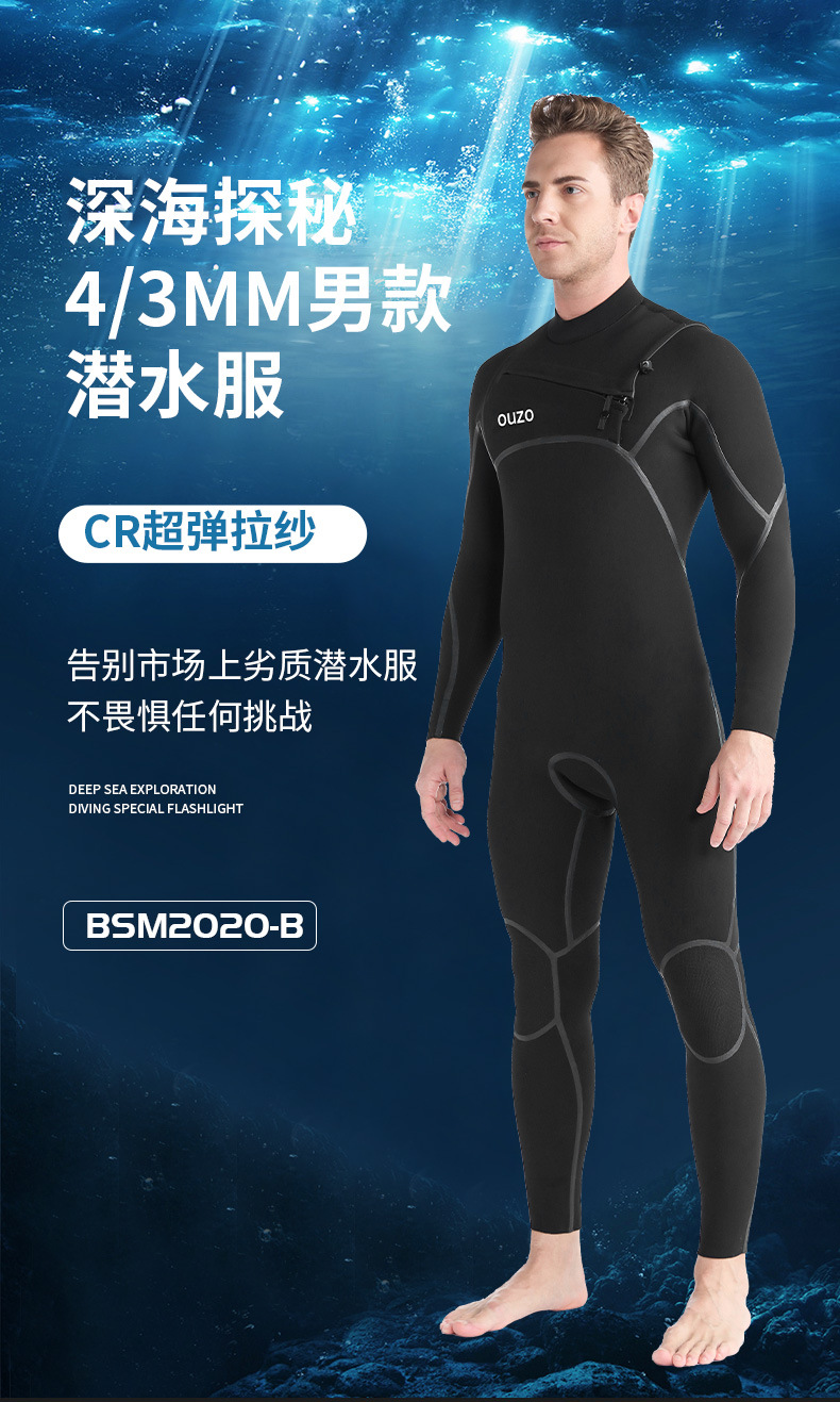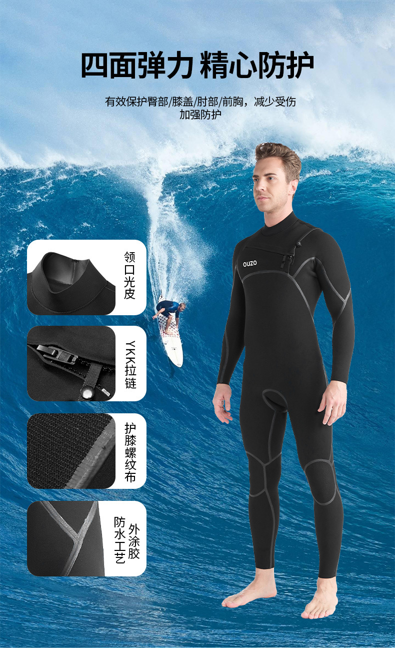 定制4/3潜水服男长袖长裤连体防晒防寒保暖加绒浮潜加厚冲浪服