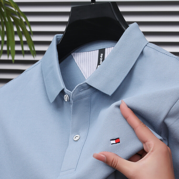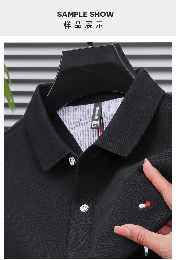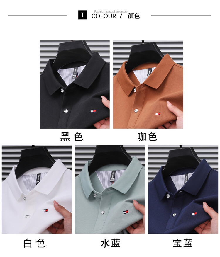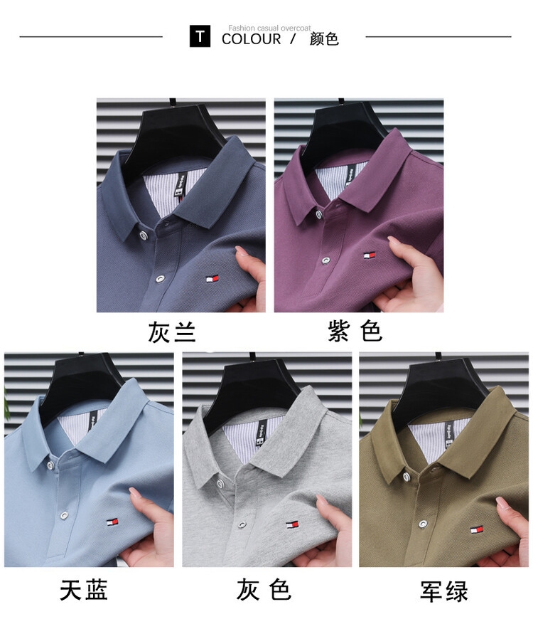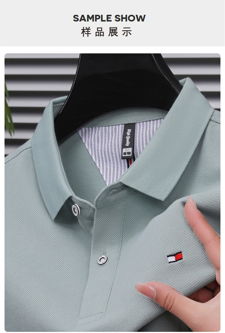 고급 스트라이프 스티칭면 반팔 티셔츠 남성용 폴로 셔츠 옷깃 2024 새로운 중년 및 노인 아빠는 단색 탑을 입습니다.스토어 가기