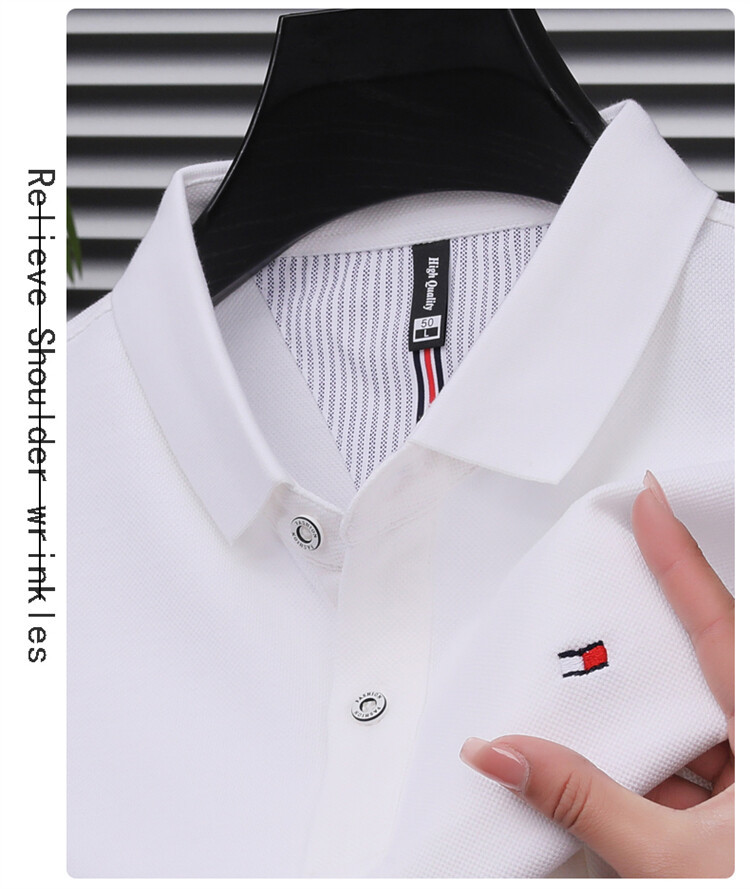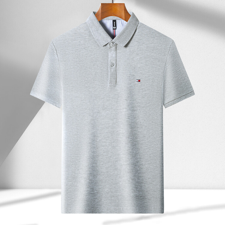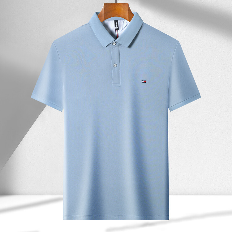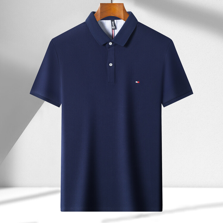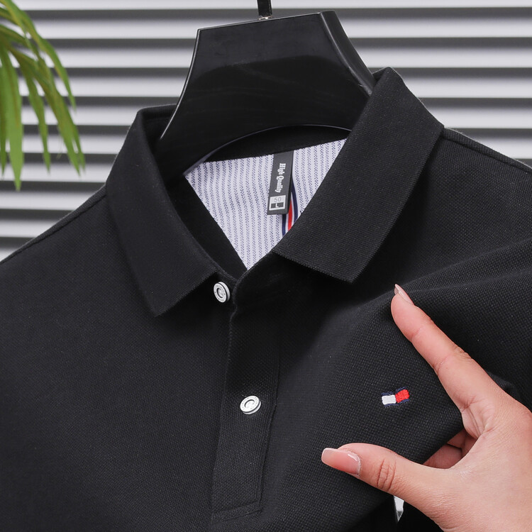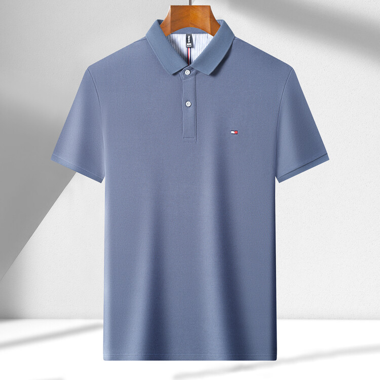 고급 스트라이프 스티칭면 반팔 티셔츠 남성용 폴로 셔츠 옷깃 2024 새로운 중년 및 노인 아빠는 단색 탑을 입습니다.스토어 가기