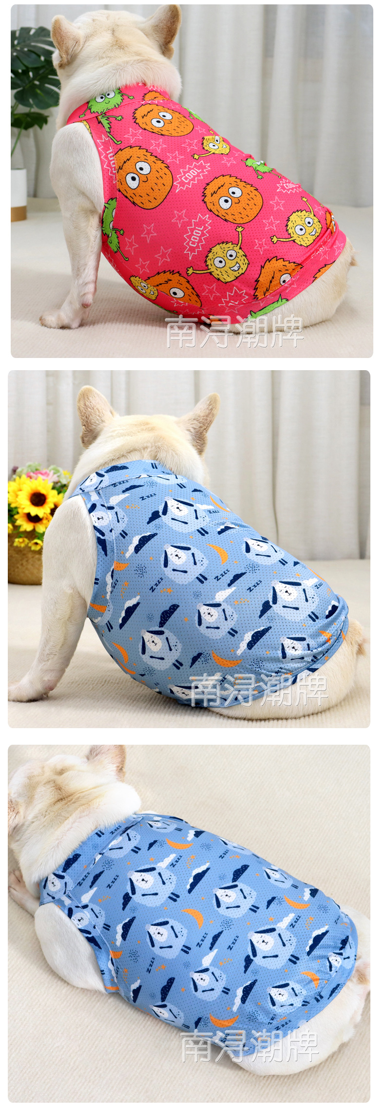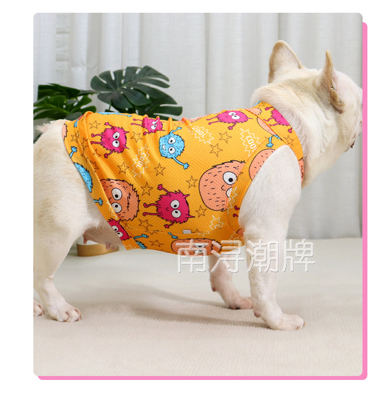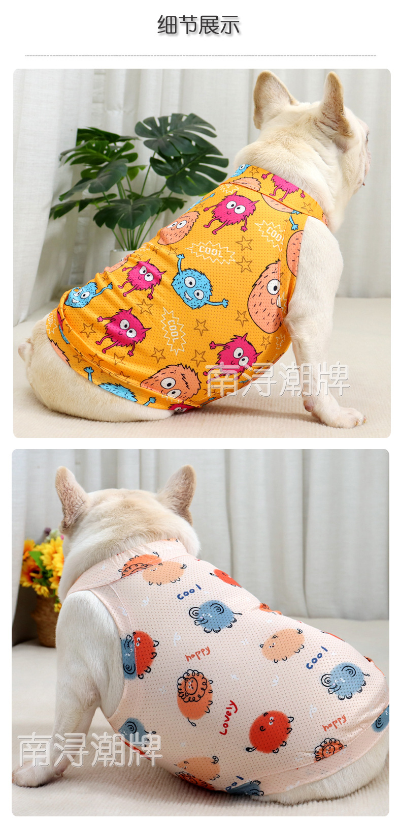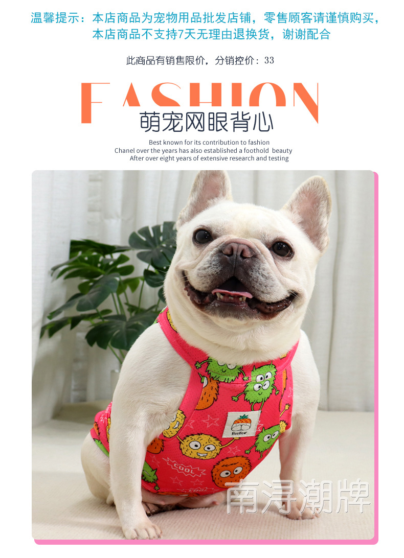 Fadou 옷 여름 얇은 조끼 메쉬 멋진 만화 인터넷 유명 인사 스타일 작은 슬링 뚱뚱한 개 옷 통기성스토어 가기