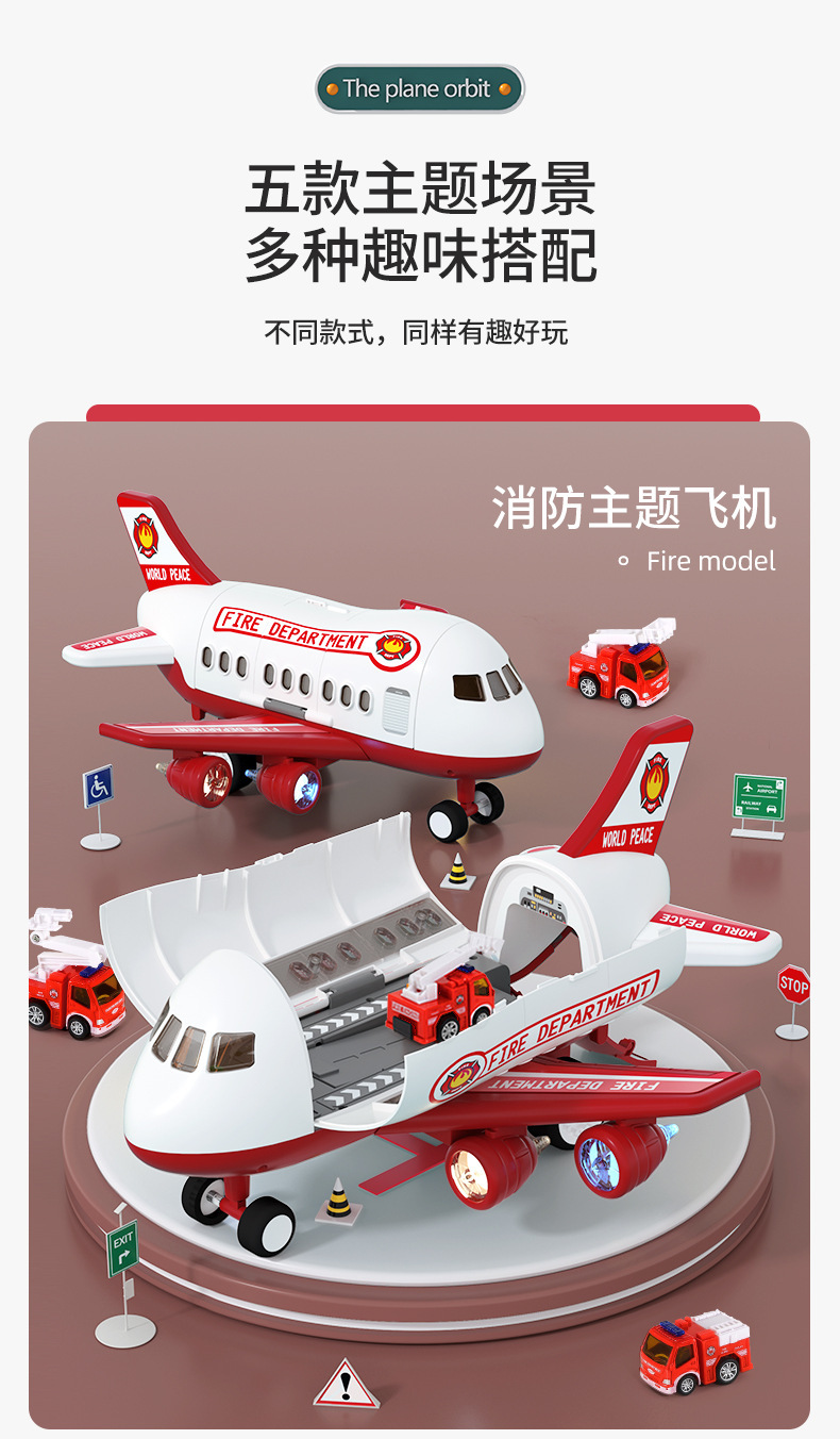 • 빨간색 소방 비행기 [컬러 박스 포장] 배터리 버전 - 합금 자동차 10대/도로 표지판 12개/수납함/탄성 발사/사운드 및 조명 효과