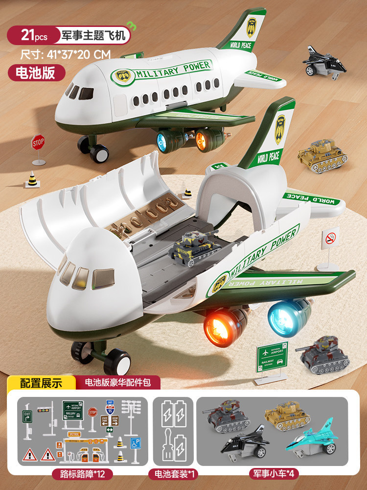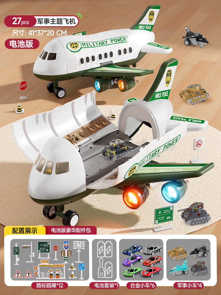 • 녹색 군용 항공기 [색상 상자] 배터리 버전 - 합금 자동차 4개/도로 표지판 12개/보관/배출/소리 및 빛