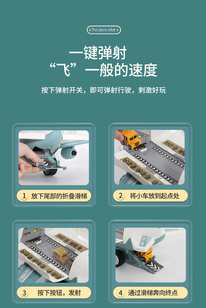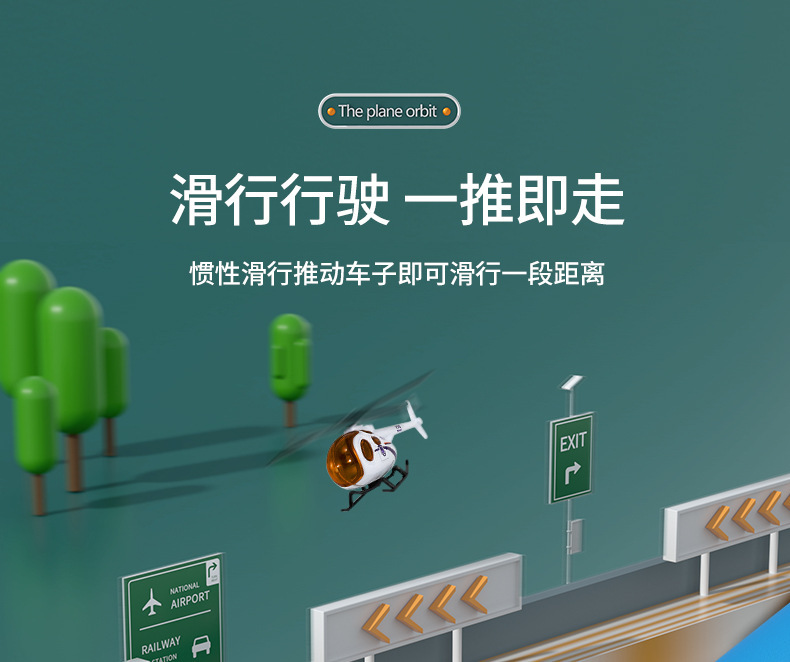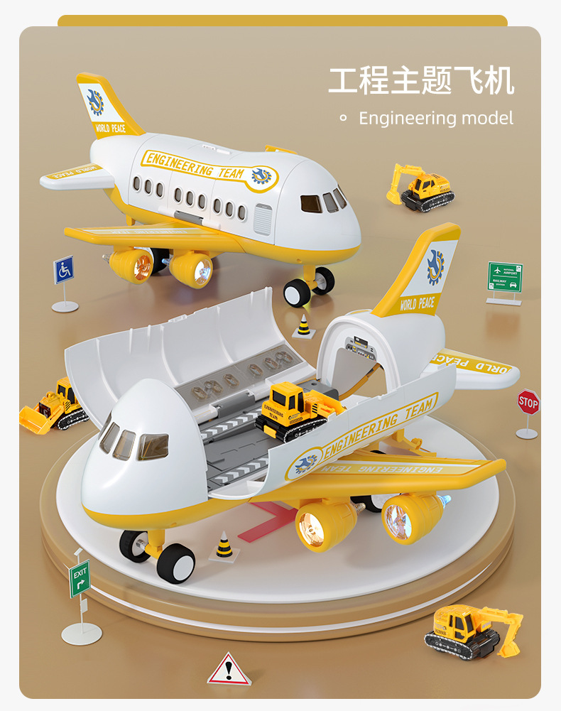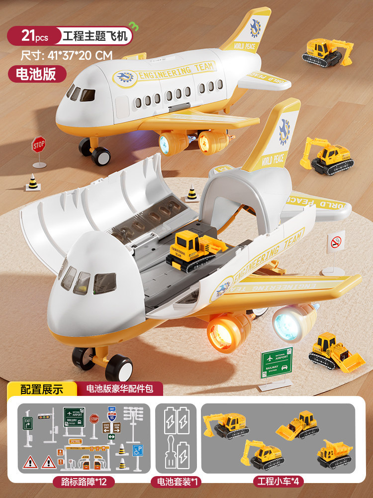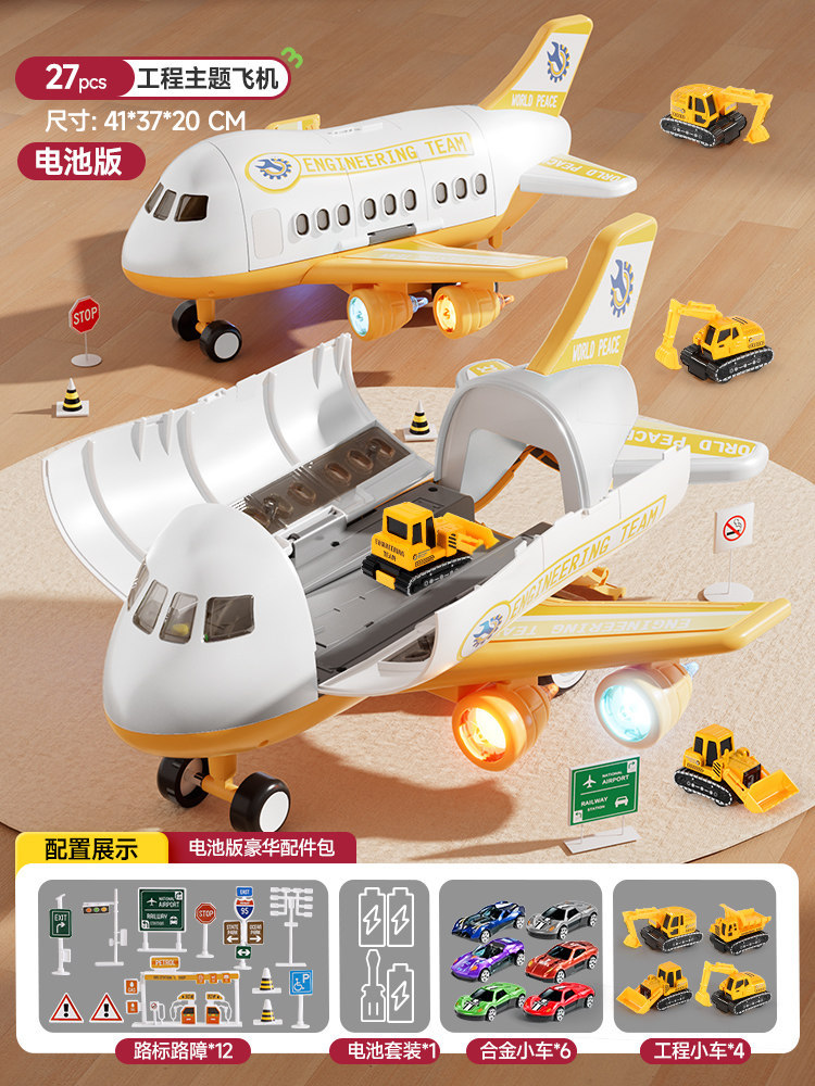 • 노란색 건설 비행기 [컬러 박스 포장] 배터리 버전 - 합금 자동차 4대/도로 표지판 12개/수납함/탄성 발사/사운드 및 조명