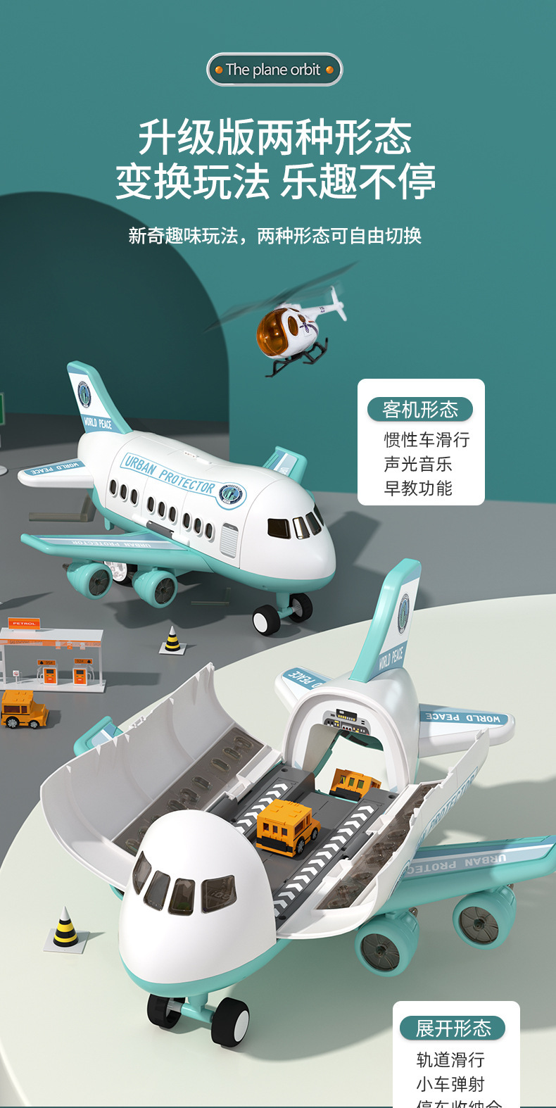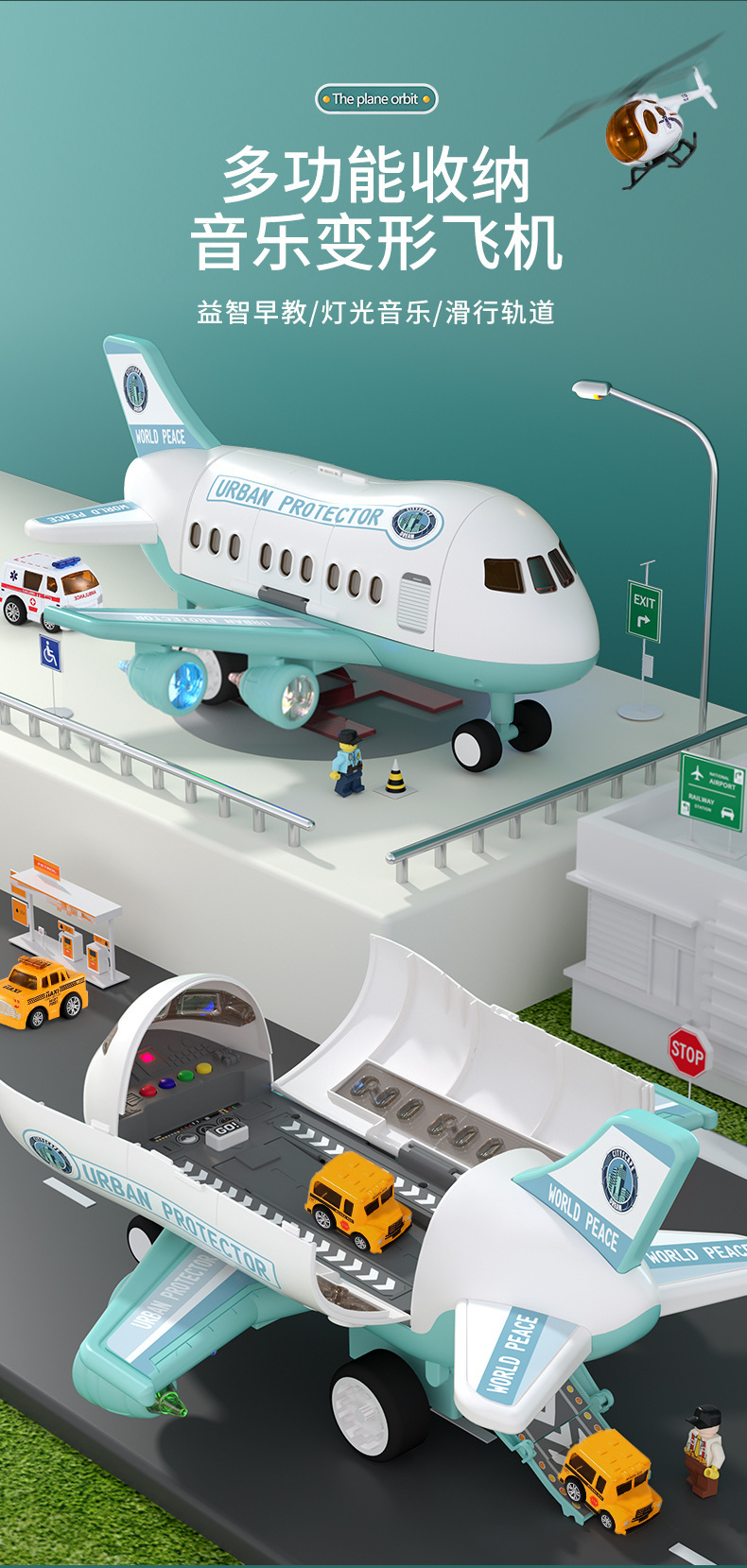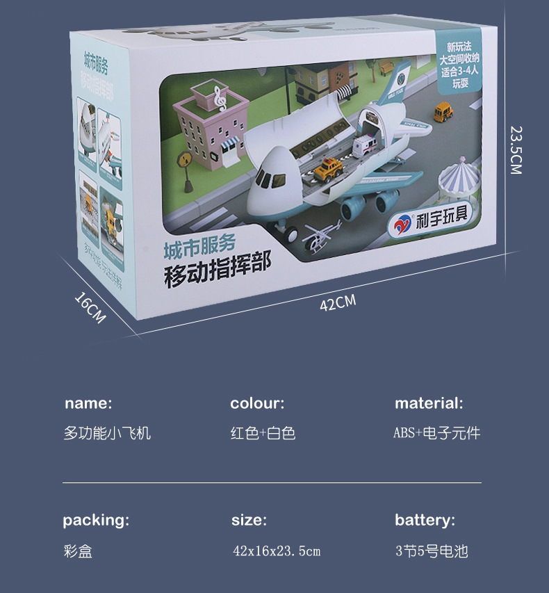 • 하늘색 도시 비행기 [색상 상자] 배터리 버전 - 합금 자동차 4개/도로 표지판 12개/보관/방출/소리 및 빛