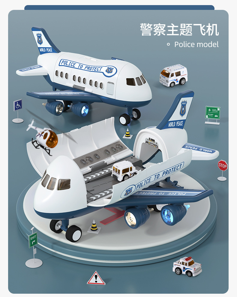• 진한 파란색 경찰차 비행기 [색상 상자] 배터리 버전 - 합금 자동차 4개/도로 표지판 12개/보관/방출/소리 및 빛]