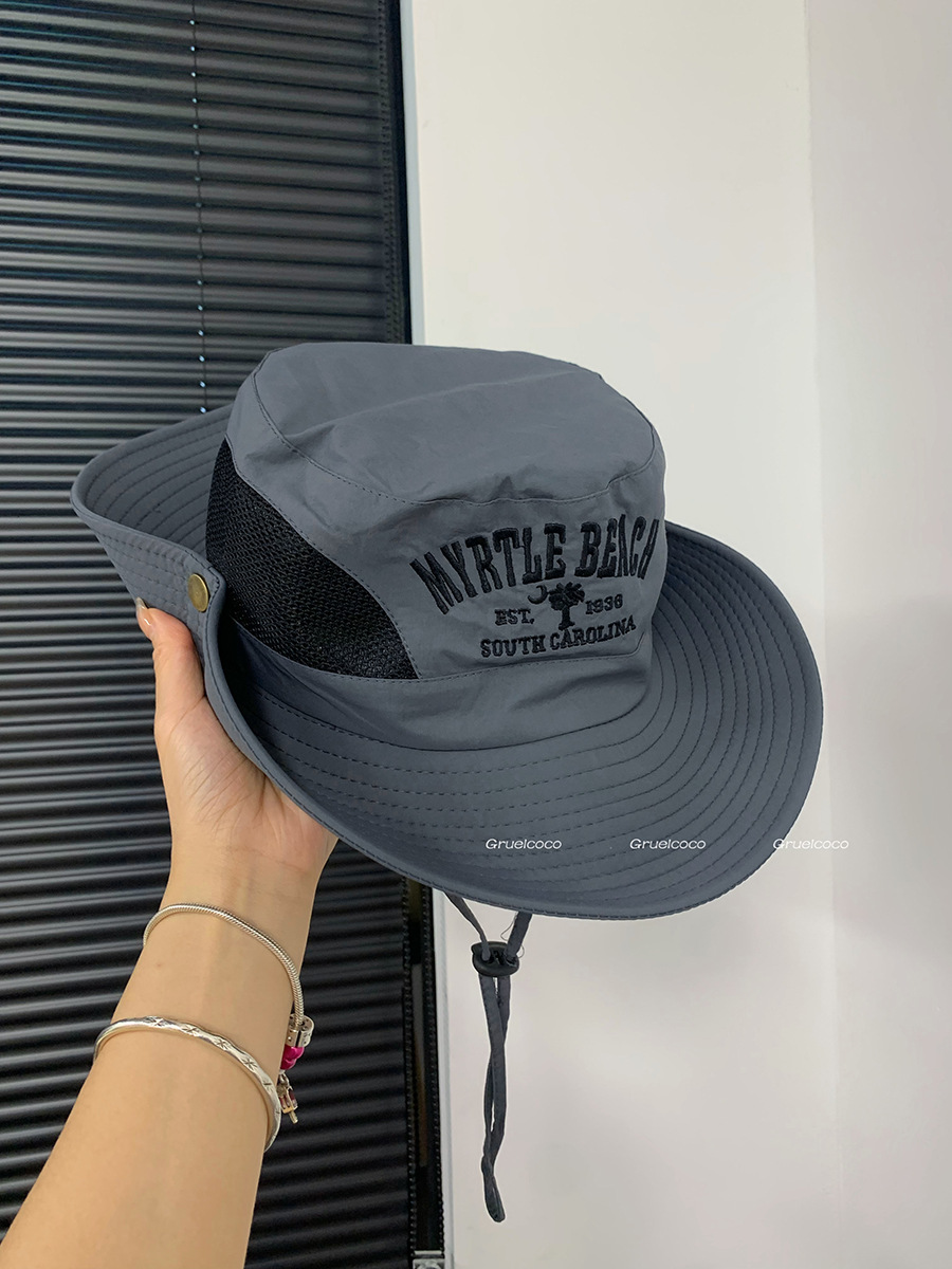 일본 편지 자수 등반 모자 여성 여름 야외 캠핑 하이킹 측면 통기성 메쉬 디자인 어부 모자 분지 모자