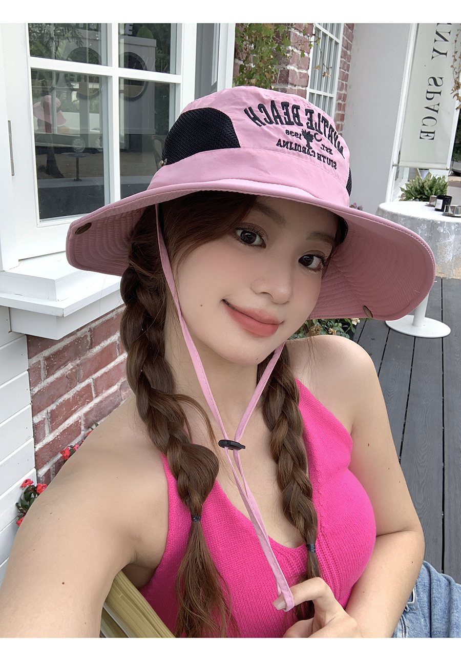 일본 편지 자수 등반 모자 여성 여름 야외 캠핑 하이킹 측면 통기성 메쉬 디자인 어부 모자 분지 모자스토어 가기
