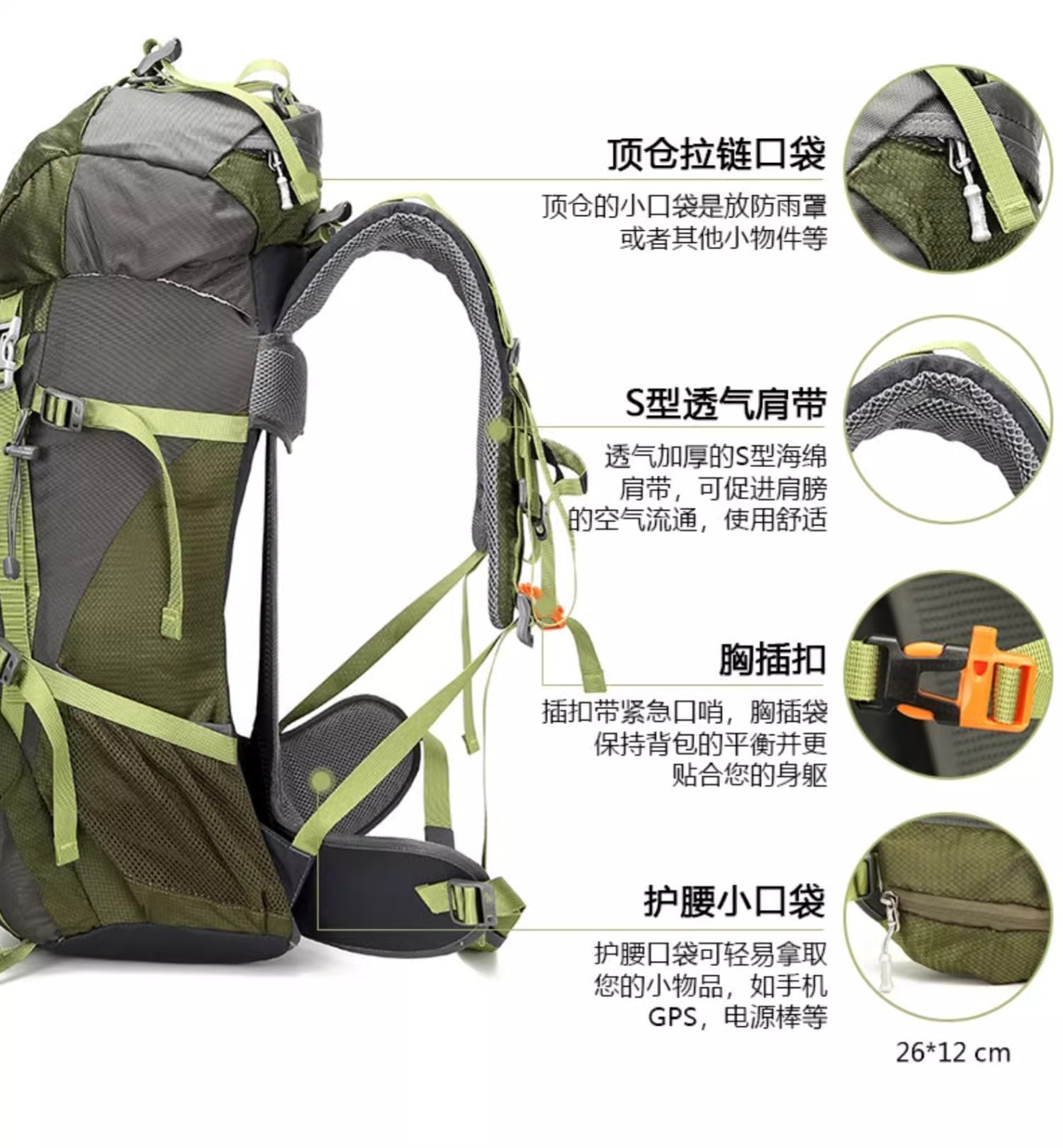 Aiwang 등산 가방 야외 하이킹 등산 방수 배낭 대용량 50 리터 남성과 여성 여행 하이킹