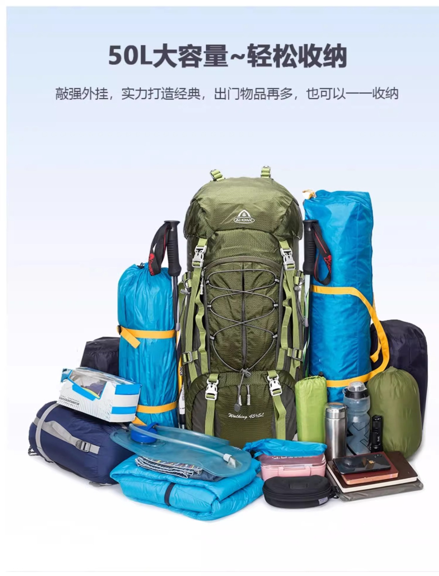 Aiwang 등산 가방 야외 하이킹 등산 방수 배낭 대용량 50 리터 남성과 여성 여행 하이킹스토어 가기