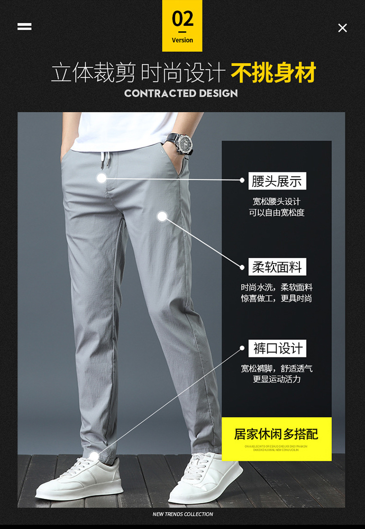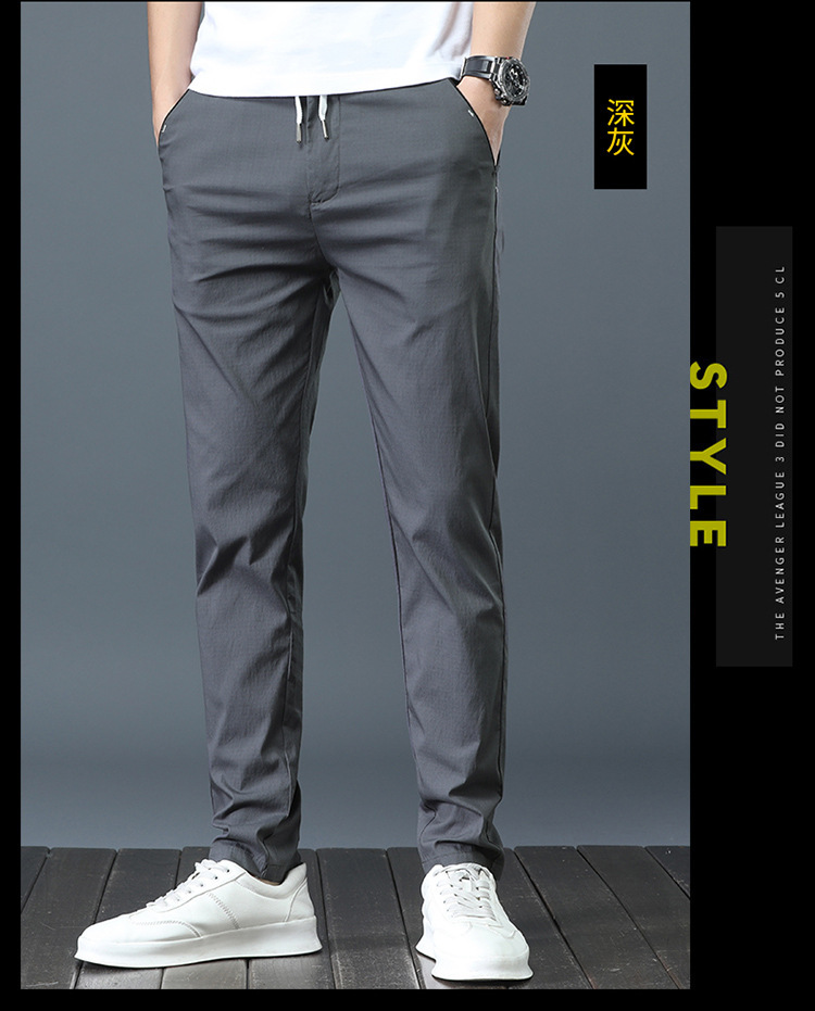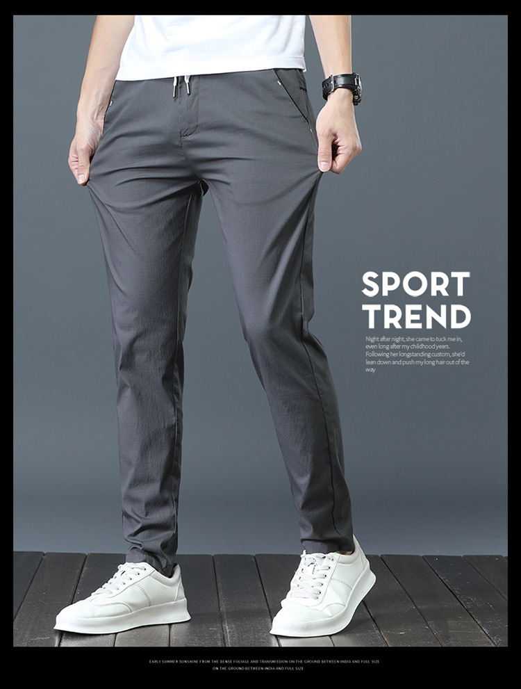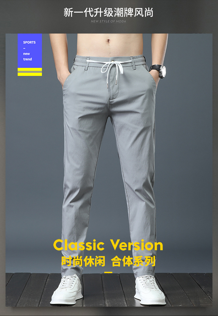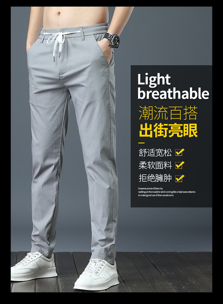 2023 남성 캐주얼 스트레치 아이스 실크 바지 스포츠 바지 유행 패션 남성 캐주얼 바지 여름 얇은 슬림 바지스토어 가기