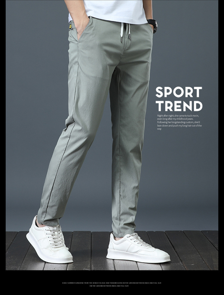 2023 남성 캐주얼 스트레치 아이스 실크 바지 스포츠 바지 유행 패션 남성 캐주얼 바지 여름 얇은 슬림 바지