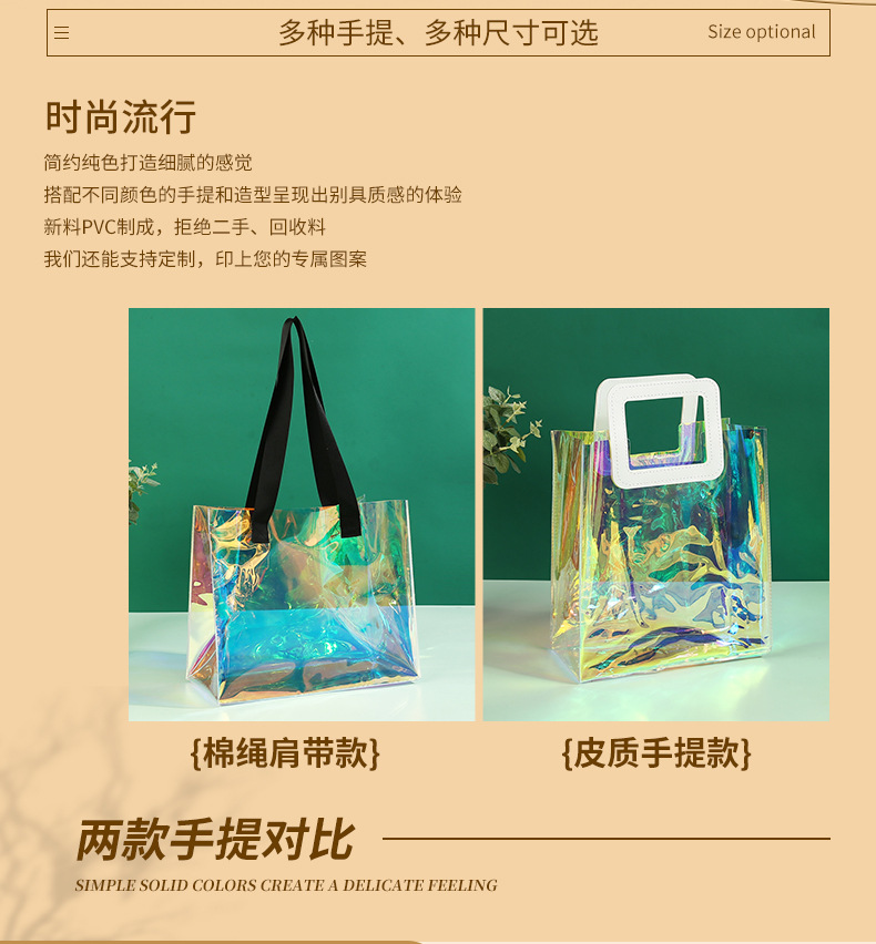 PVC 핸드백 투명 젤리 플라스틱 포장 인스타그램 선물 기념품 손잡이 선물 레이저 맞춤 제작